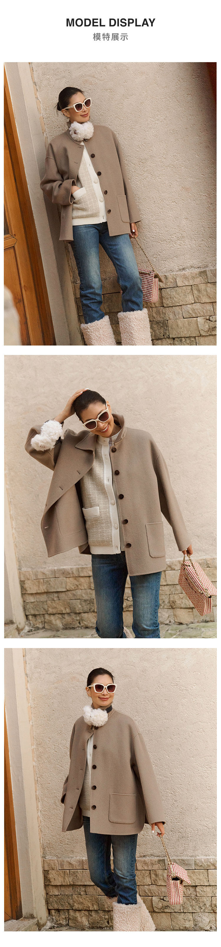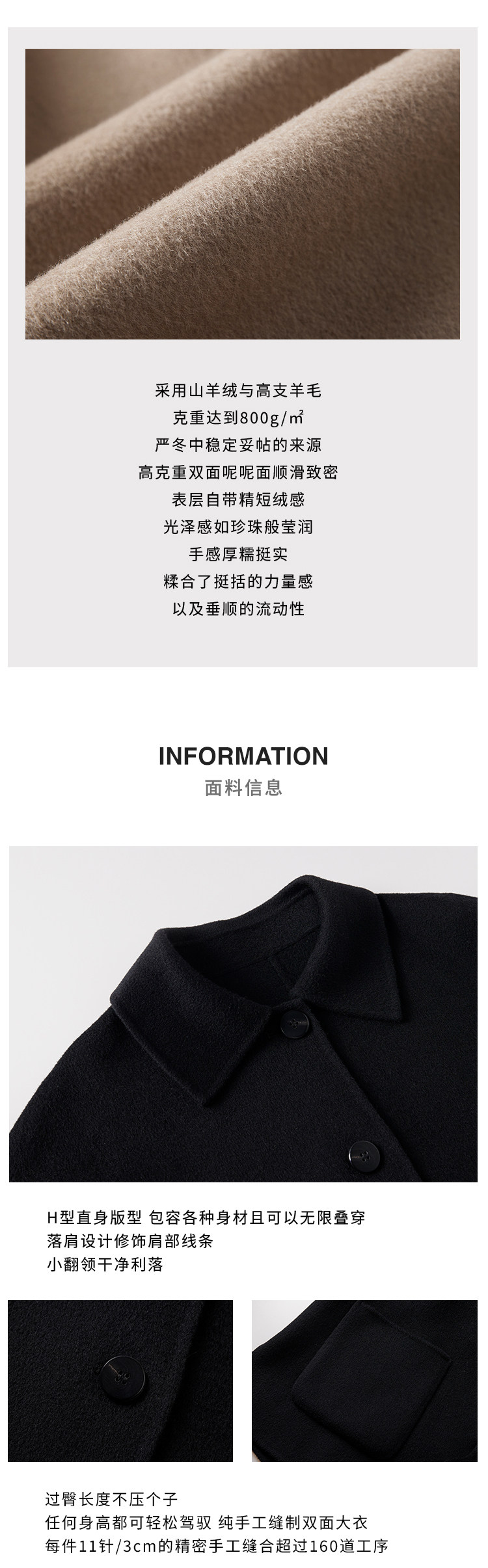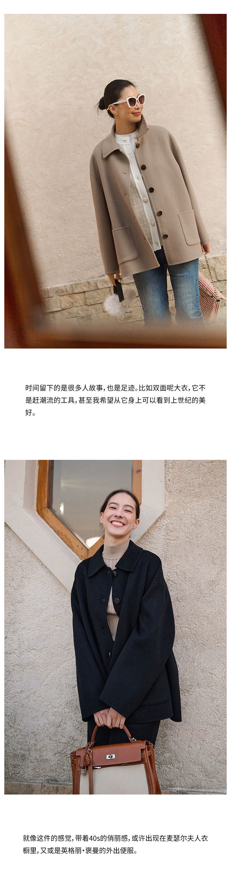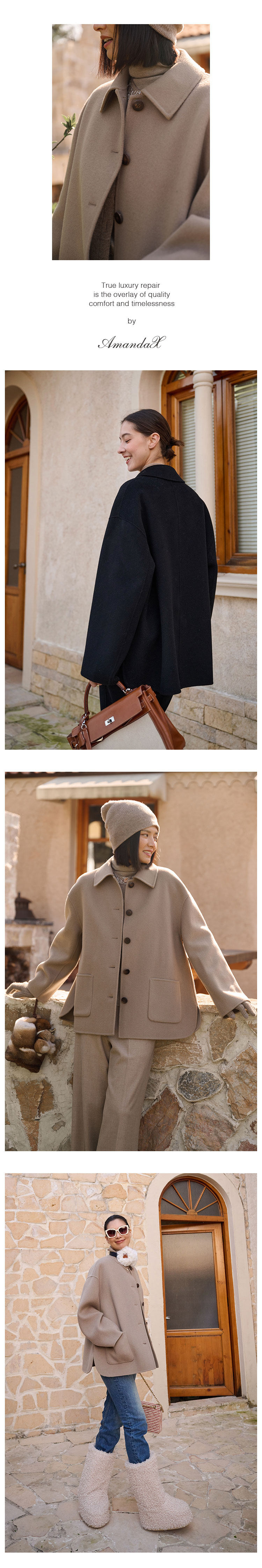 Amandax “Vintage Fashion” Series Cashmere Wool Thick Vintage Double-Sided Woolen Coat