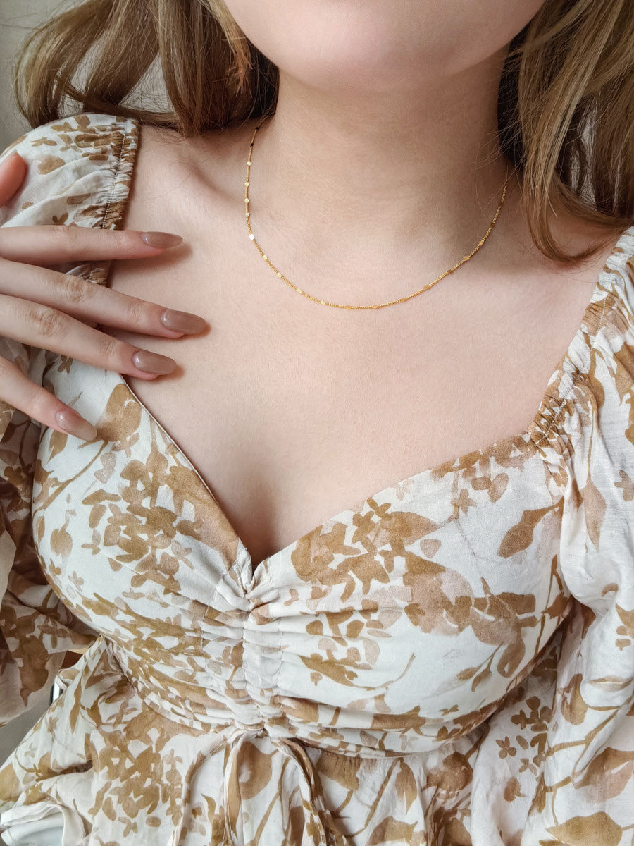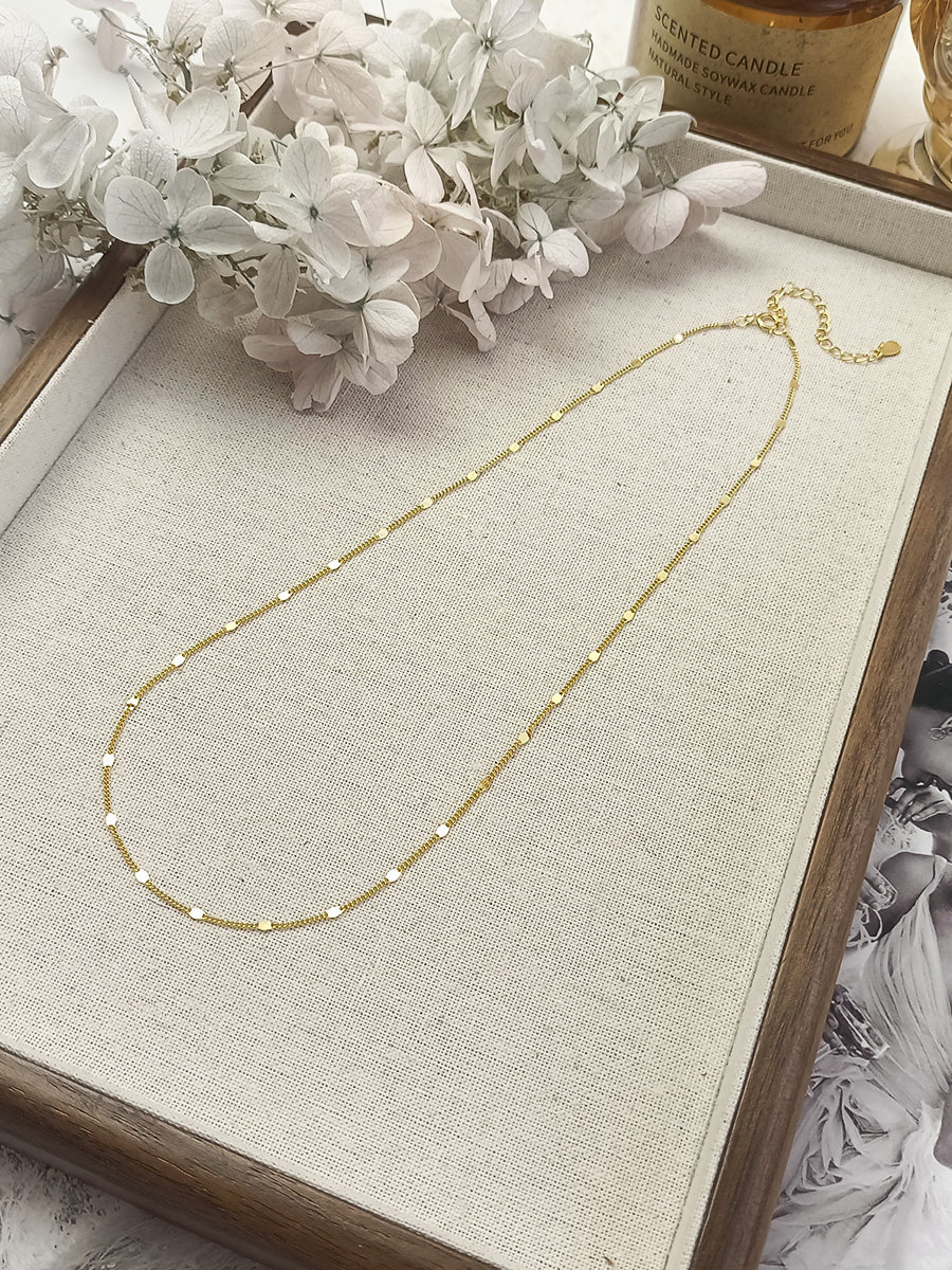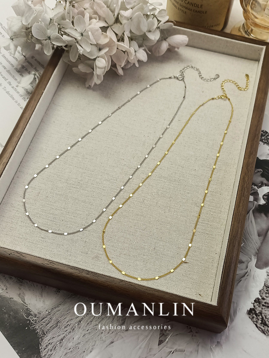 S925 Sterling Silver Necklace, Thin Chain with Gold Glitter, Dynamic Plain Chain, Collarbone Chain, Versatile Layering, Shiny Neck Chain Accessory