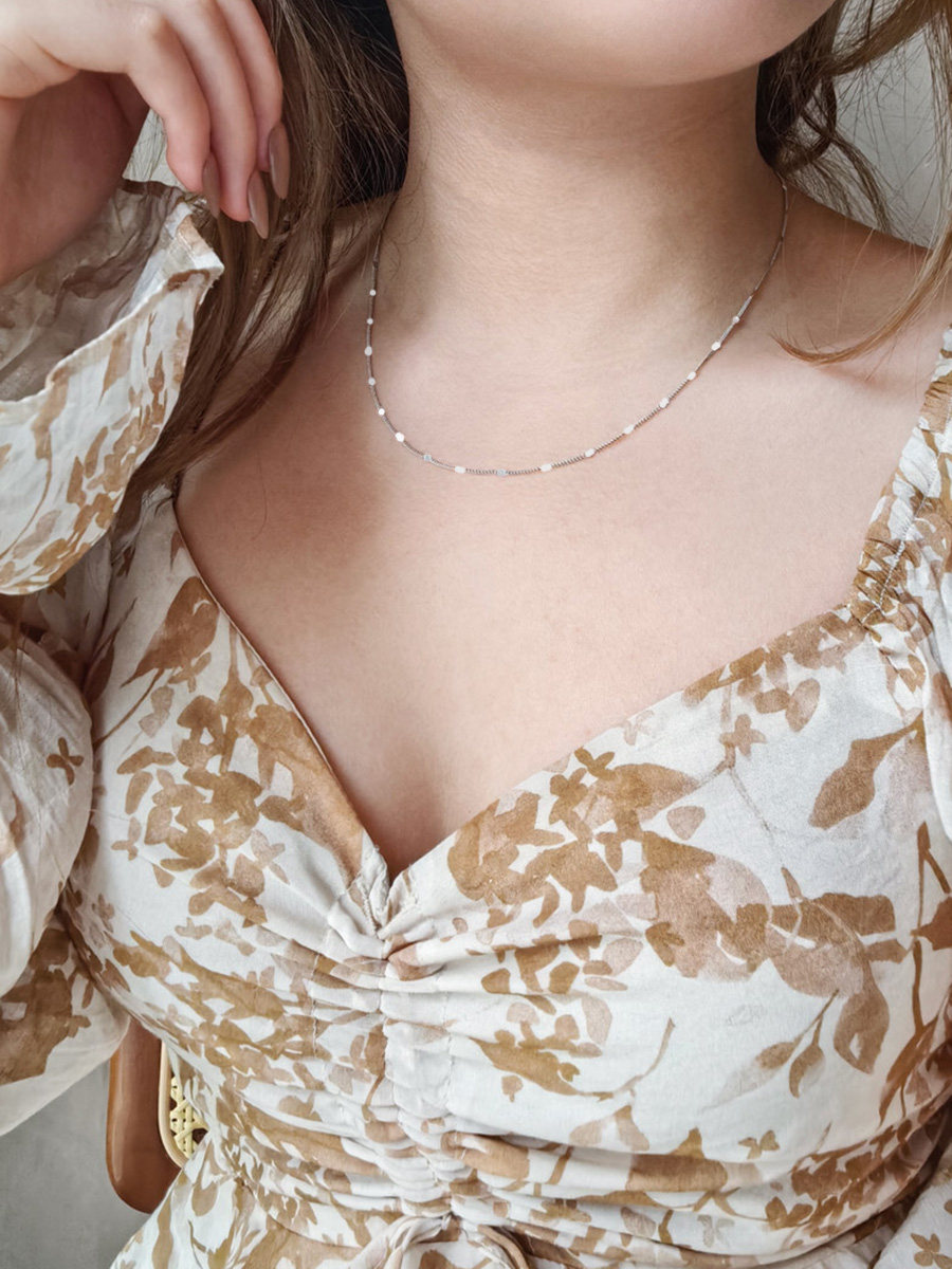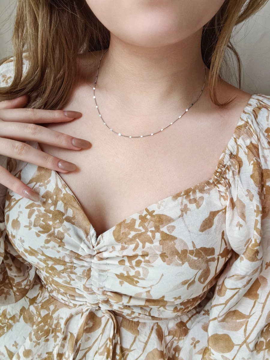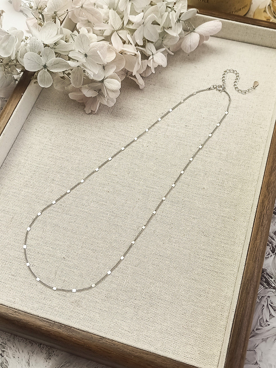 S925 Sterling Silver Necklace, Thin Chain with Gold Glitter, Dynamic Plain Chain, Collarbone Chain, Versatile Layering, Shiny Neck Chain Accessory