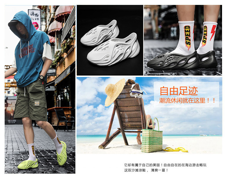 2024 New Style Coconut Hole Shoes Large Size Men's Summer Closed-Toe Sandals Couple's 48 Hollow Beach Shoes Men's 47