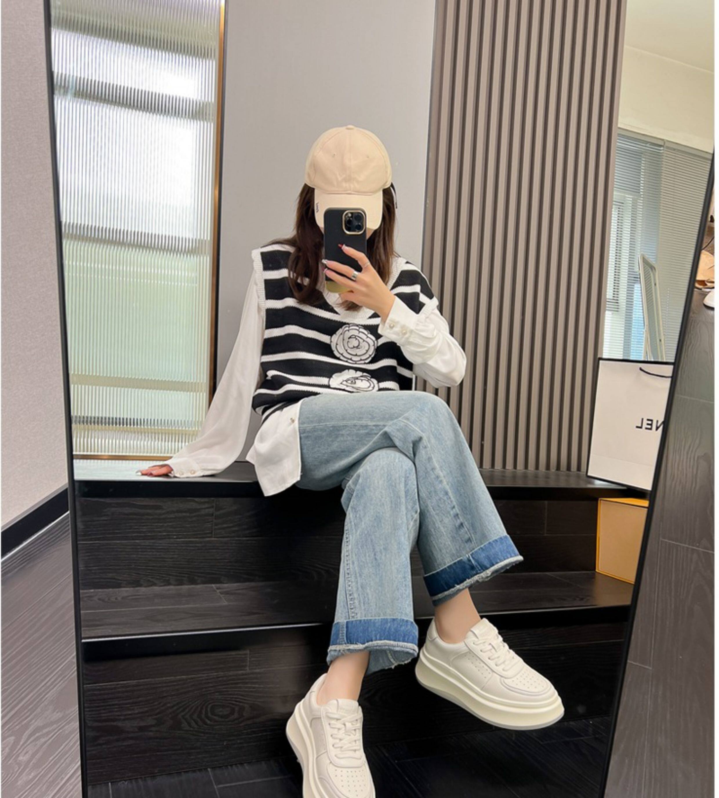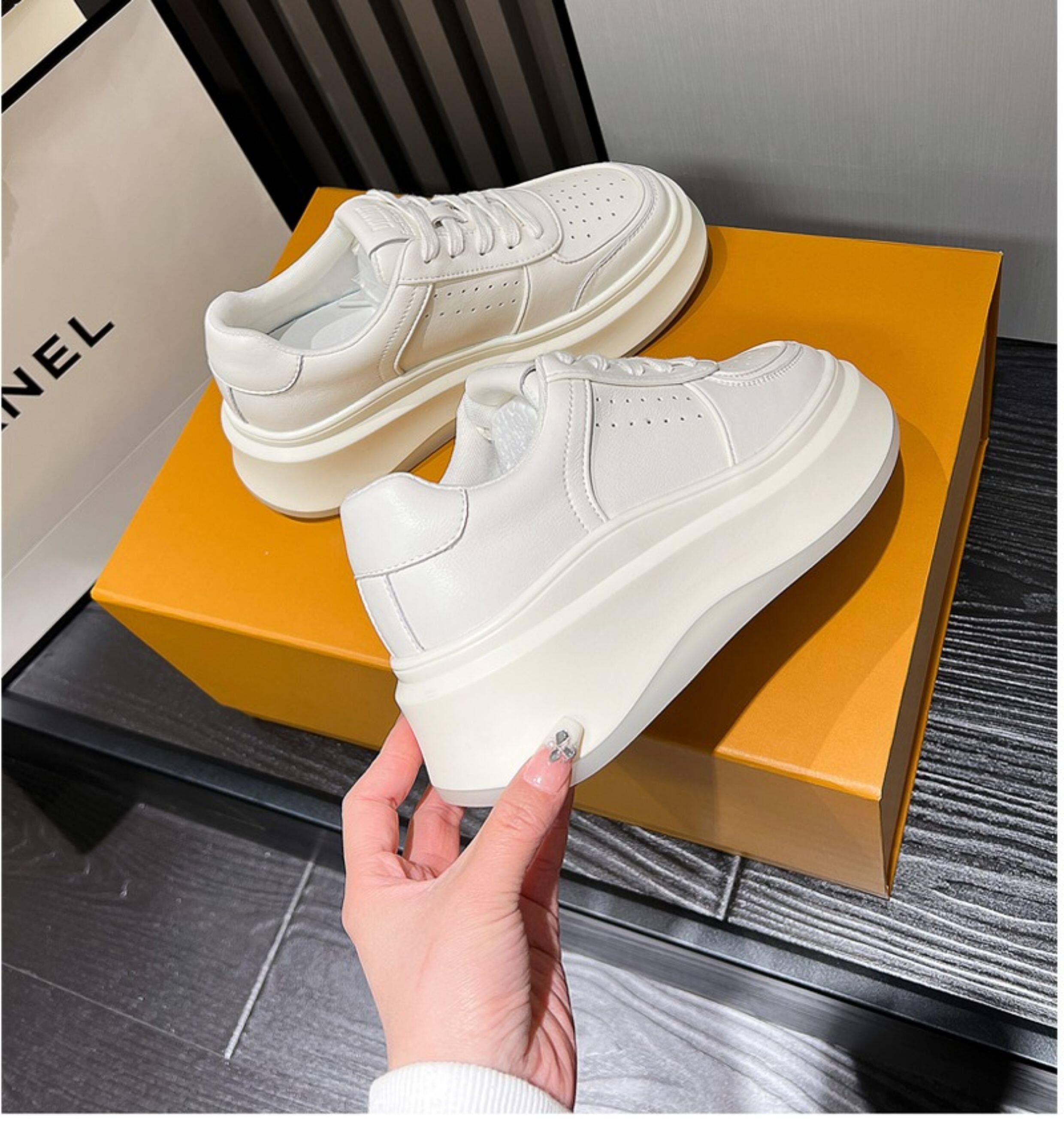 Hong Kong Full Leather White Sneakers for Women, Thick-Soled Platform Shoes, 2026 New Versatile Trendy Genuine Leather Height-Increasing Sneakers