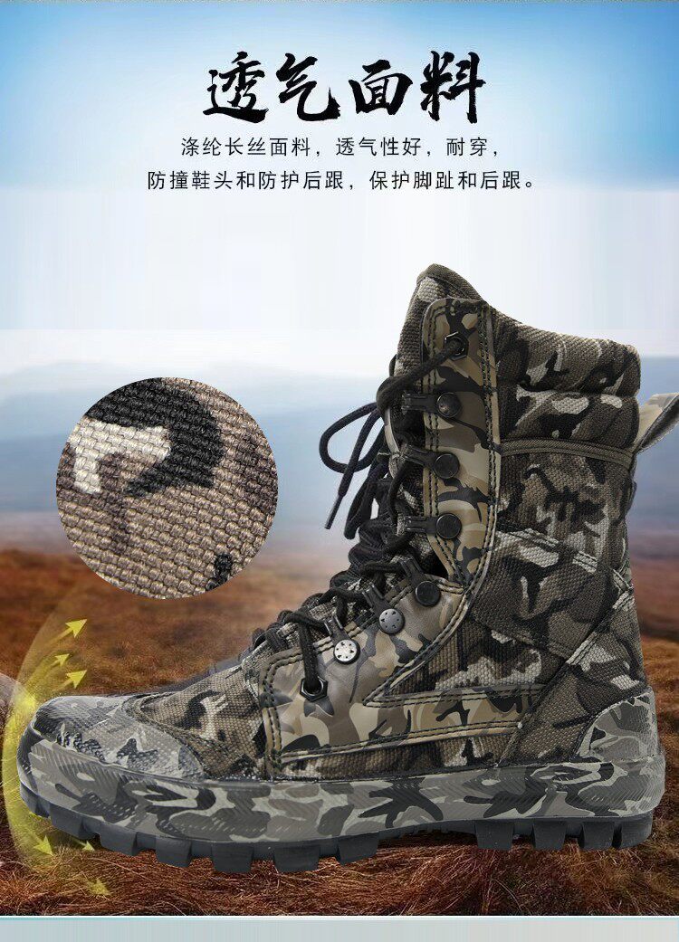 3537 Liberation Shoes Men's High-Top Boots Wear-Resistant Military Training Yellow Rubber Shoes Labor Protection Ultra-High-Top Work Canvas Construction Site Work Boots