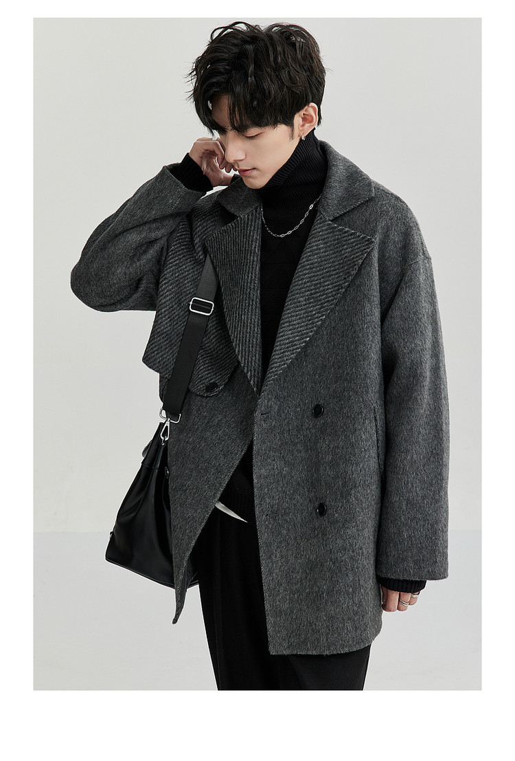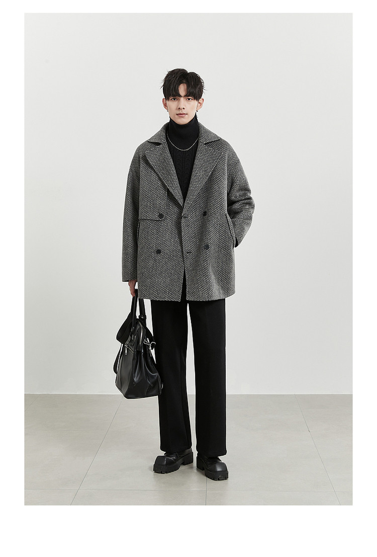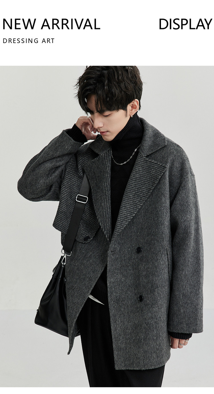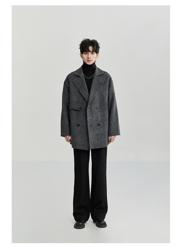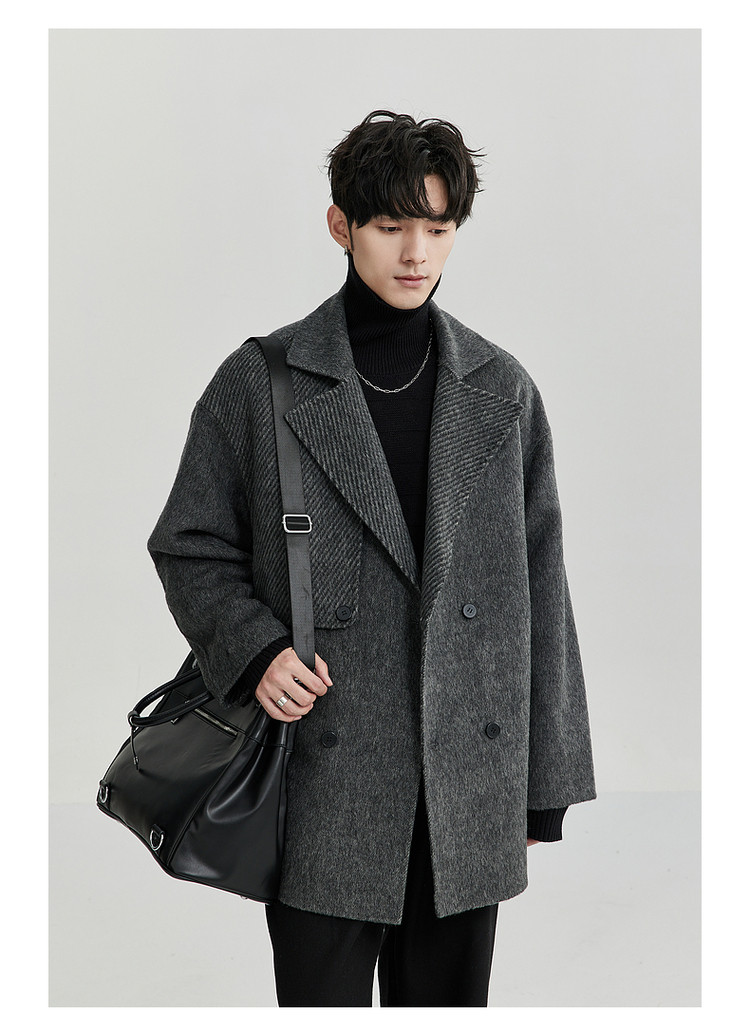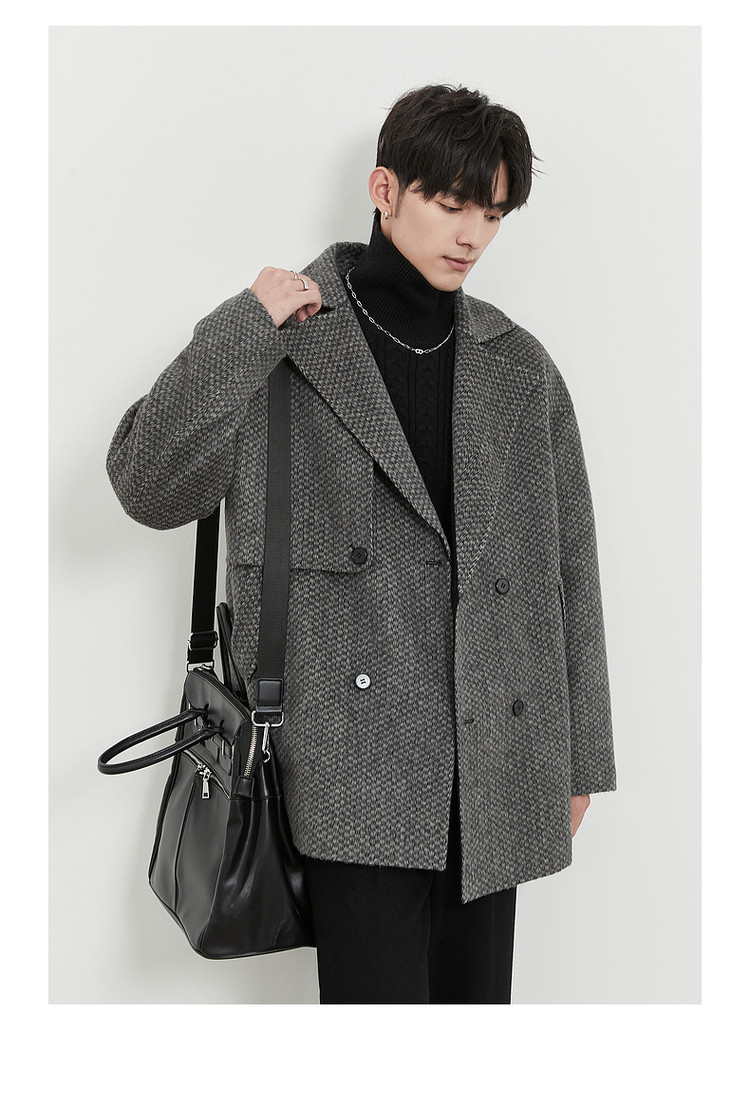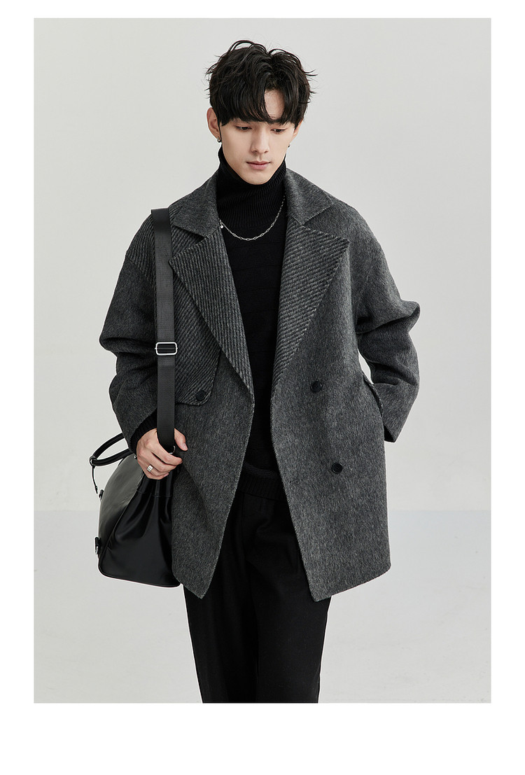 High-End Camel Wool Bjze25 Winter Double-Sided Wool Short Coat for Men, Long Sleeves, Loose Lapel Woolen Jacket