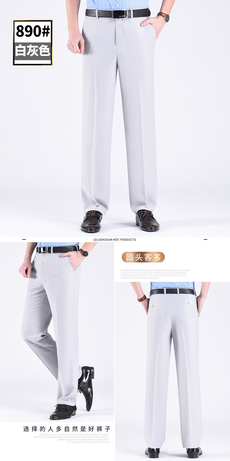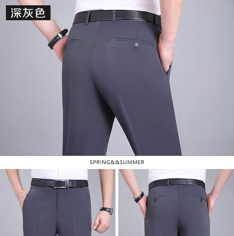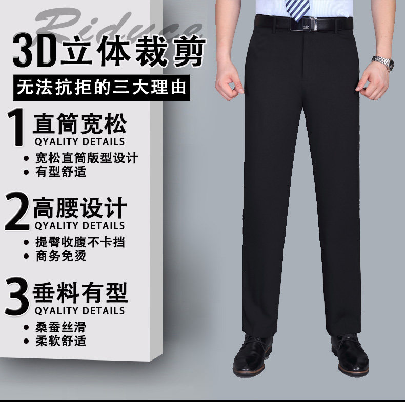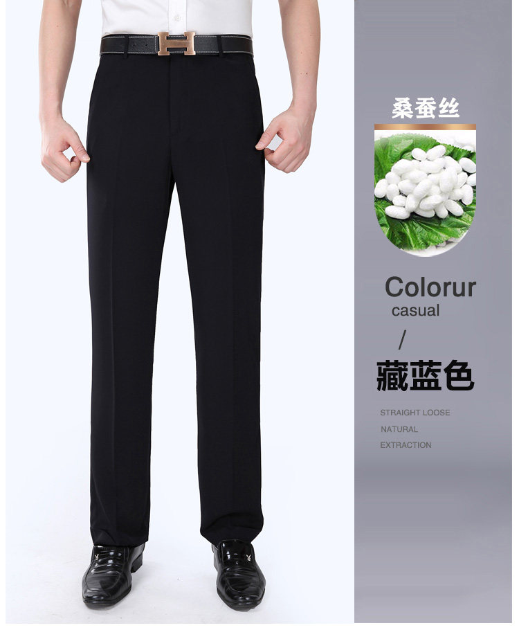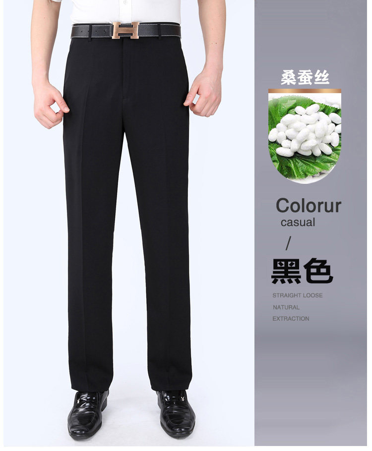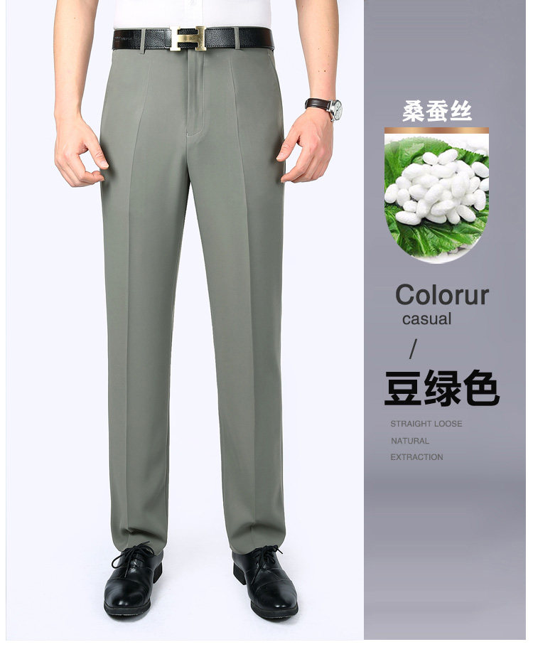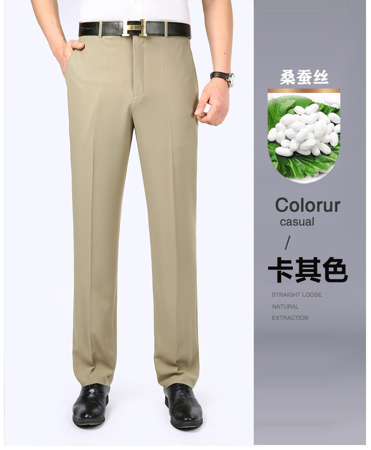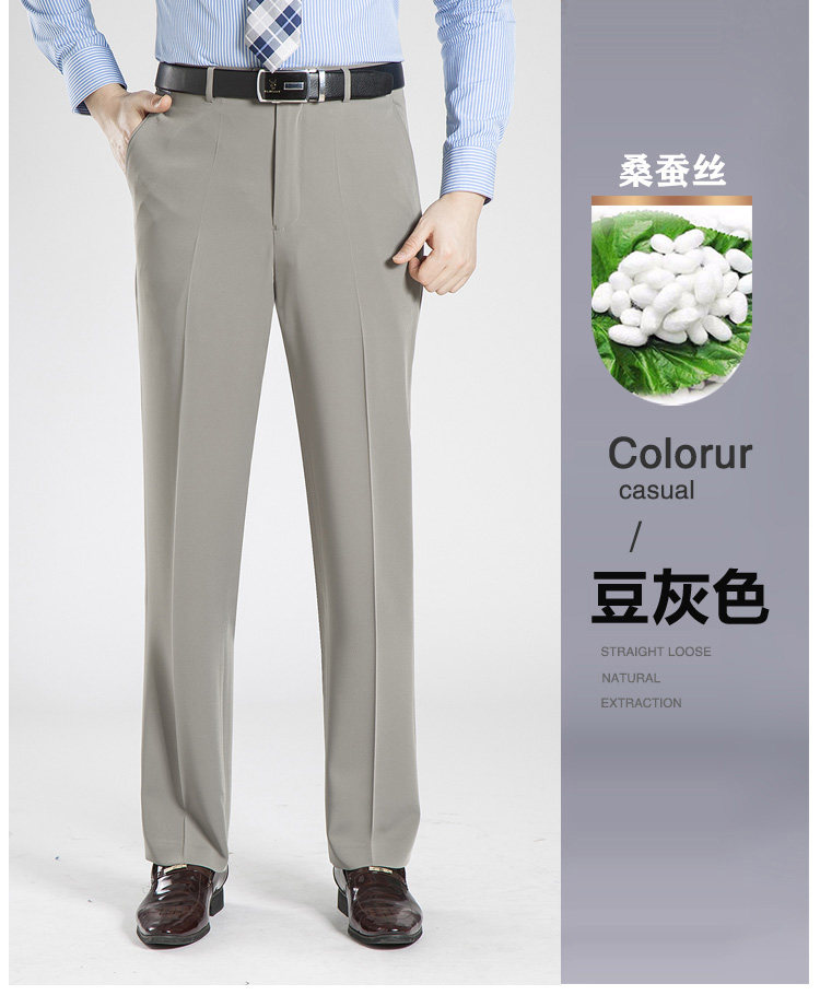 Fuguiniao Spring/Summer Thin Mulberry Silk Middle-Aged Men's Straight-Leg Non-Iron Suit Pants Loose Business Formal Men's Trousers