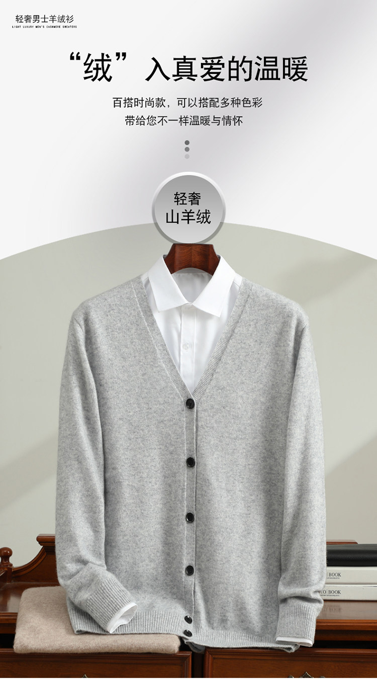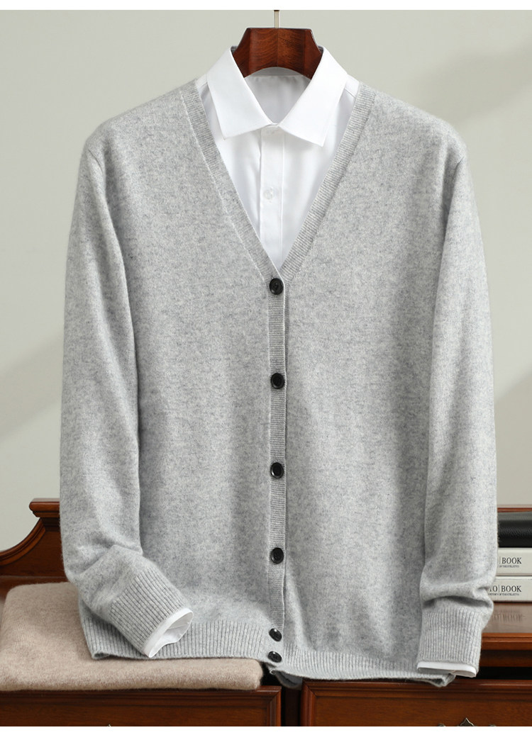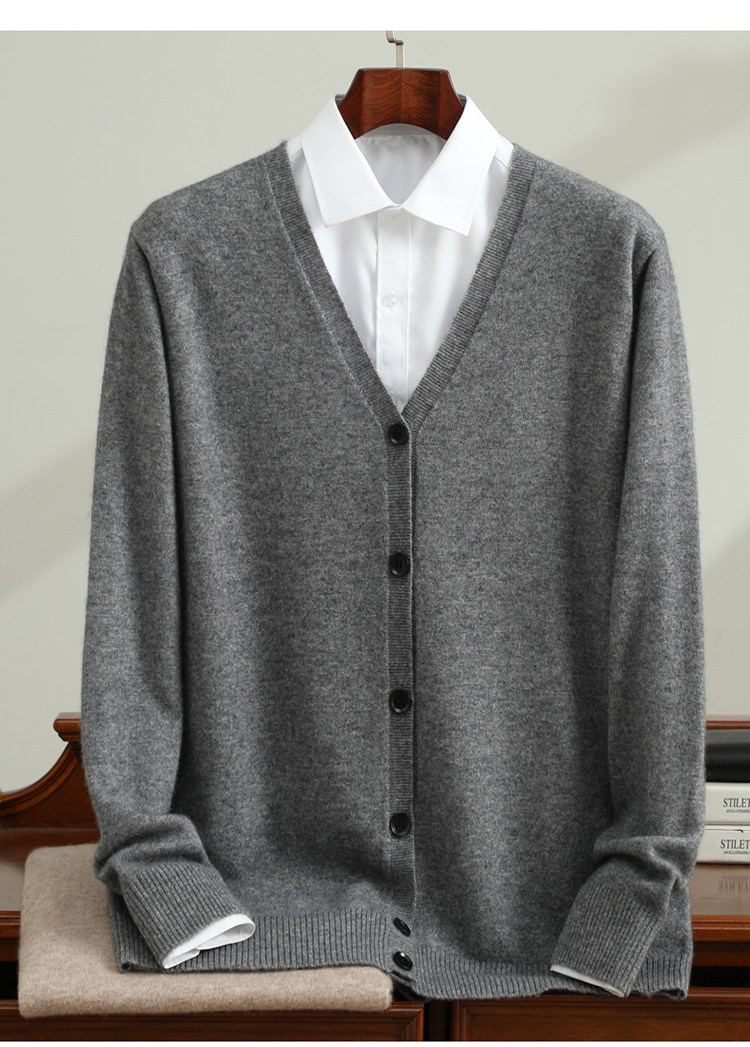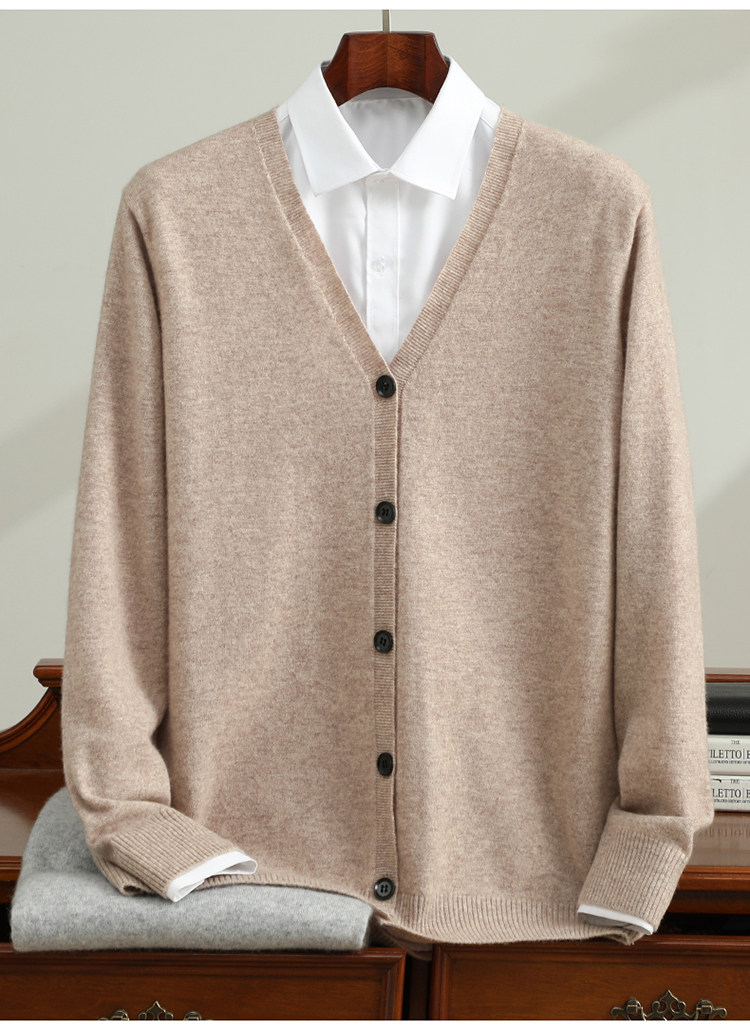 Business Casual Cashmere Cardigan for Men, New Spring and Autumn V-Neck Loose Fashion Sweater Knitwear Jacket