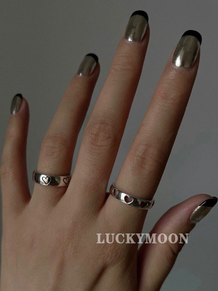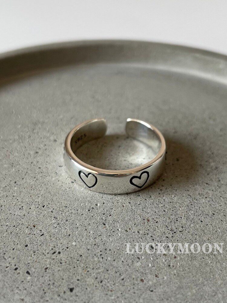 Luckymoon Engraved Heart-Shaped Ring S925 All-Over Sterling Silver Adjustable Opening R082