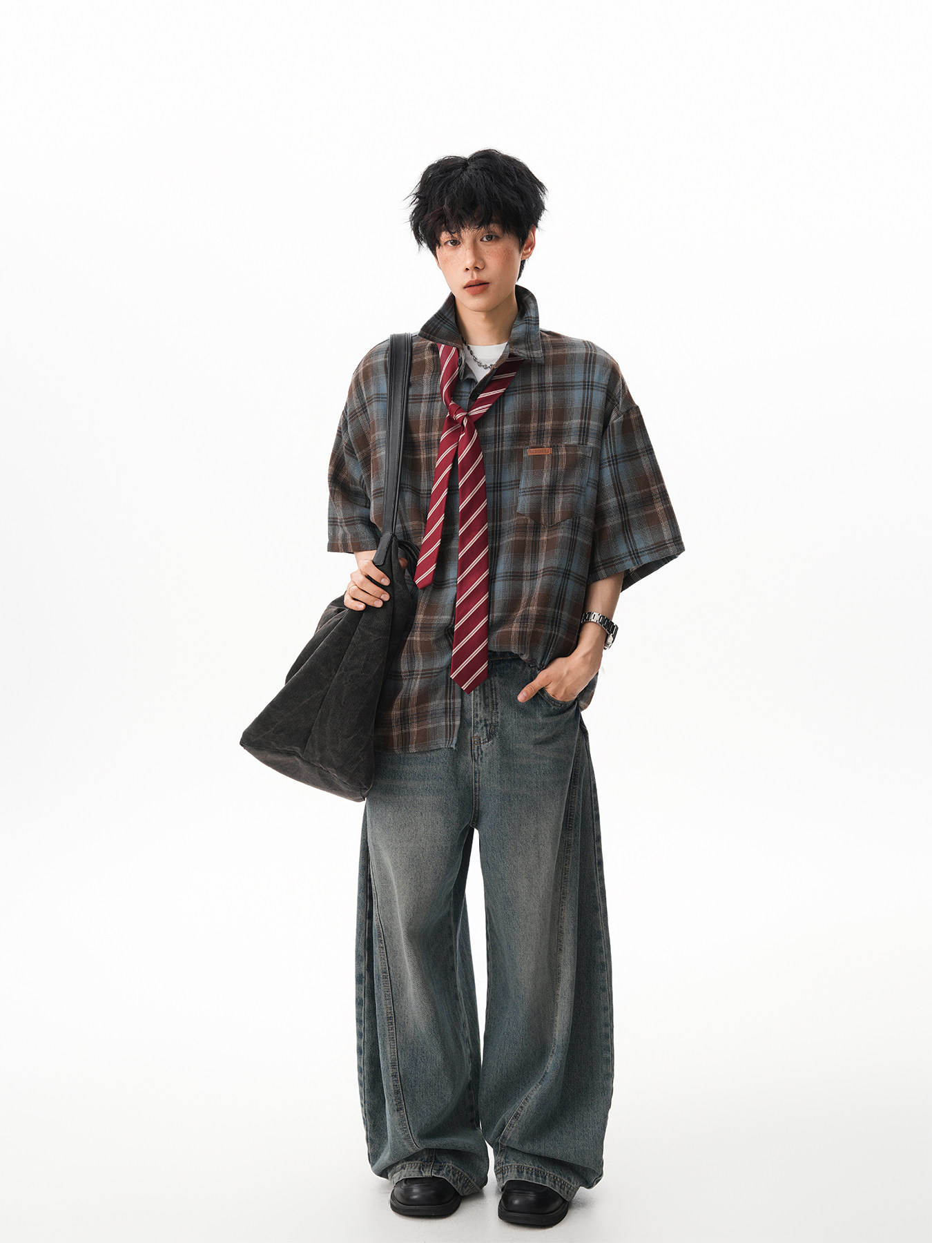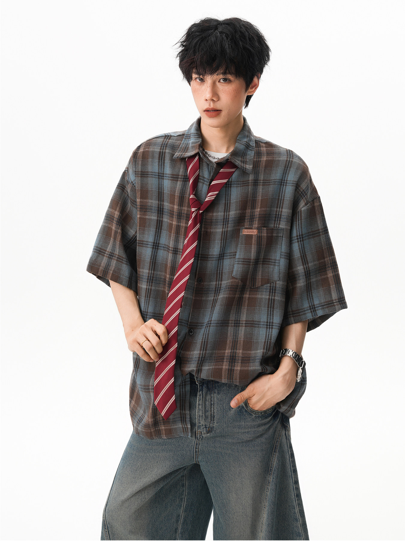 Japanese-Style Youthful Green Plaid Short-Sleeved Shirt for Men and Women, Summer Trendy Retro Oversized Casual Couple Loose Shirt