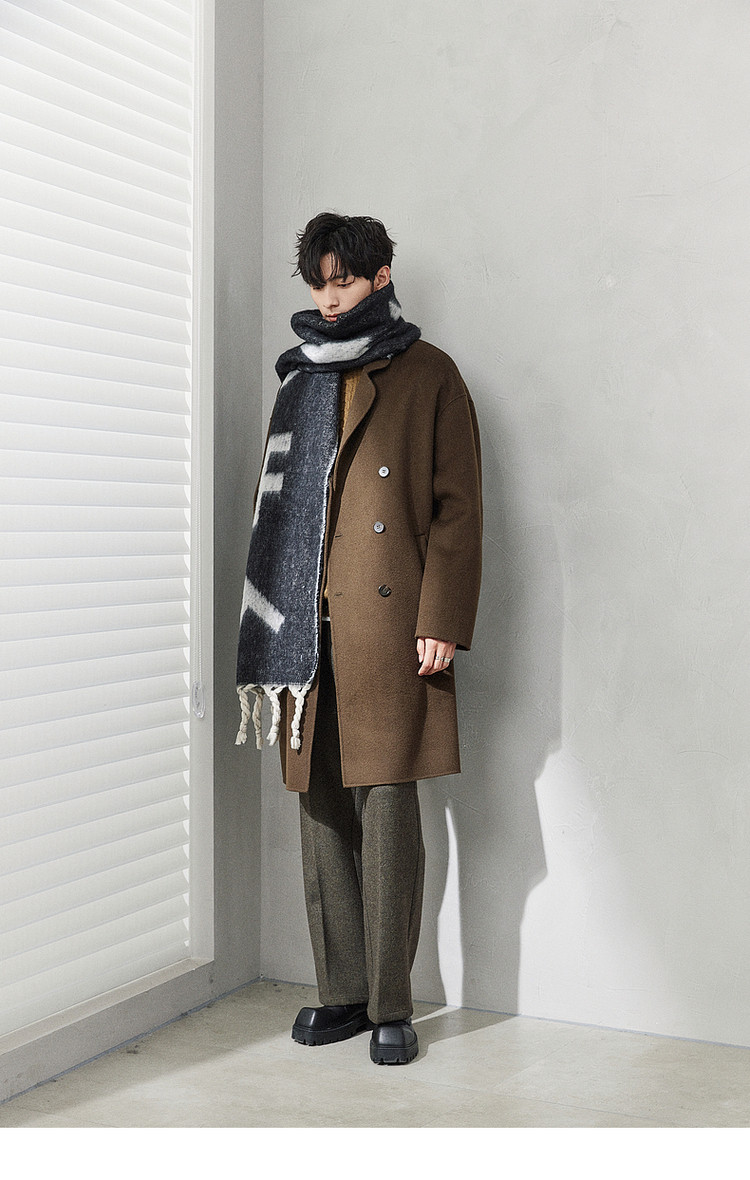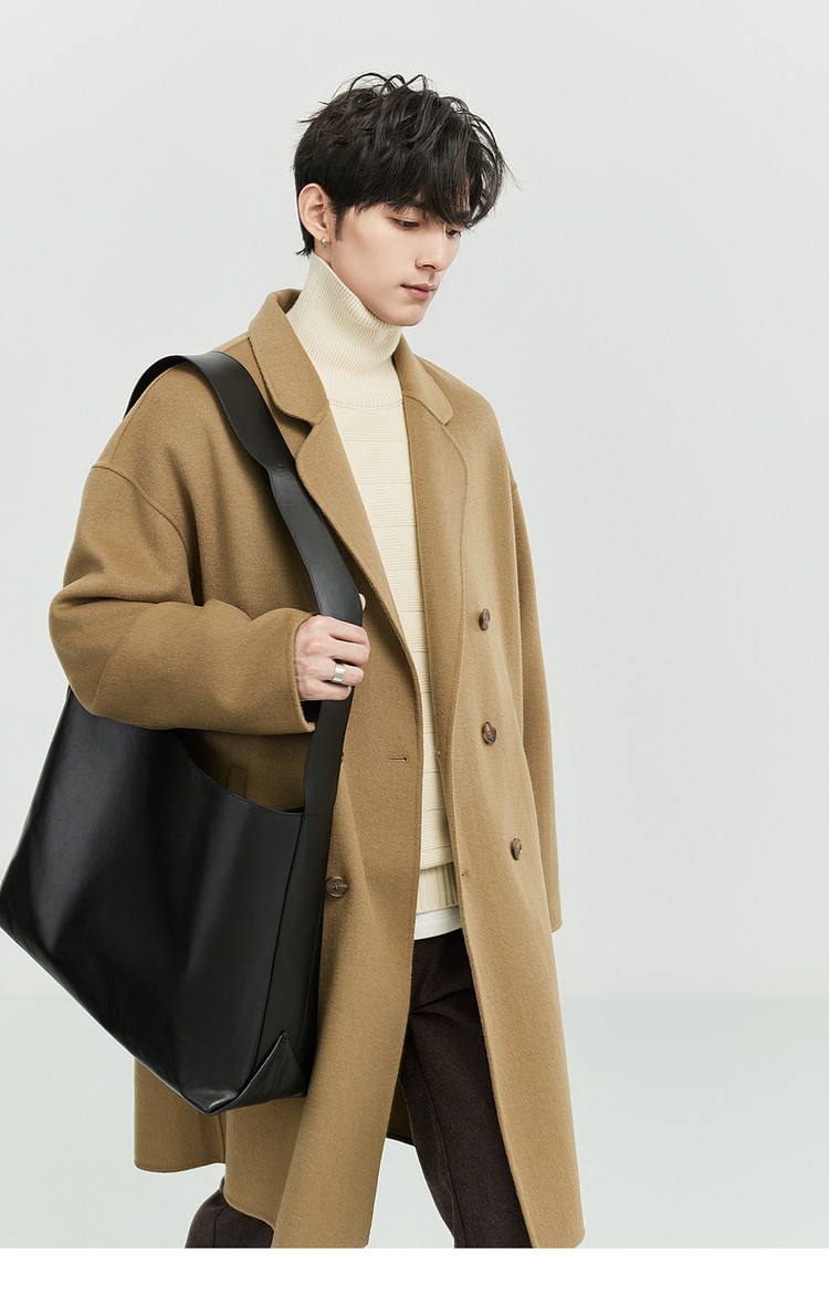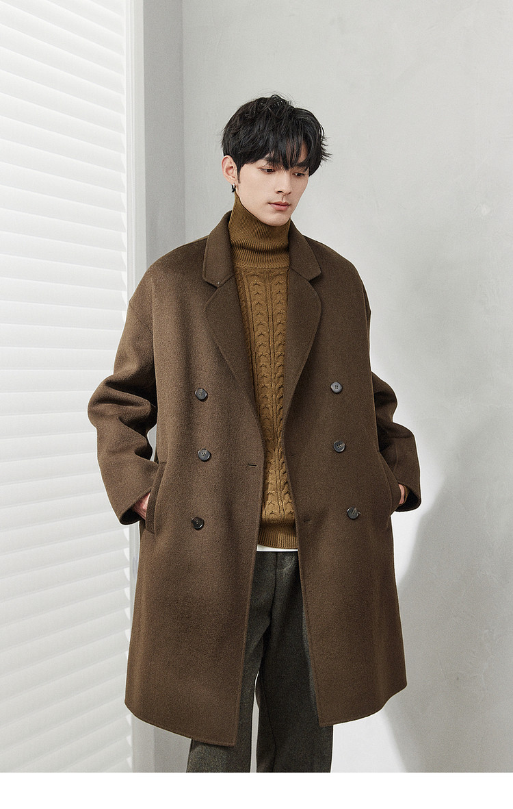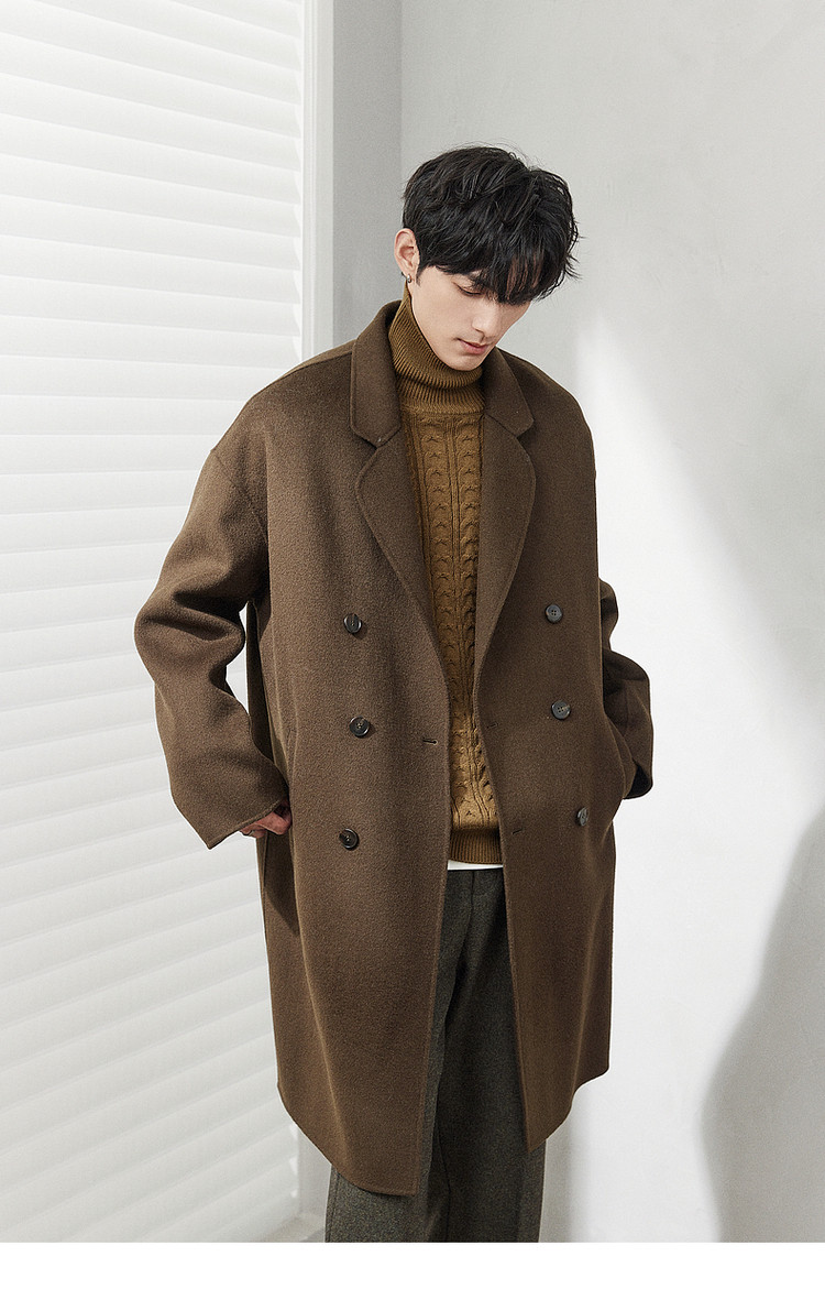 High-End All-Wool Goose down Lining Double-Sided Woolen Coat for Men, Mid-Length, Winter Loose Woolen Double-Breasted Coat