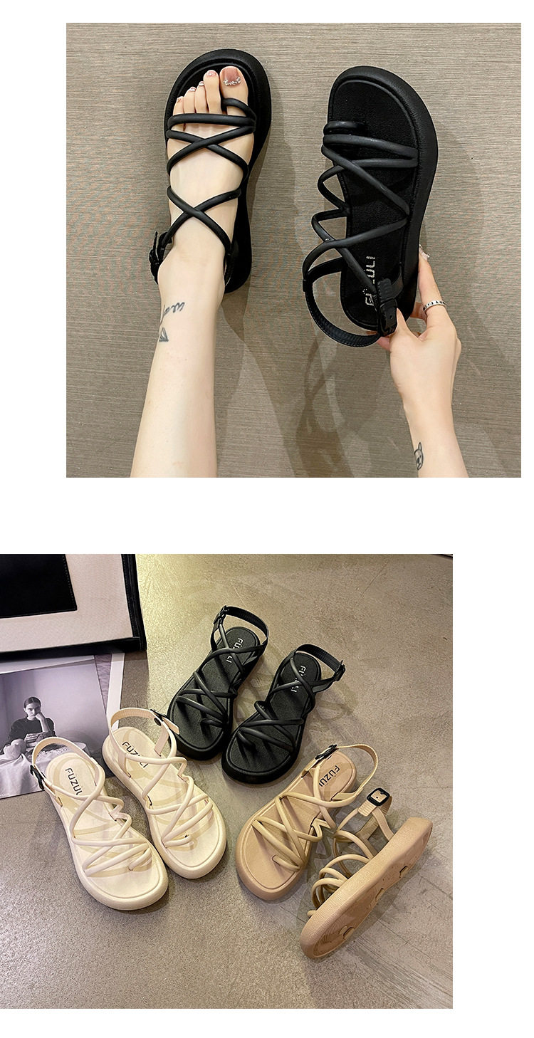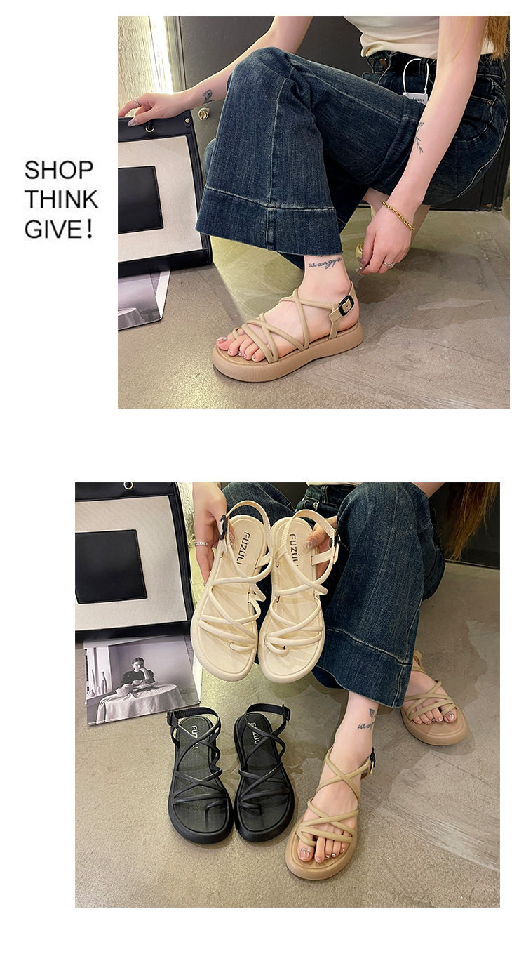 Summer New Style Sandals for Women, Casual Soft-Soled Cross-Strap Thick-Soled Sandals, Slip-On Toe-Ring Beach Shoes