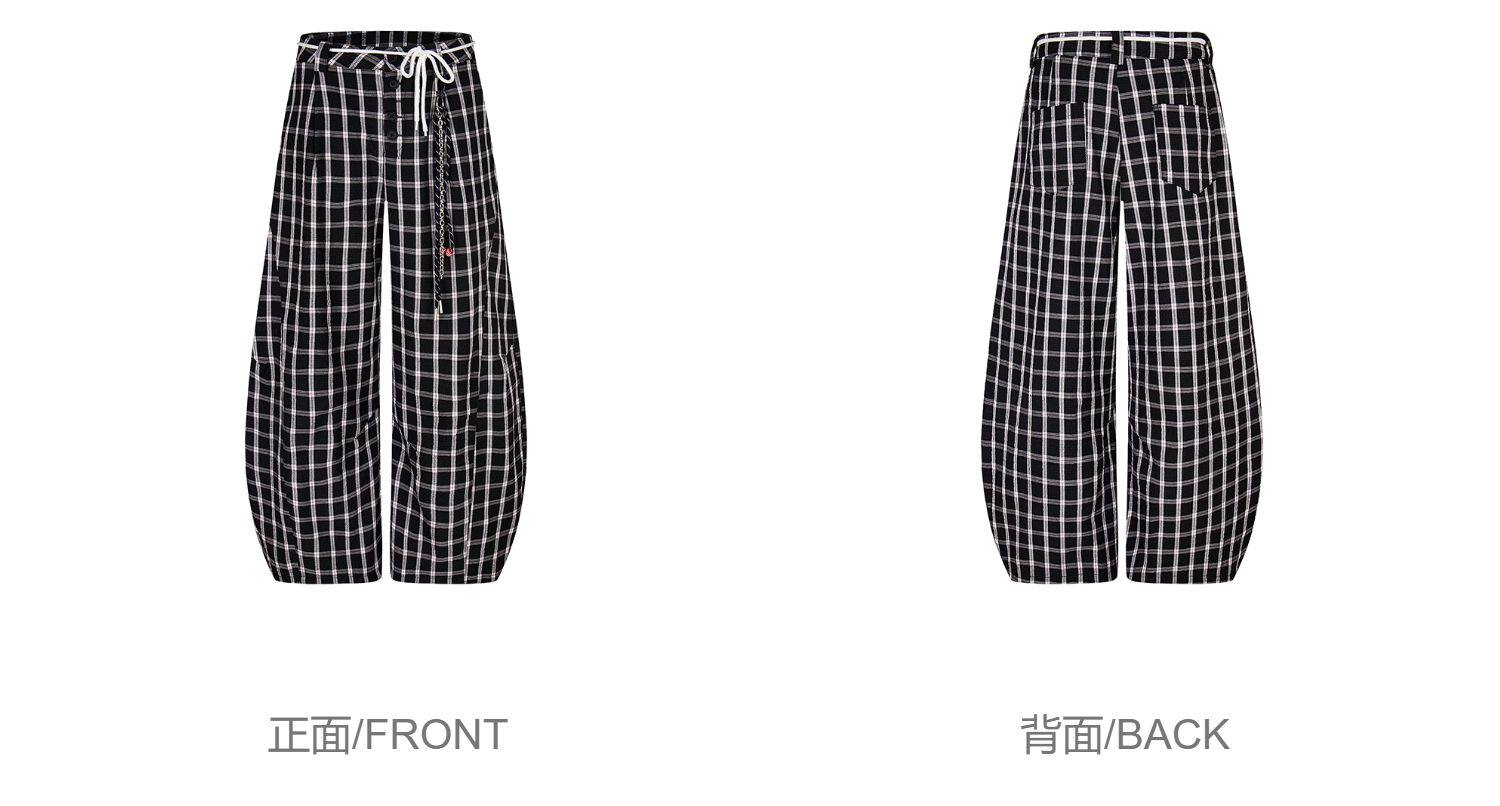 Bufu American Retro Loose Wide-Leg Plaid Pants Unisex Loose Casual Long Pants