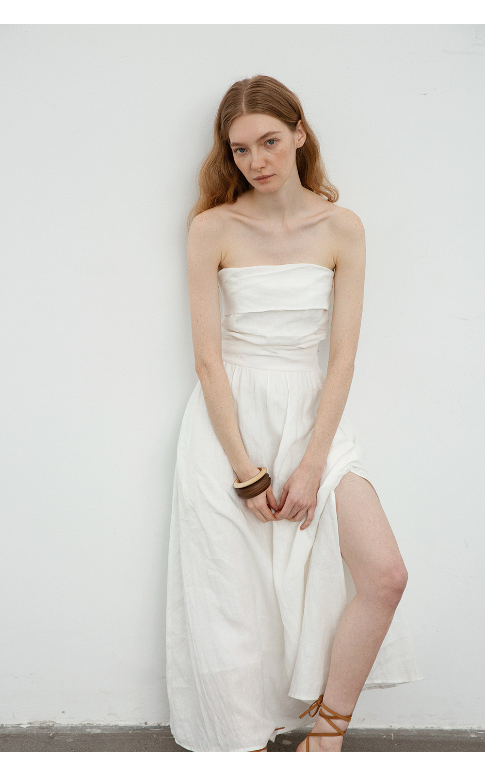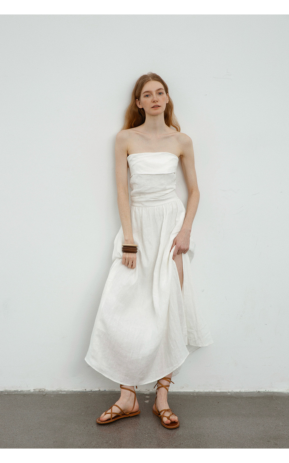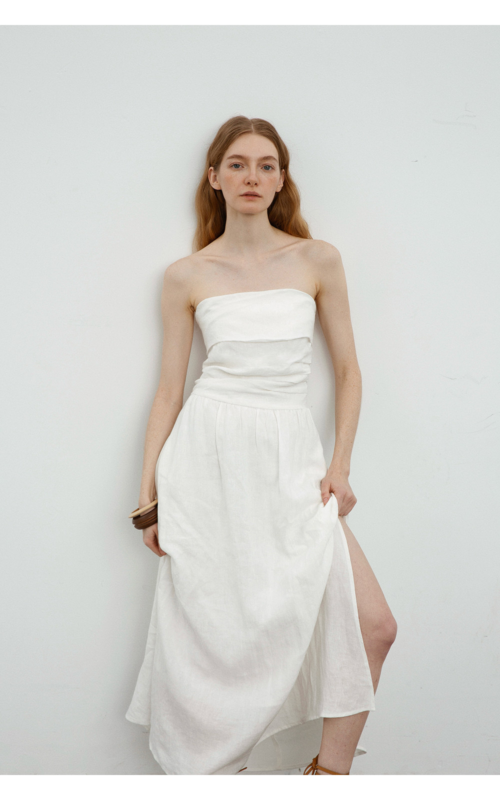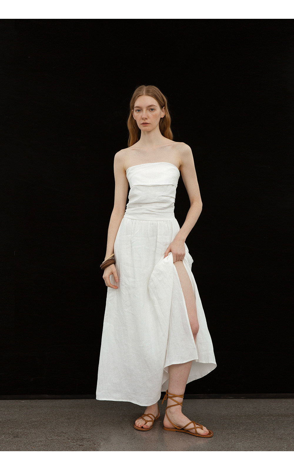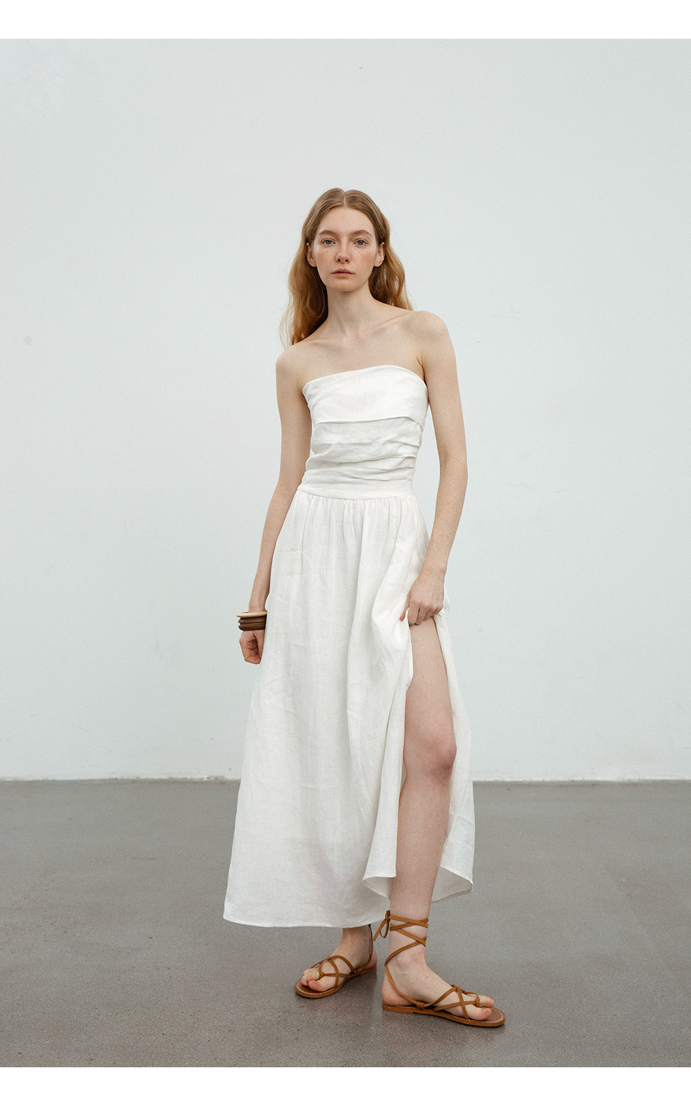 Countonme French Romantic/Full Linen Vacation Style Pleated Strapless Dress Slimming Slit Long Dress