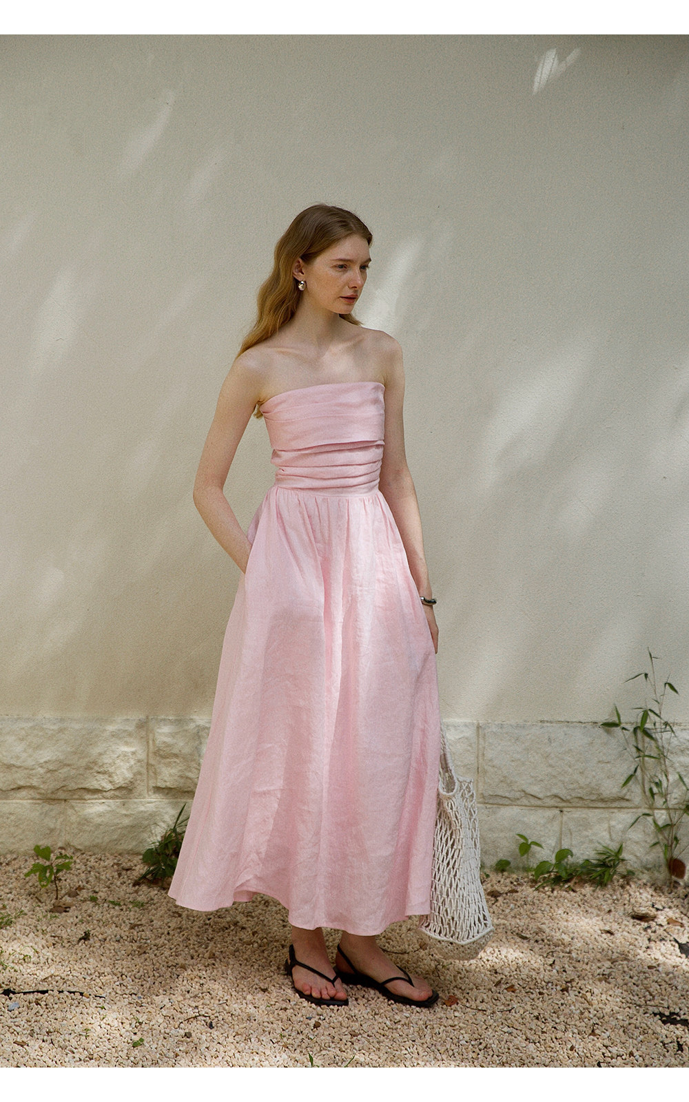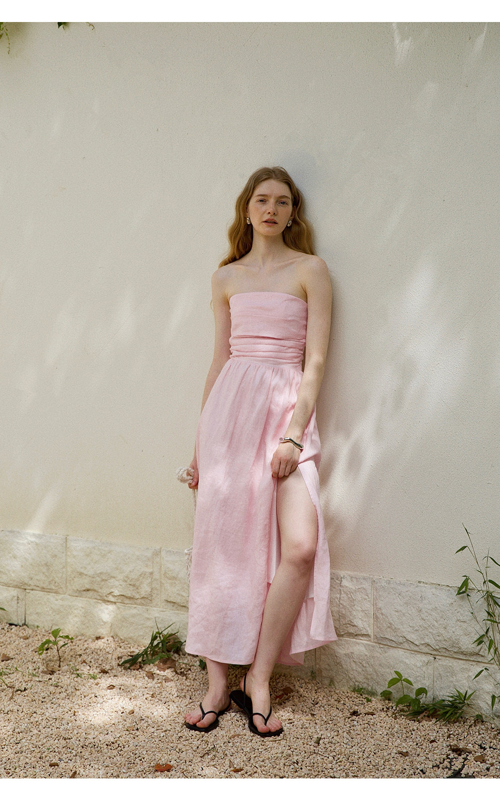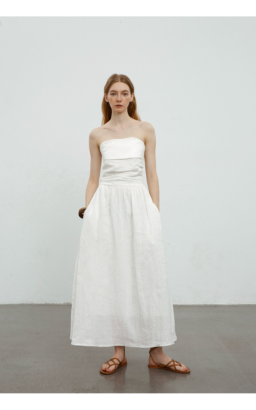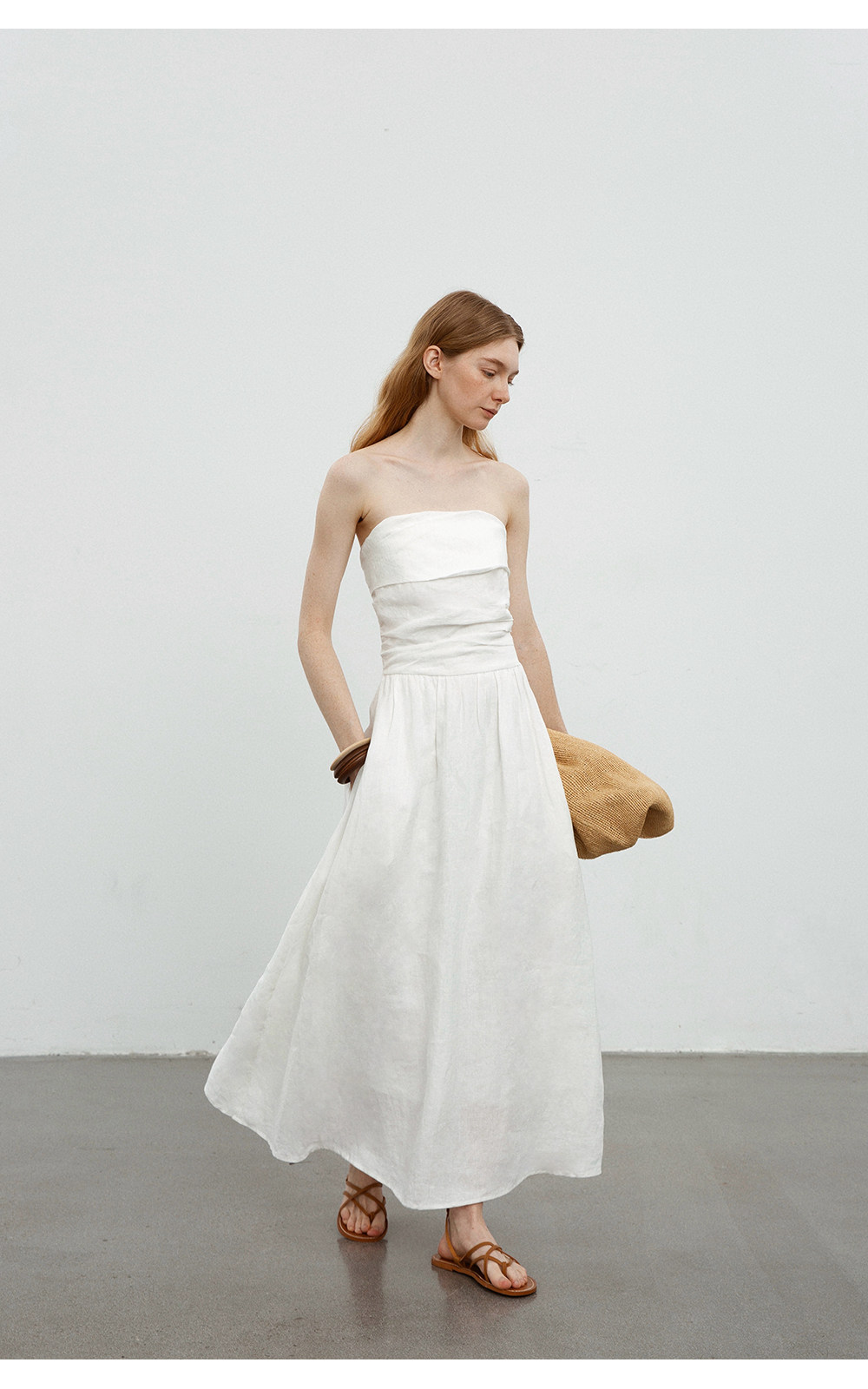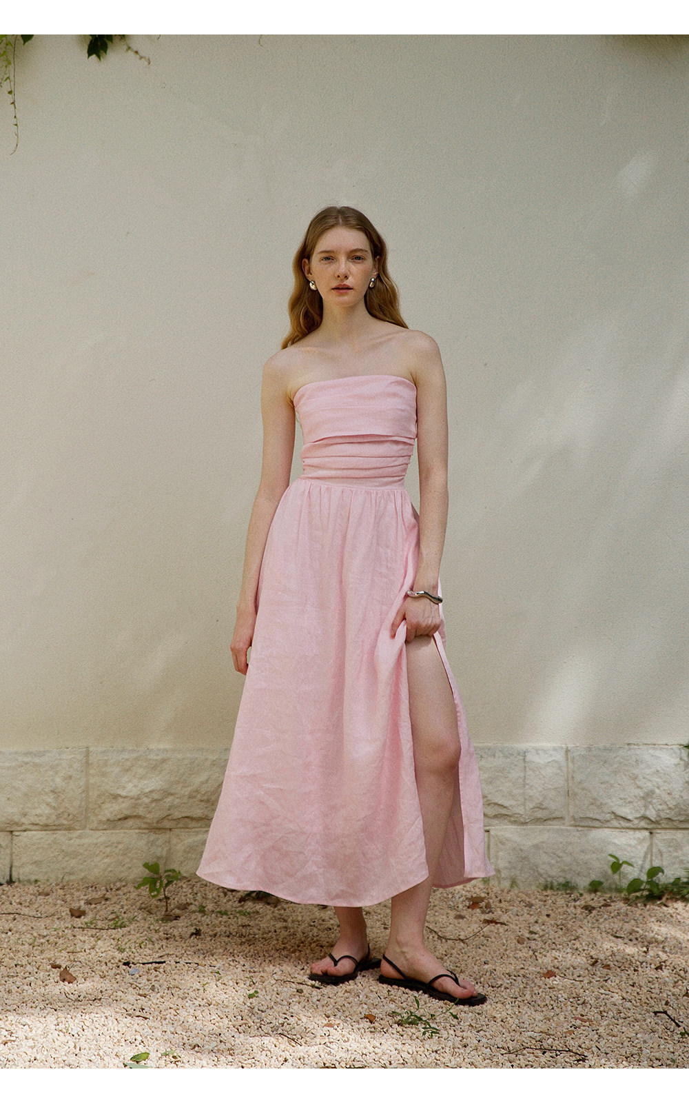 Countonme French Romantic/Full Linen Vacation Style Pleated Strapless Dress Slimming Slit Long Dress