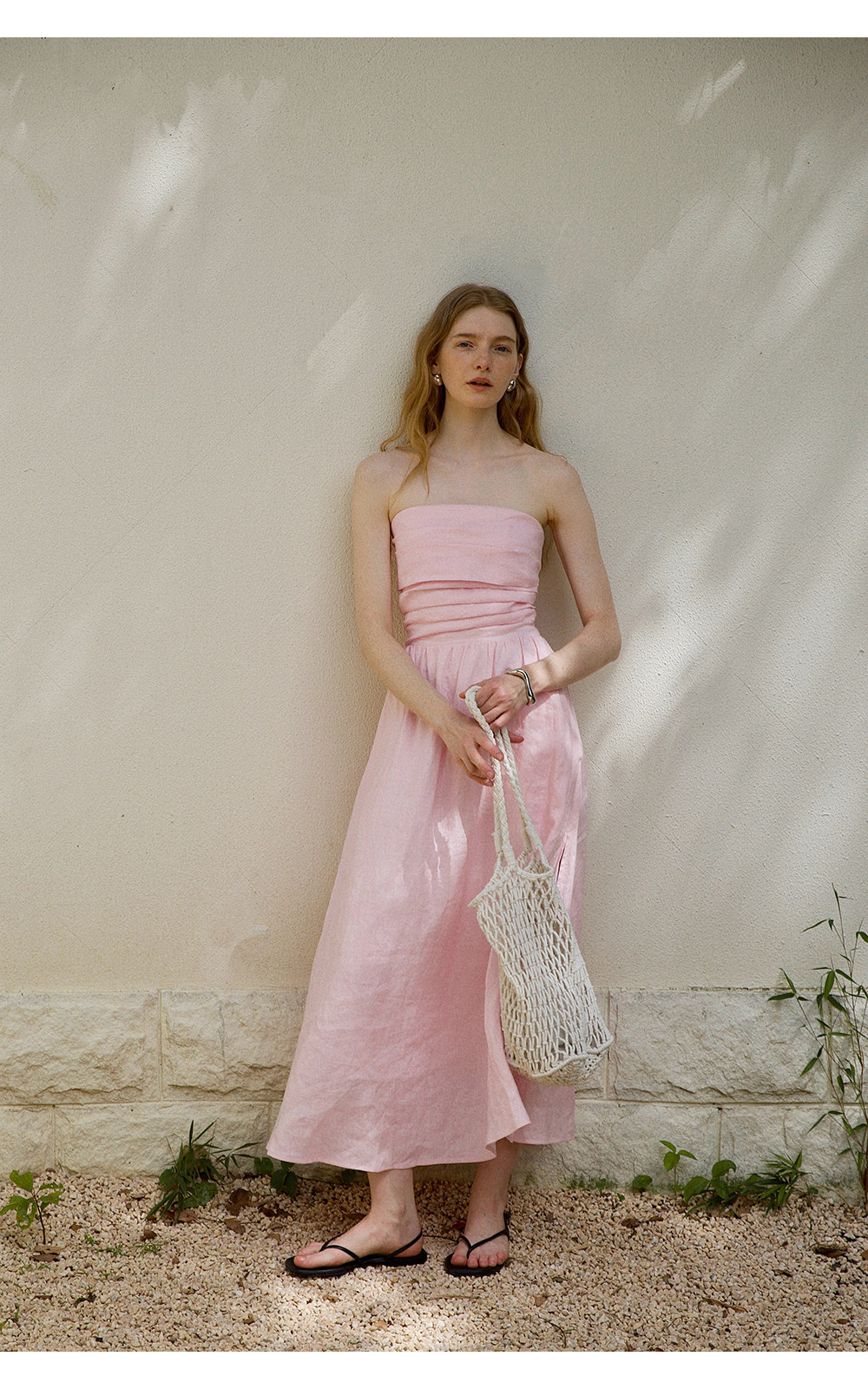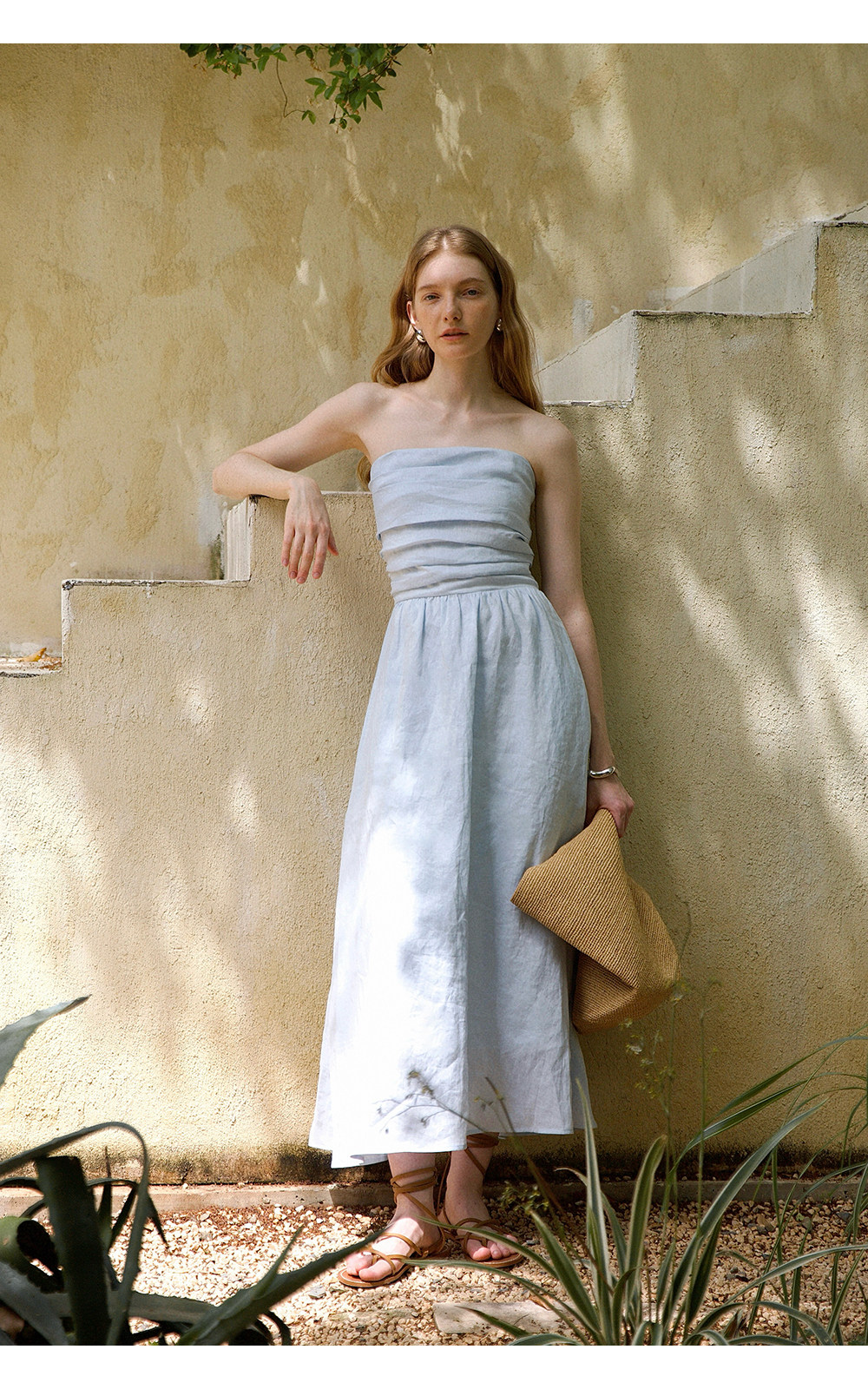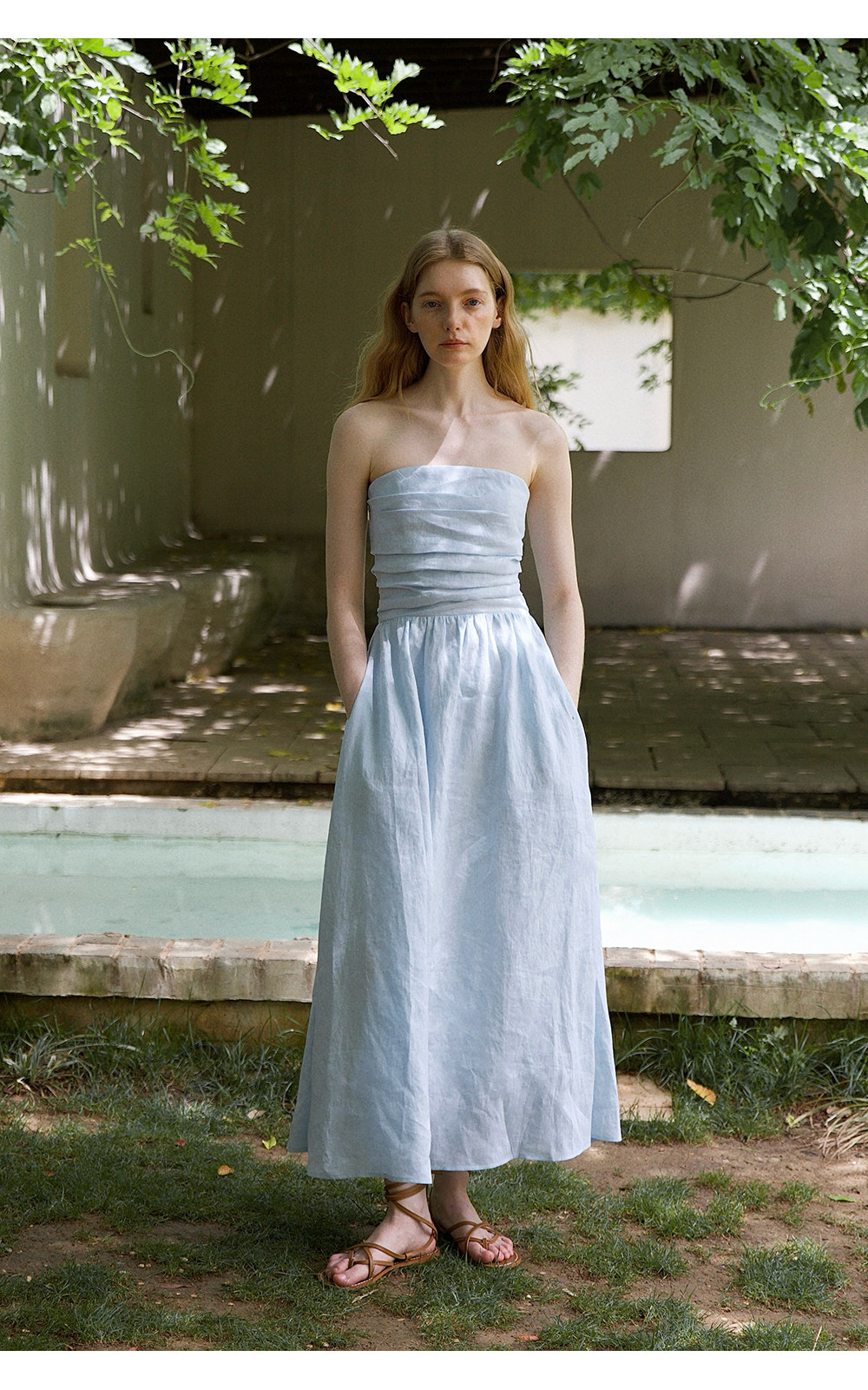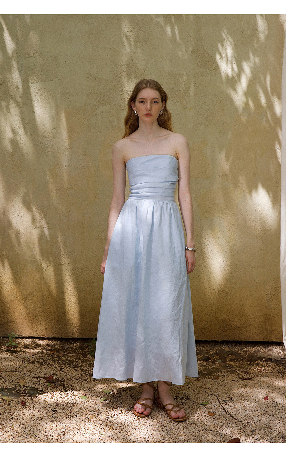 Countonme French Romantic/Full Linen Vacation Style Pleated Strapless Dress Slimming Slit Long Dress