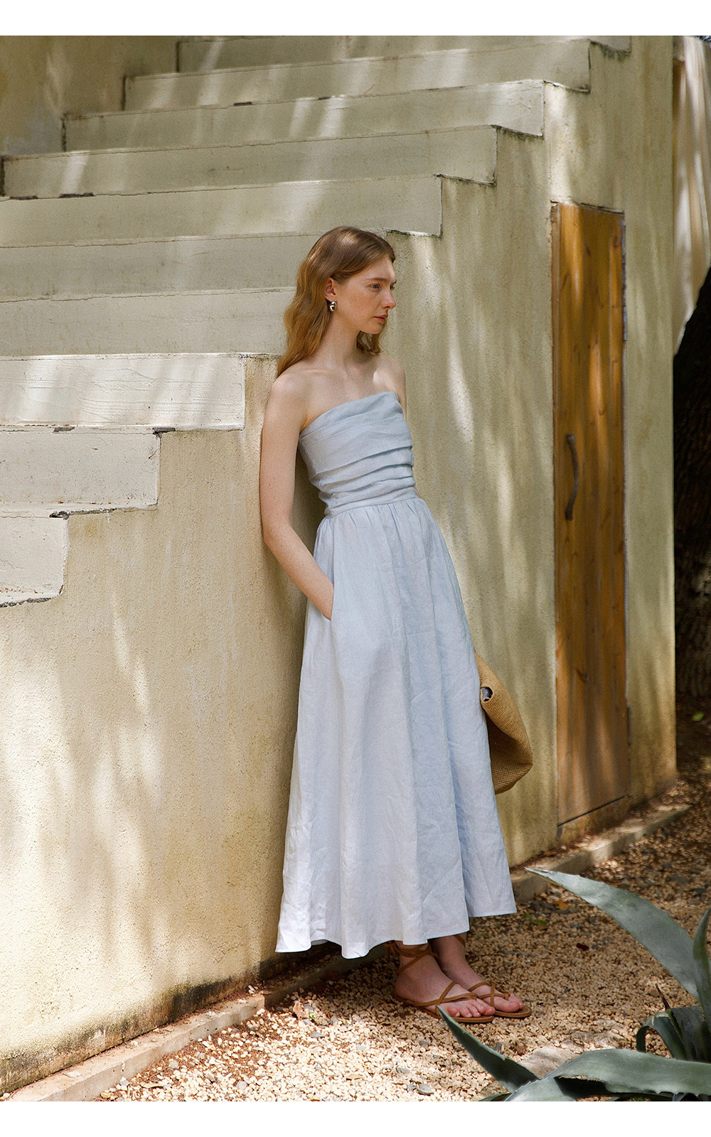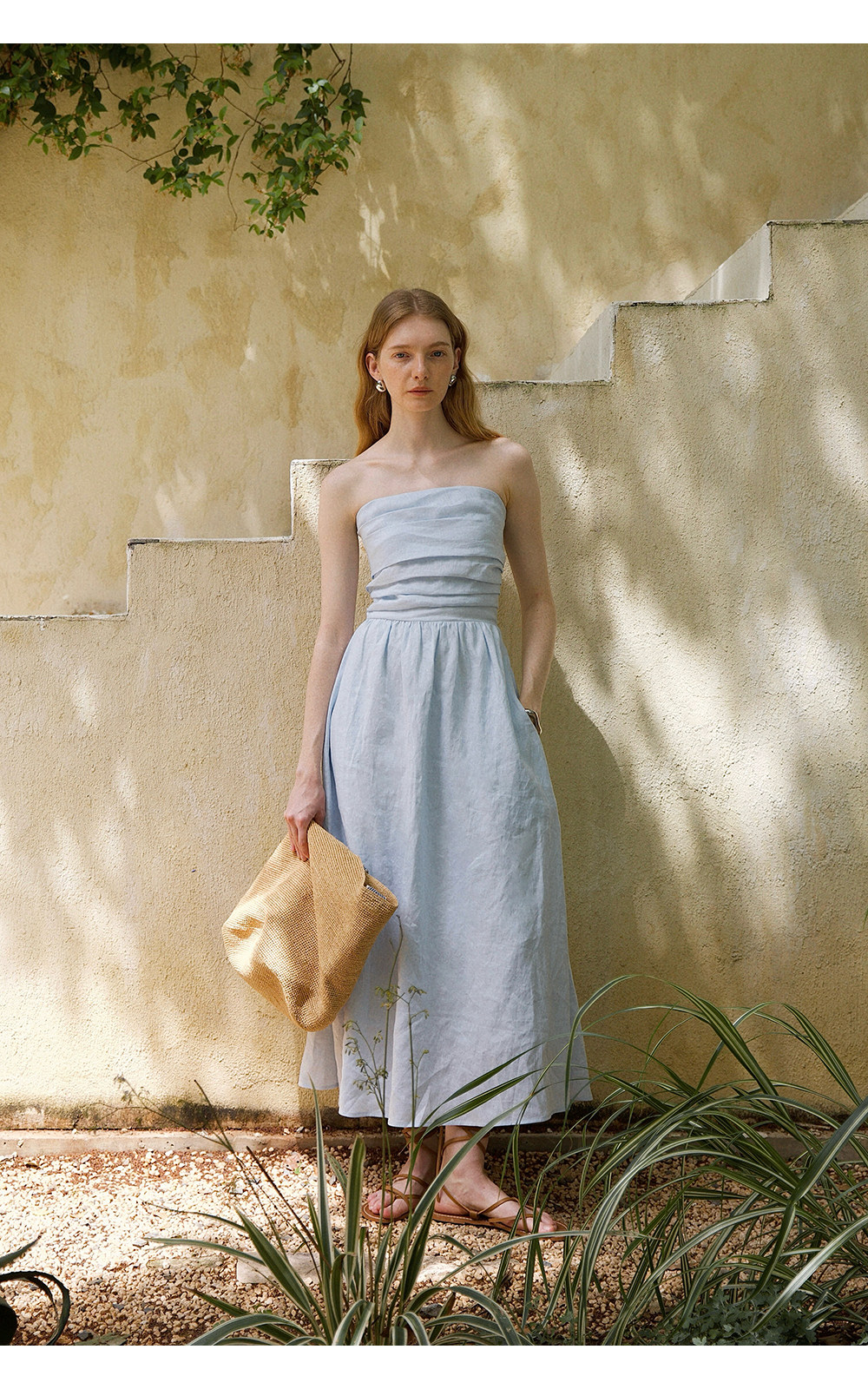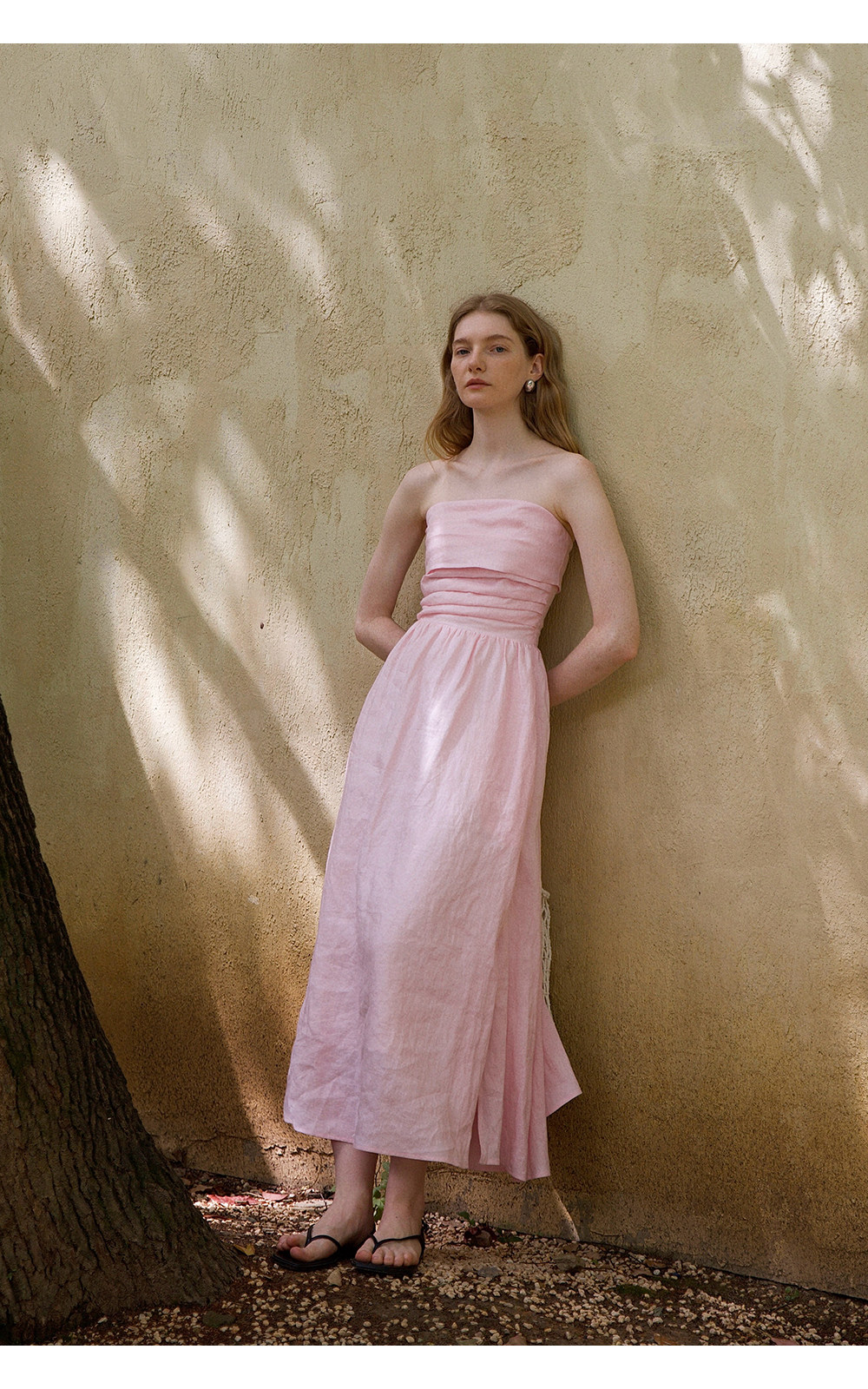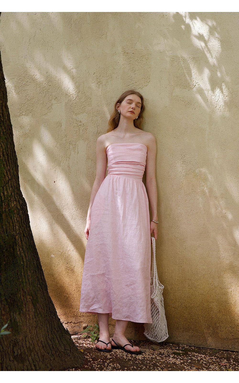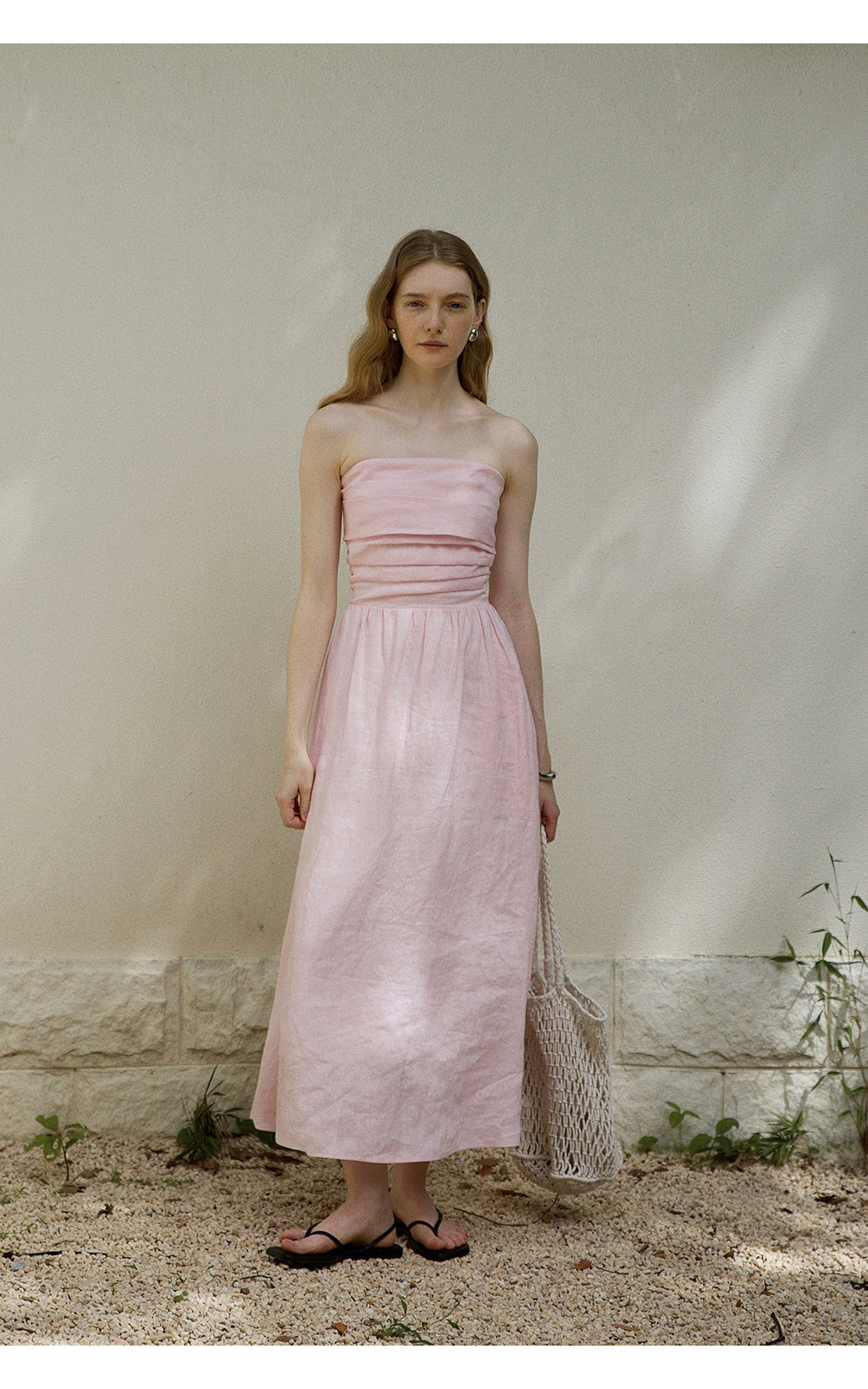 Countonme French Romantic/Full Linen Vacation Style Pleated Strapless Dress Slimming Slit Long Dress