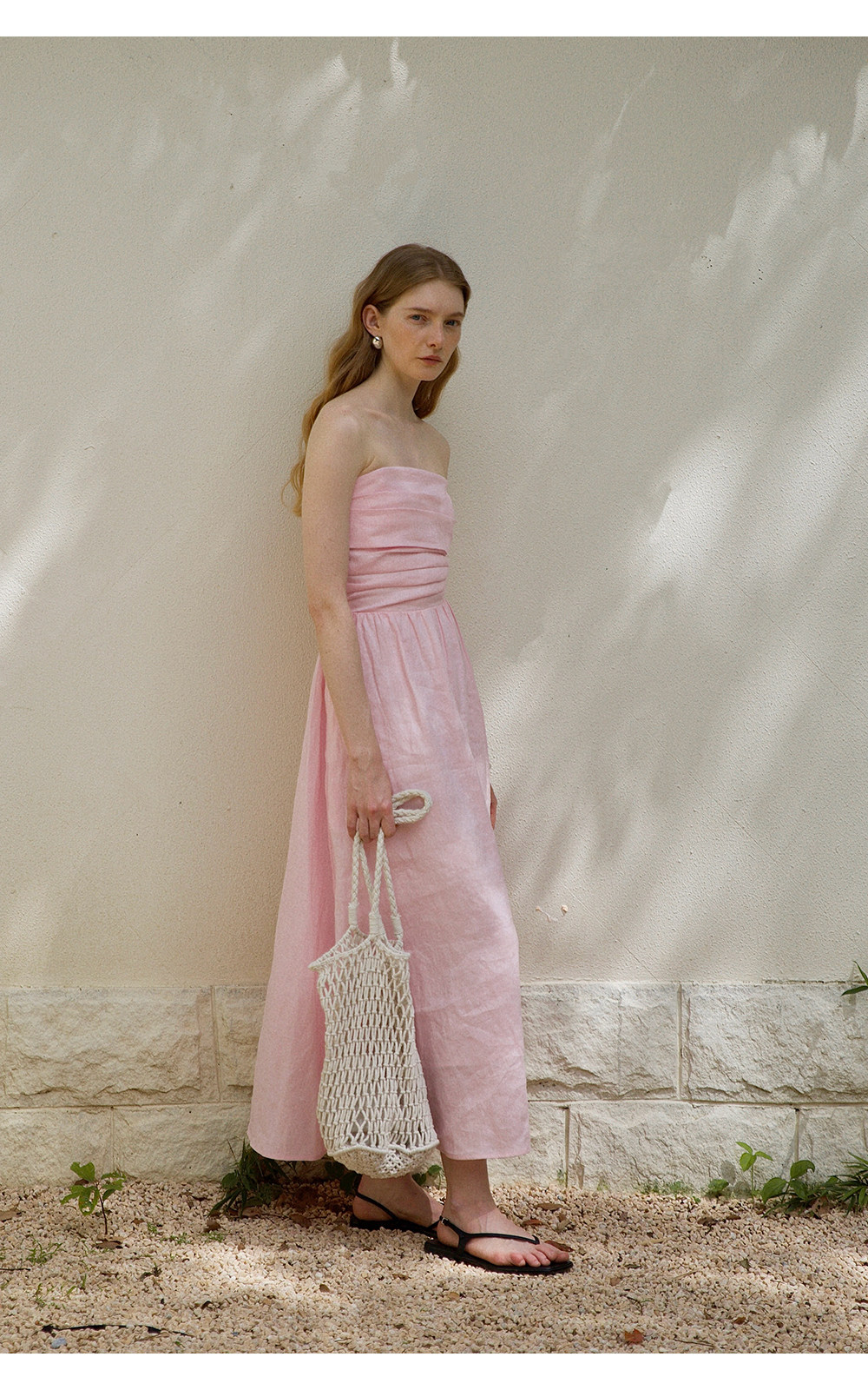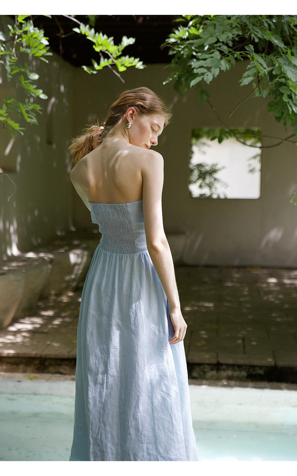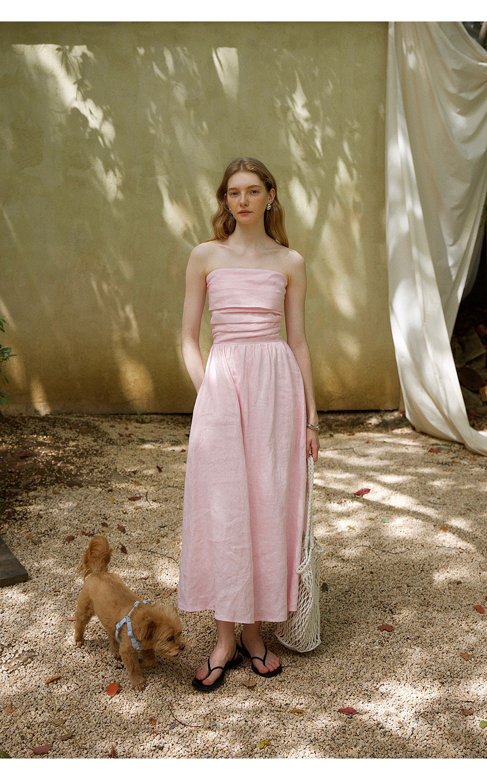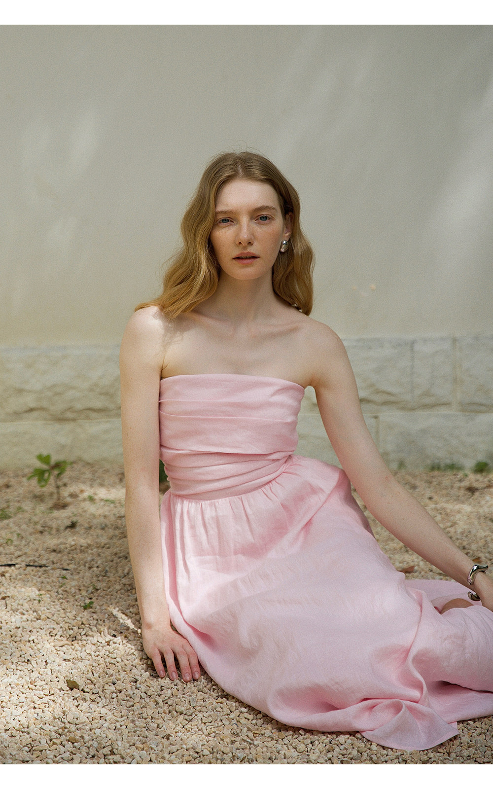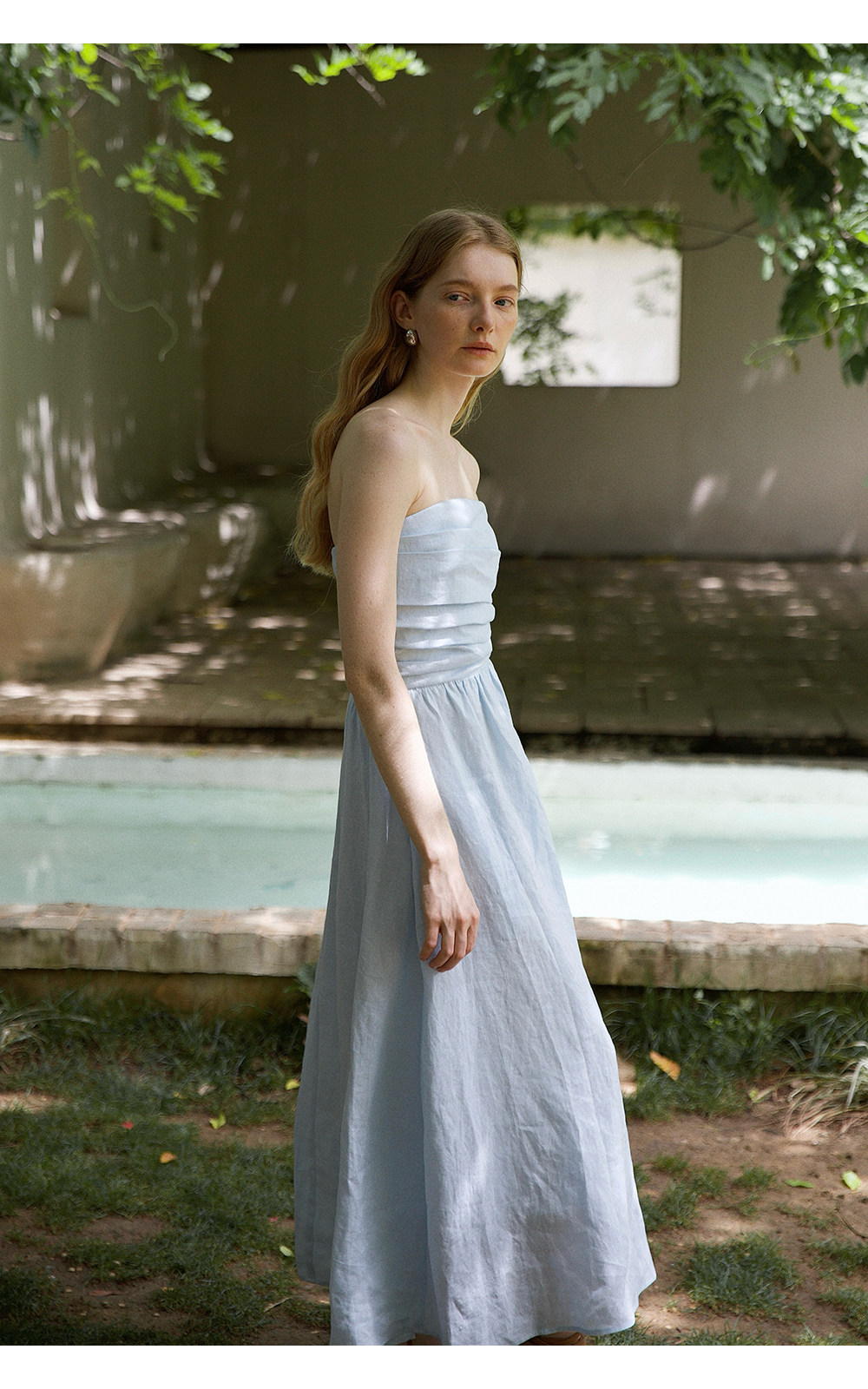 Countonme French Romantic/Full Linen Vacation Style Pleated Strapless Dress Slimming Slit Long Dress
