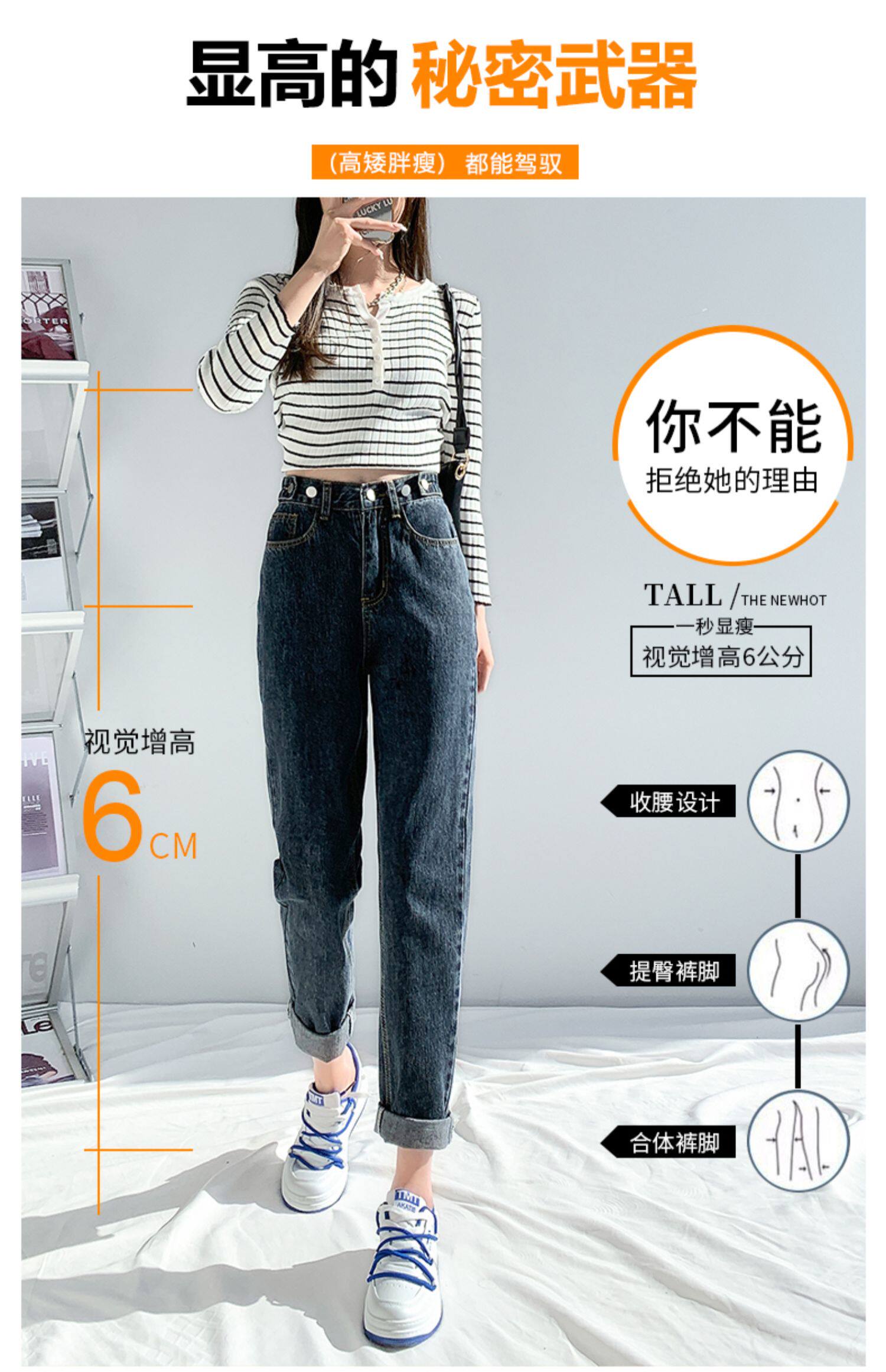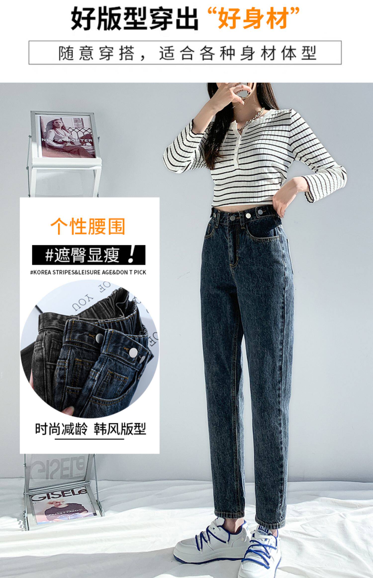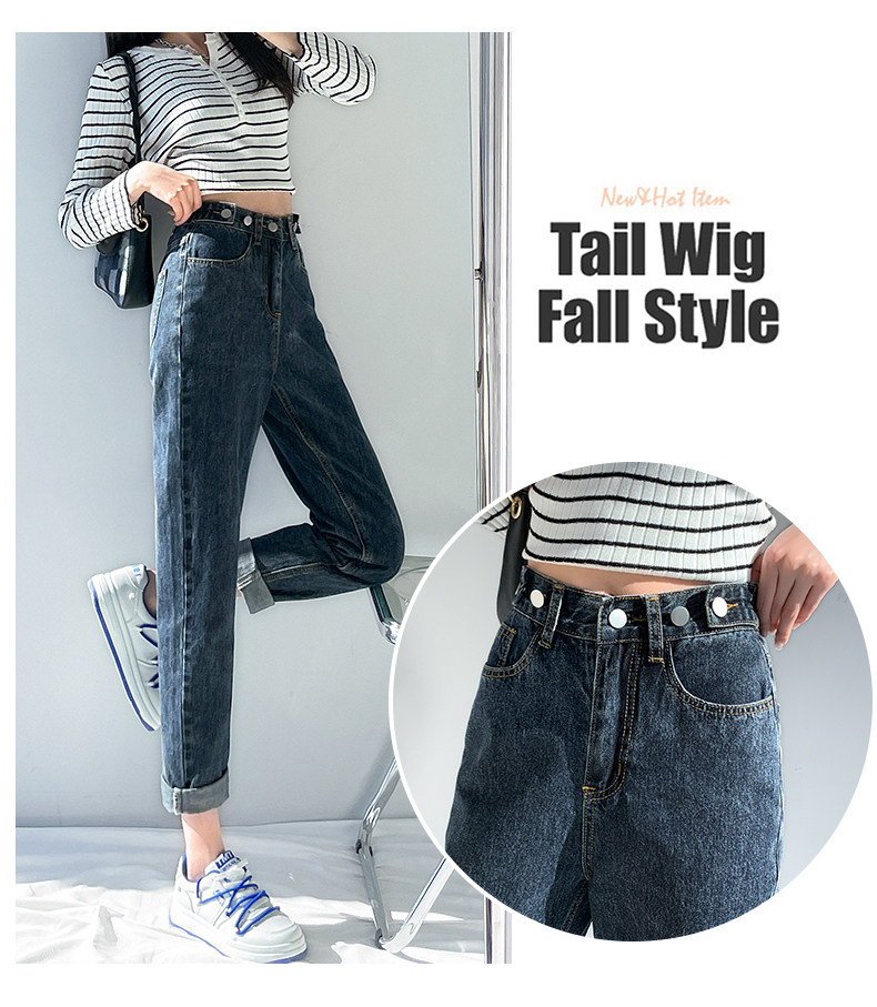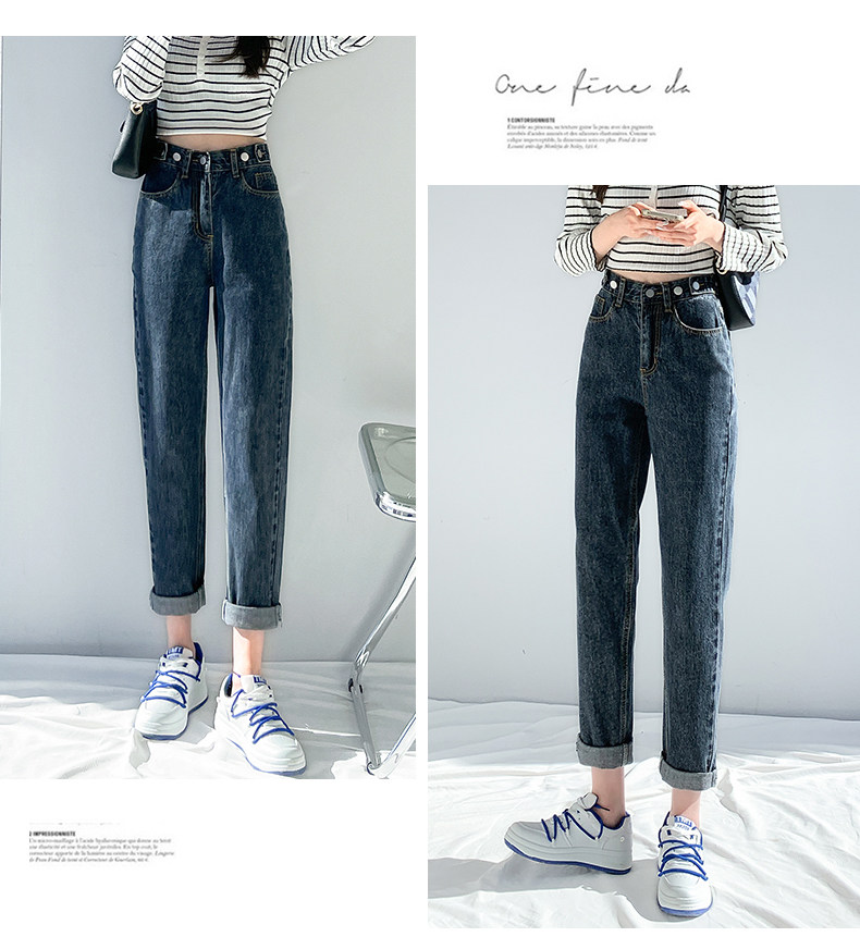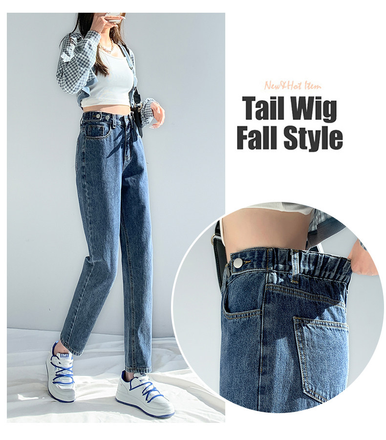 Elastic Waist Harem Jeans for Women, Spring/Summer 2026 New Style, High-Waisted, Straight-Leg, Loose, Slimming, Plus-Size Dad Pants