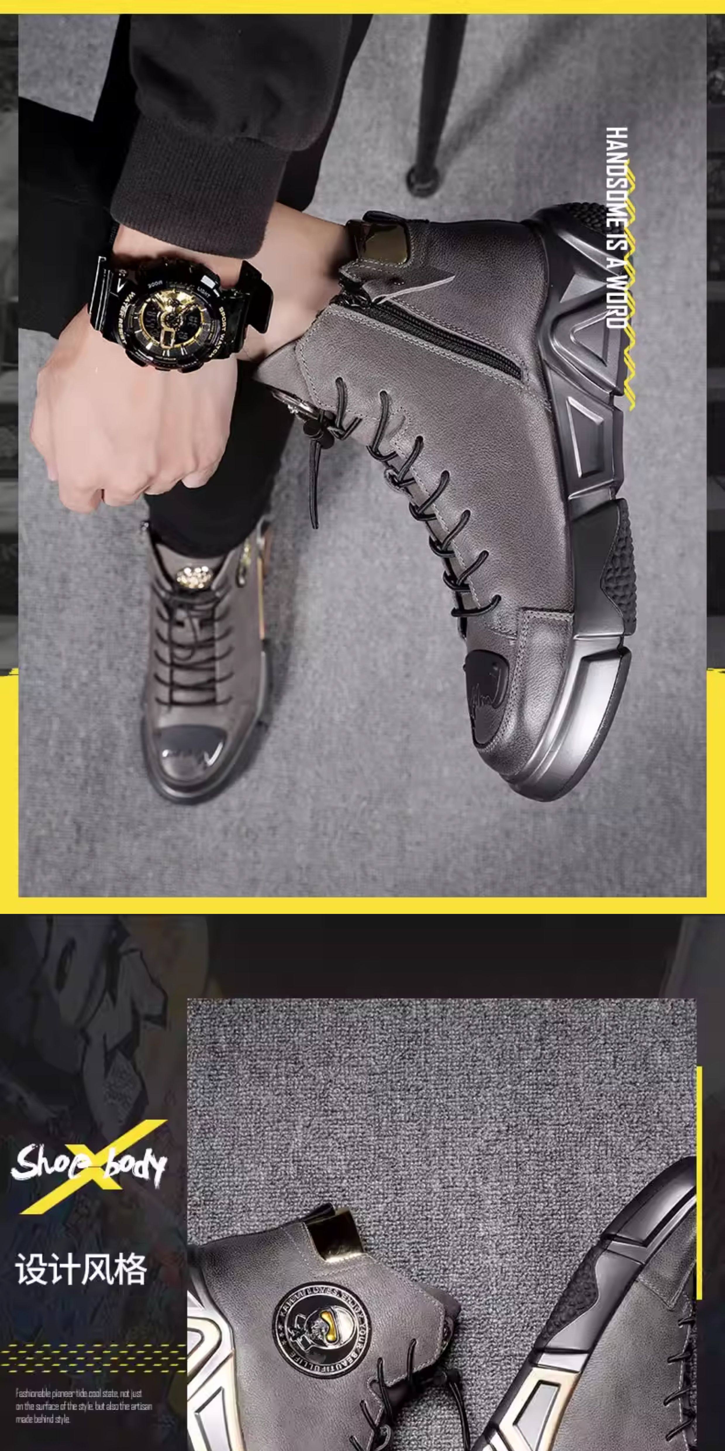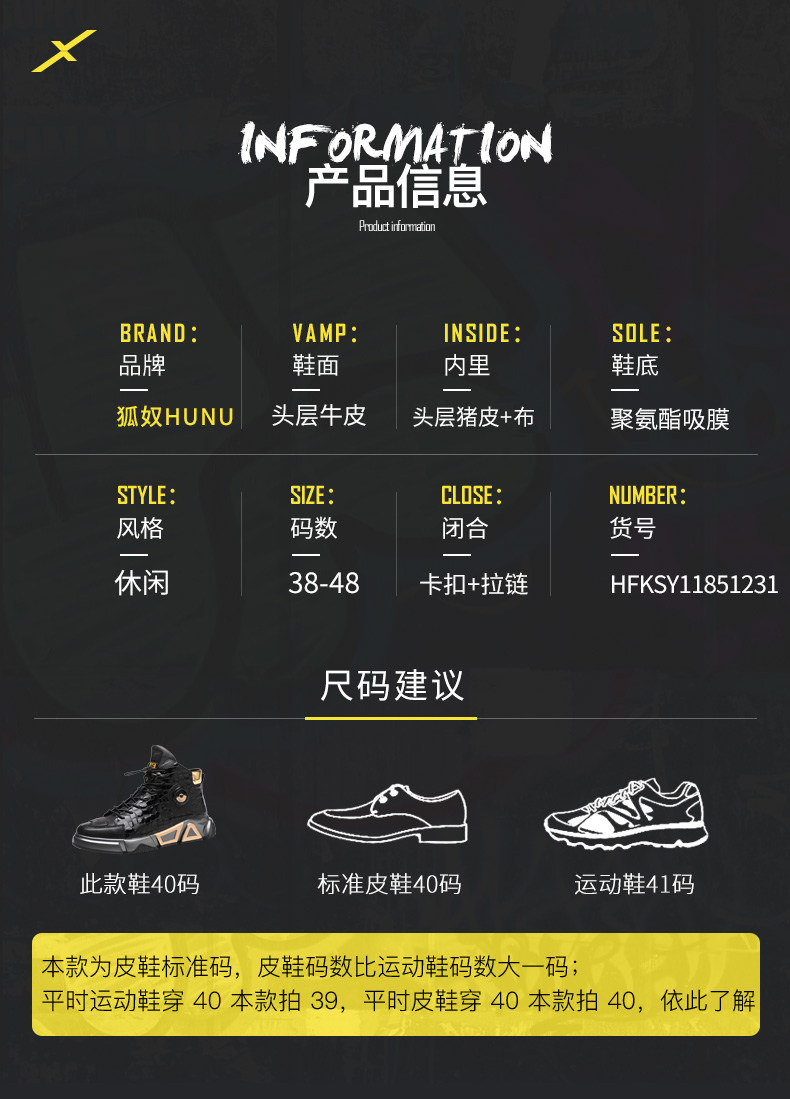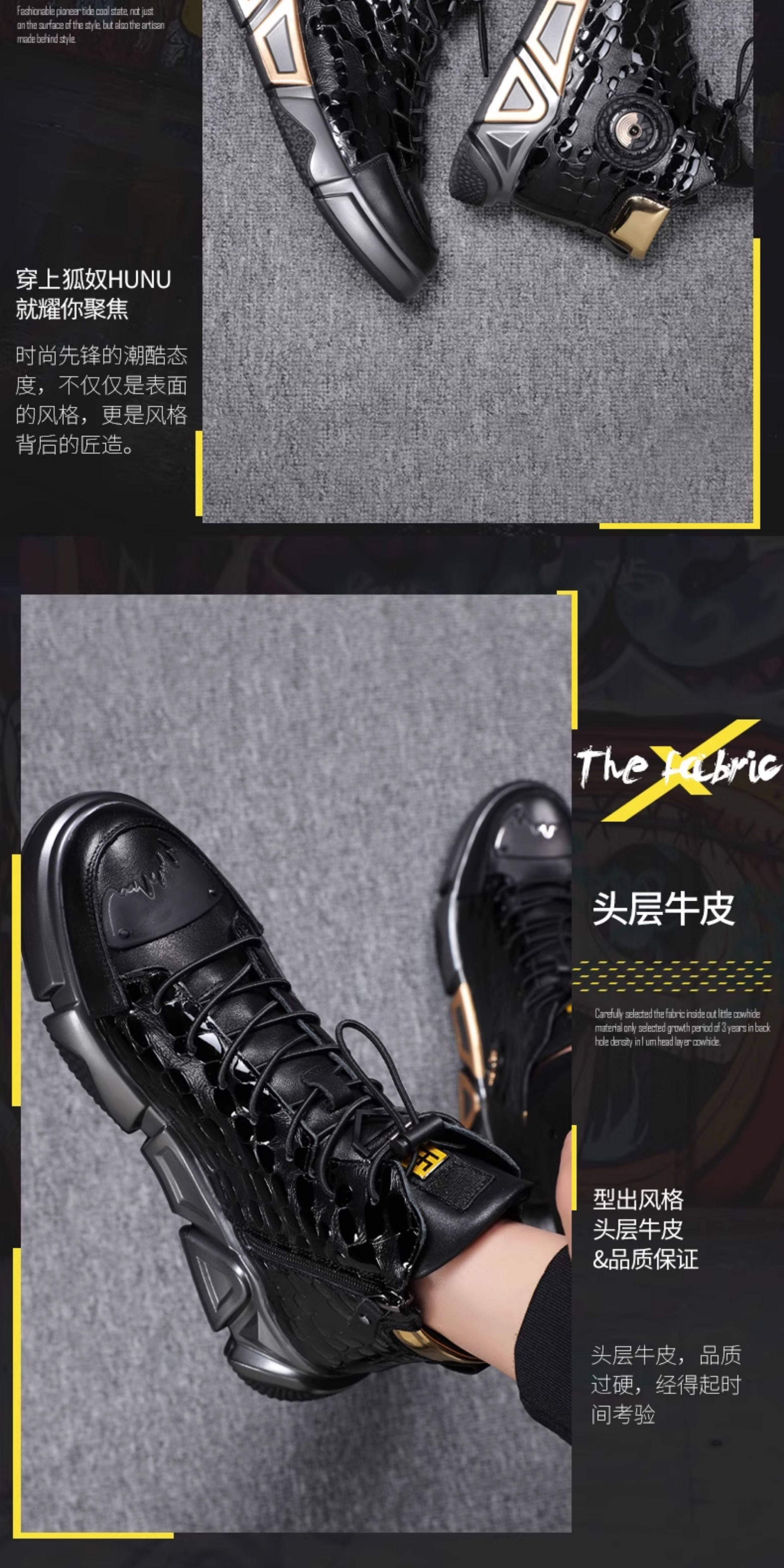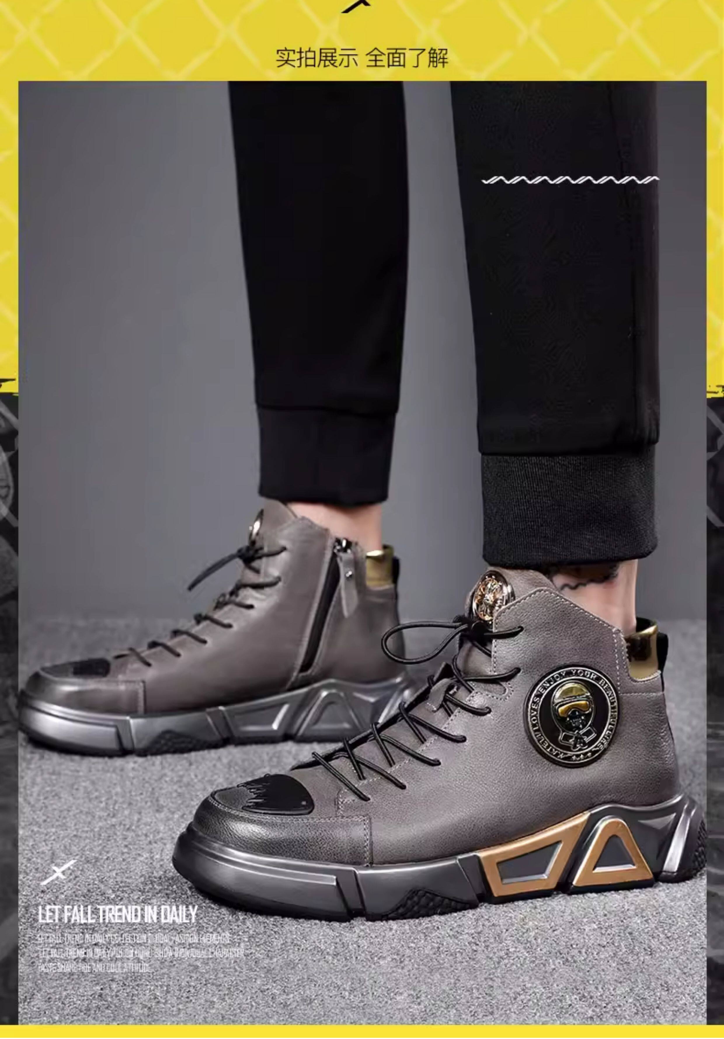 Fox High-Top Shoes for Men, Genuine Leather, New Spring Men's Shoes, Cowhide, Trendy, High-End, Casual, Stylish Martin Boots for Men