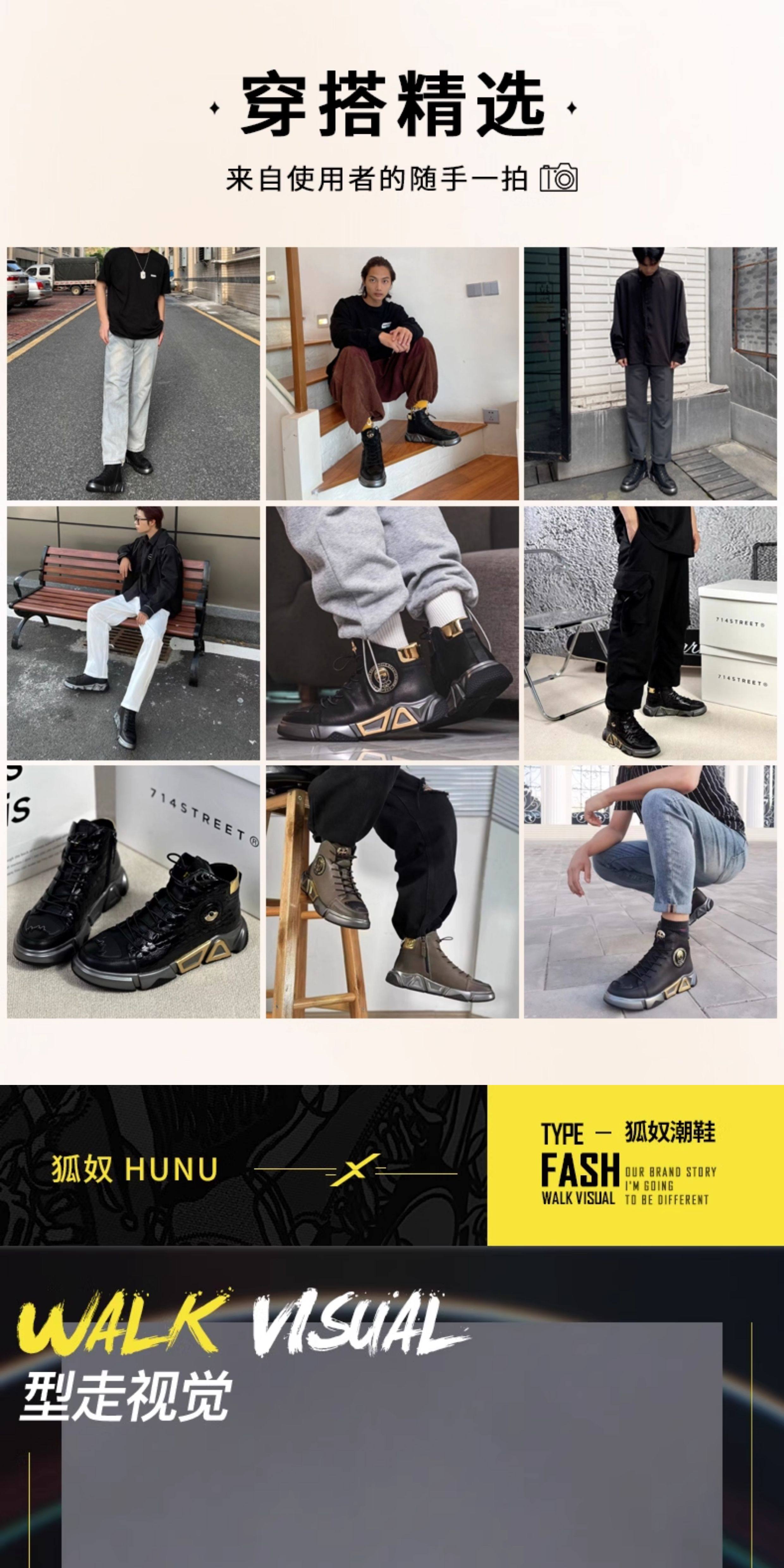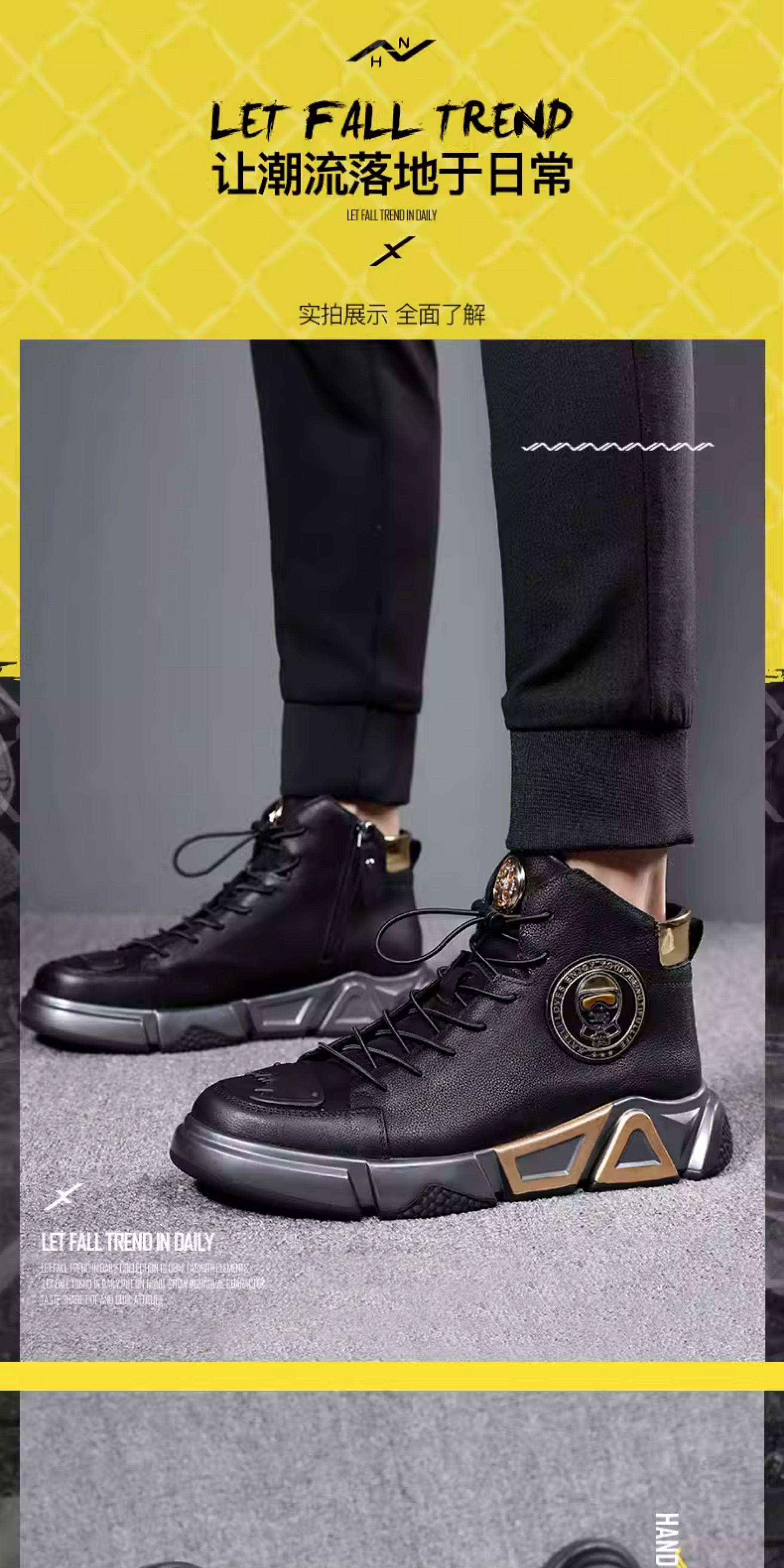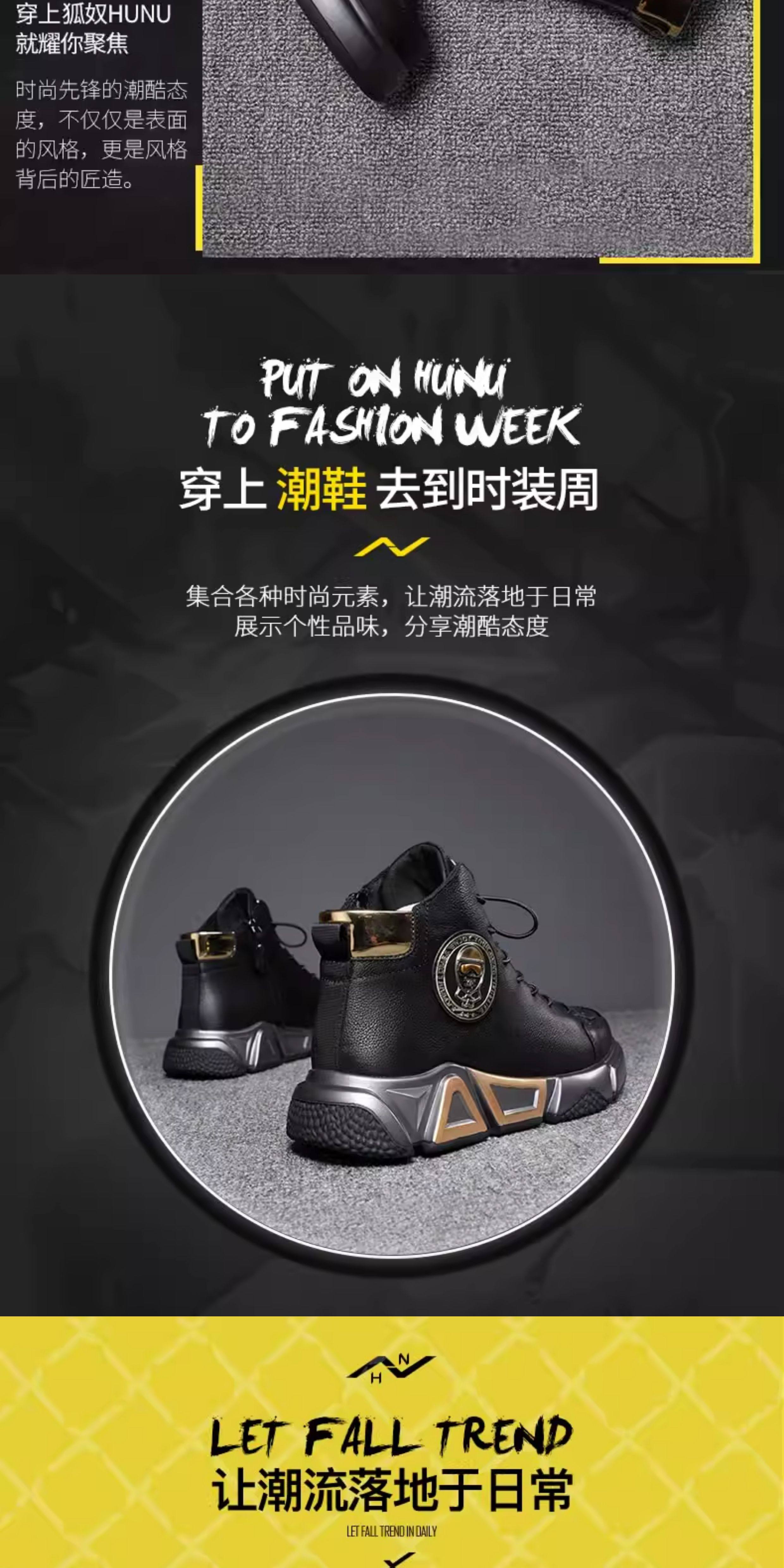 Fox High-Top Shoes for Men, Genuine Leather, New Spring Men's Shoes, Cowhide, Trendy, High-End, Casual, Stylish Martin Boots for Men