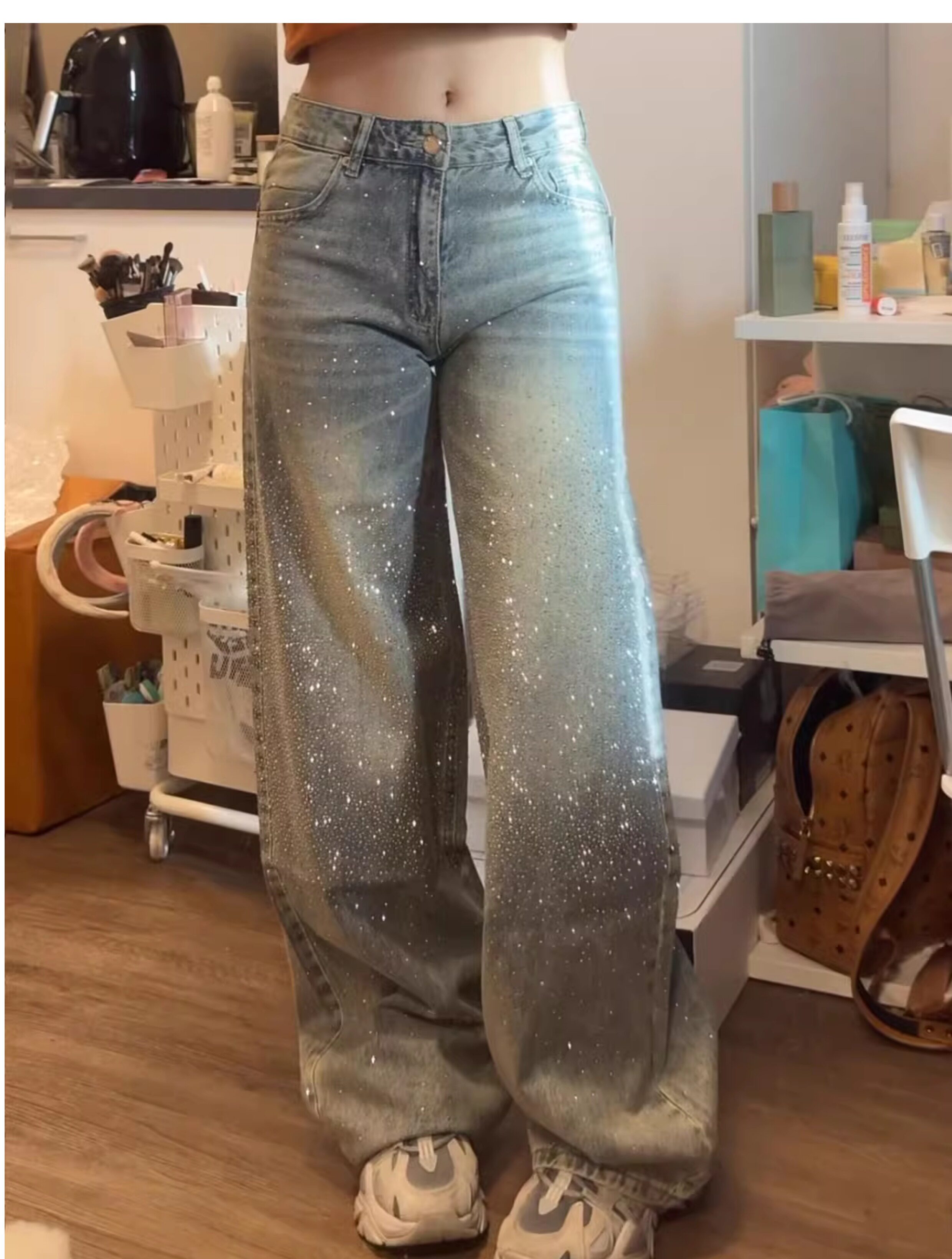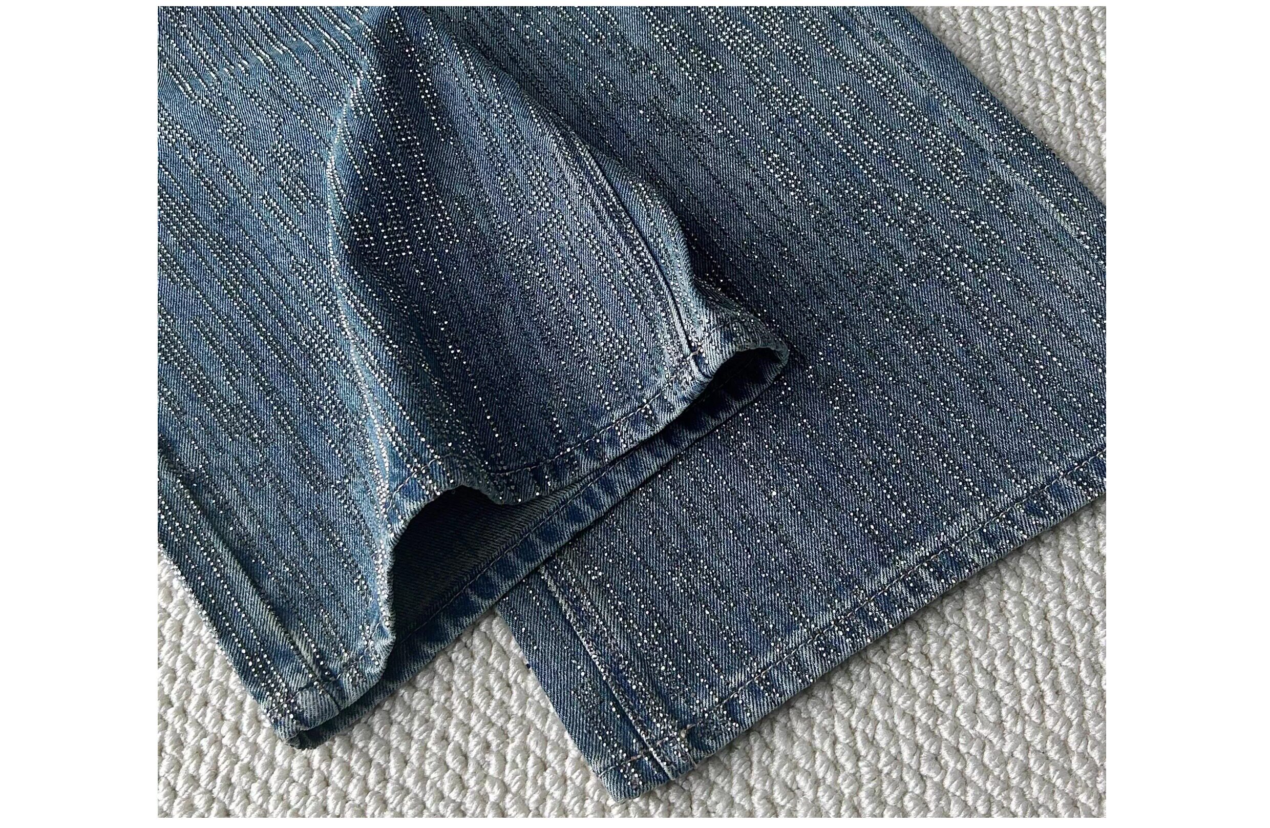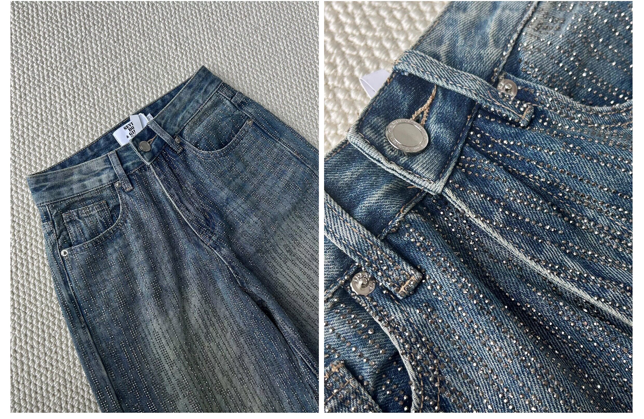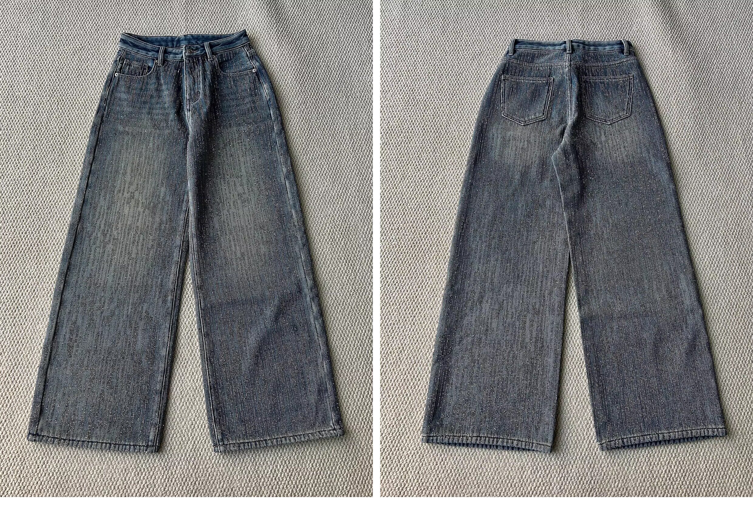Halfmood25Ss Dazzling Paris-Style Full Rhinestone Design Niche Shiny Diamond Heavy-Duty Loose Wide-Leg Jeans for Women