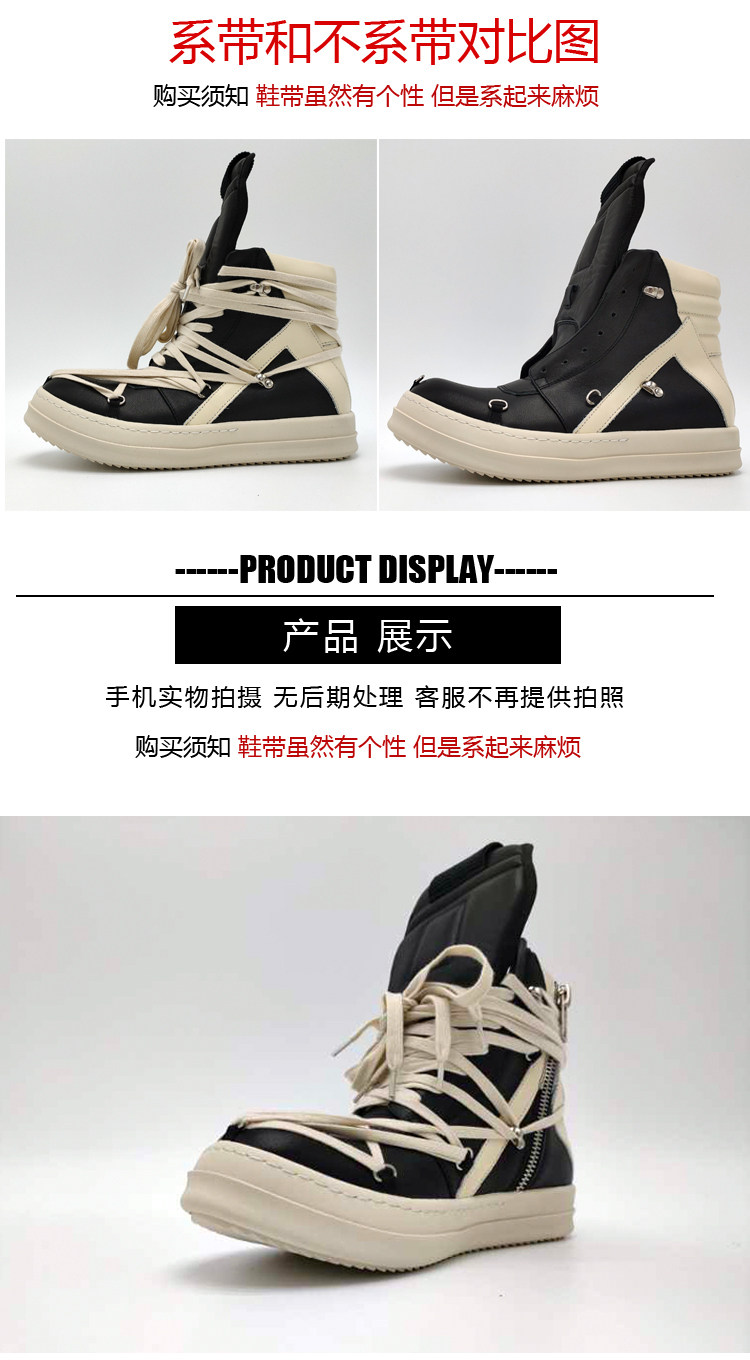 Ro Shoes Men's Five-Pointed Star Inverted Triangle Sneakers Lace-Up Mummy High-Top Shoes Height-Increasing Thick-Soled Genuine Leather Short Boots Women's Trendy