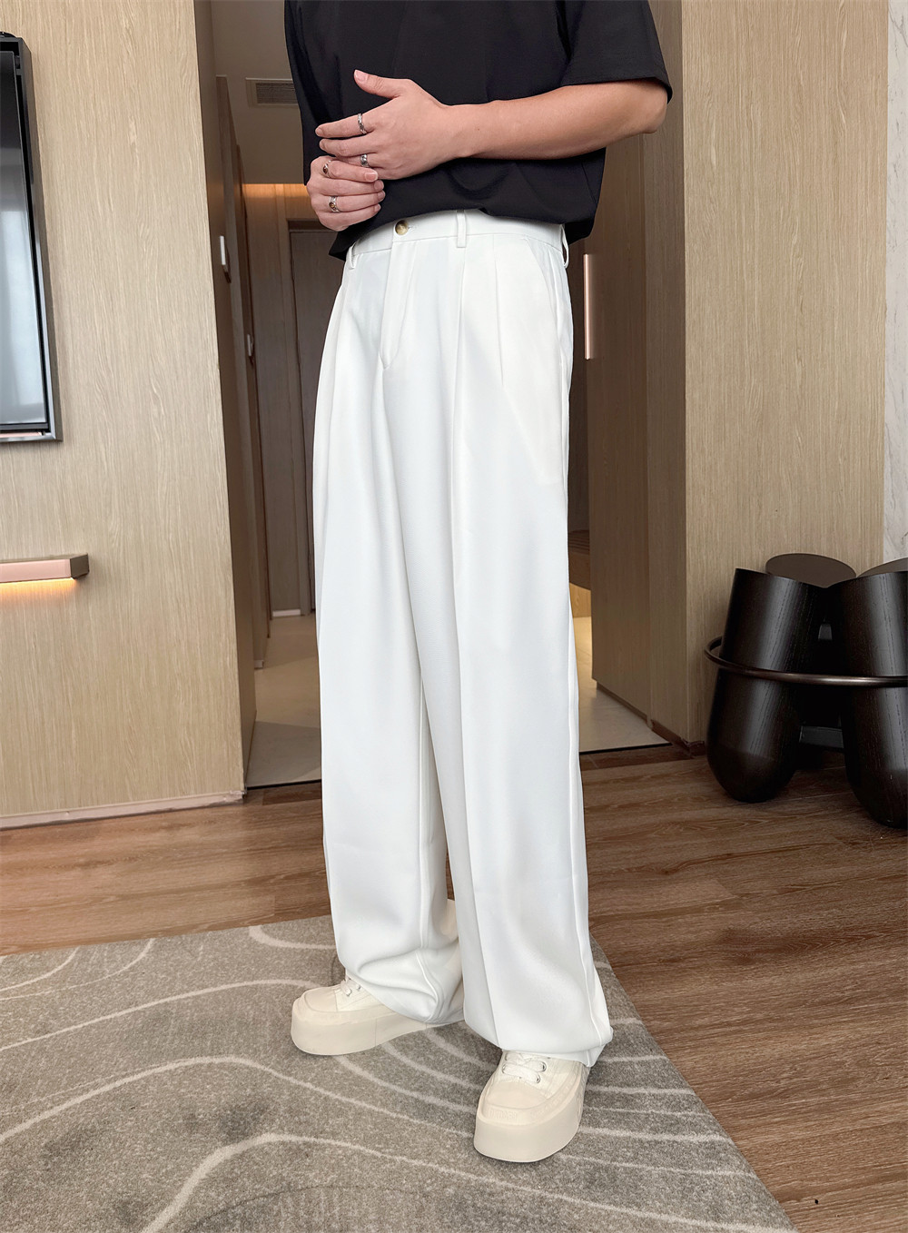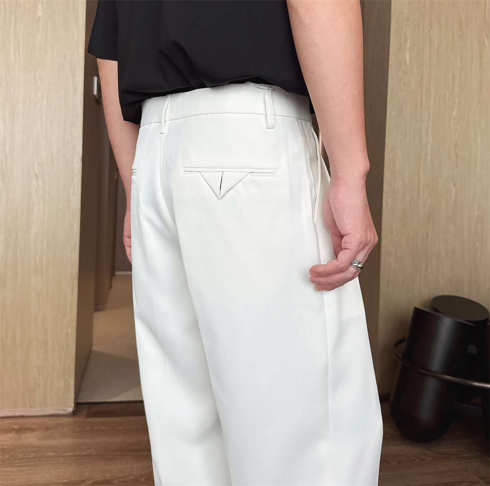 Rocca White Casual Men's Dress Pants with Drape Effect 2026 New Style ins Height-Enhancing Loose Wide-Leg Straight Pants
