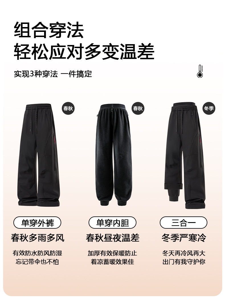 Wassup Cmkpo Three-In-One Softshell Pants for Men and Women, Autumn and Winter Fleece-Lined and Thickened Mountaineering and Skiing Work Pants