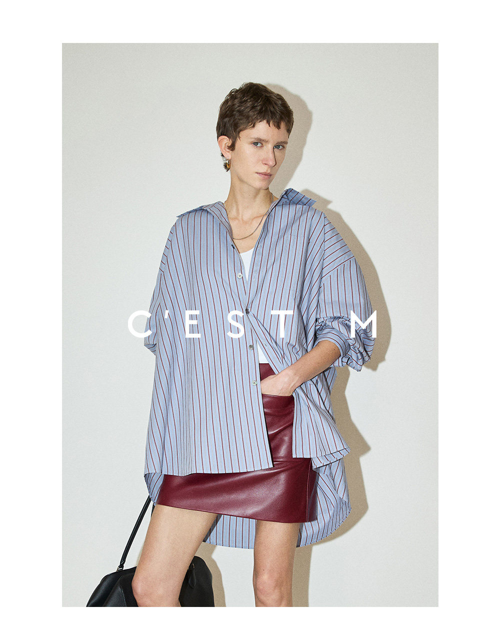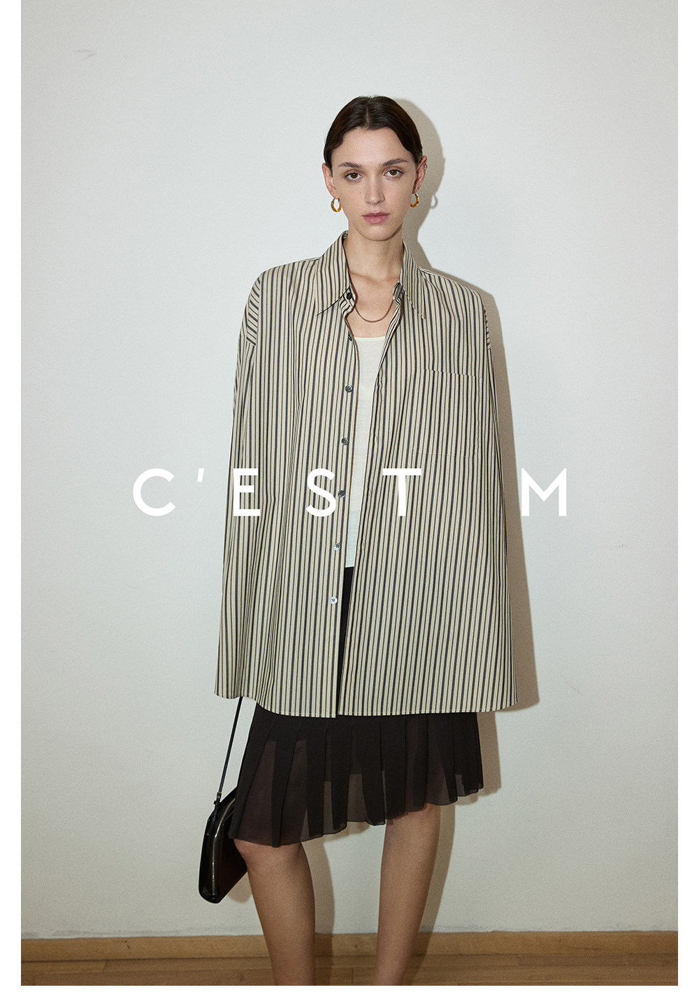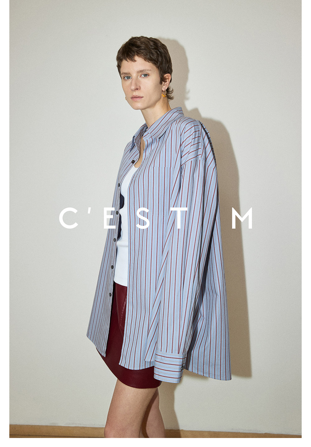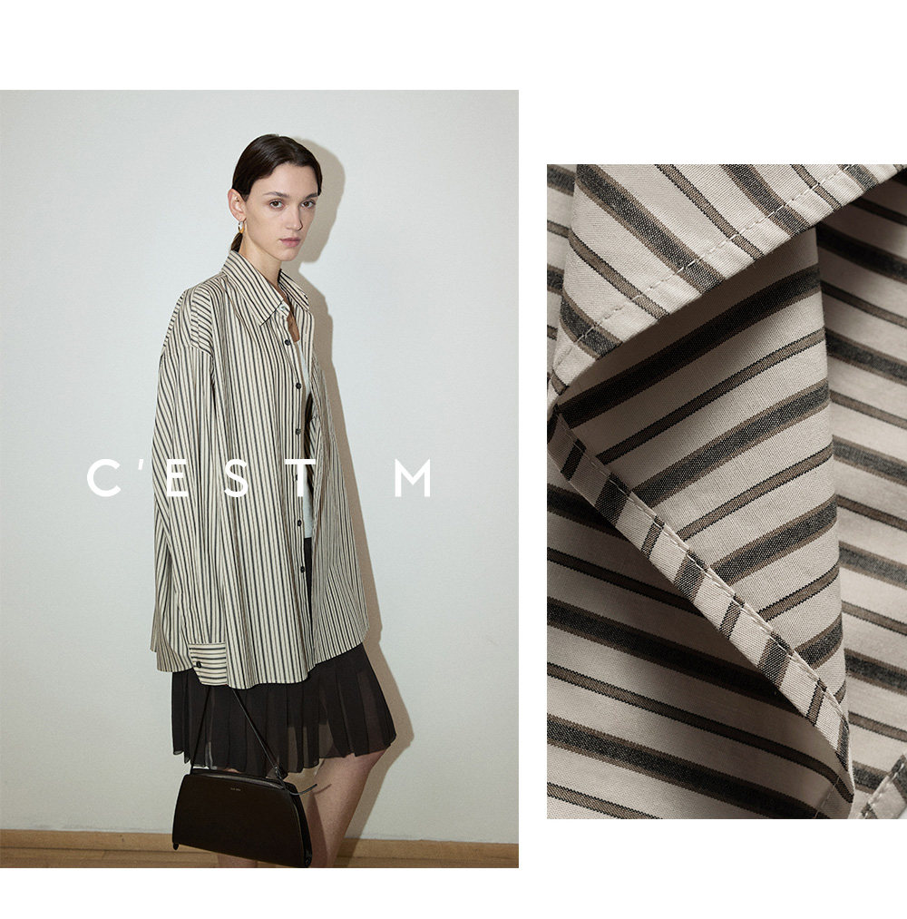 Cest m | Japanese Imported Long-Staple Cotton Vintage Color-Woven Striped Bf Boyfriend Style Oversize Silhouette Shirt