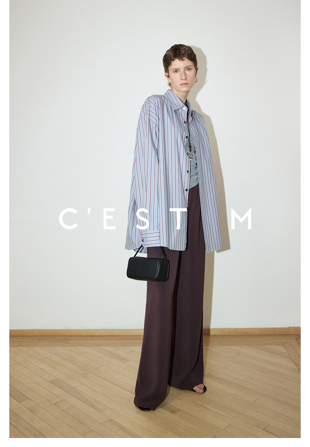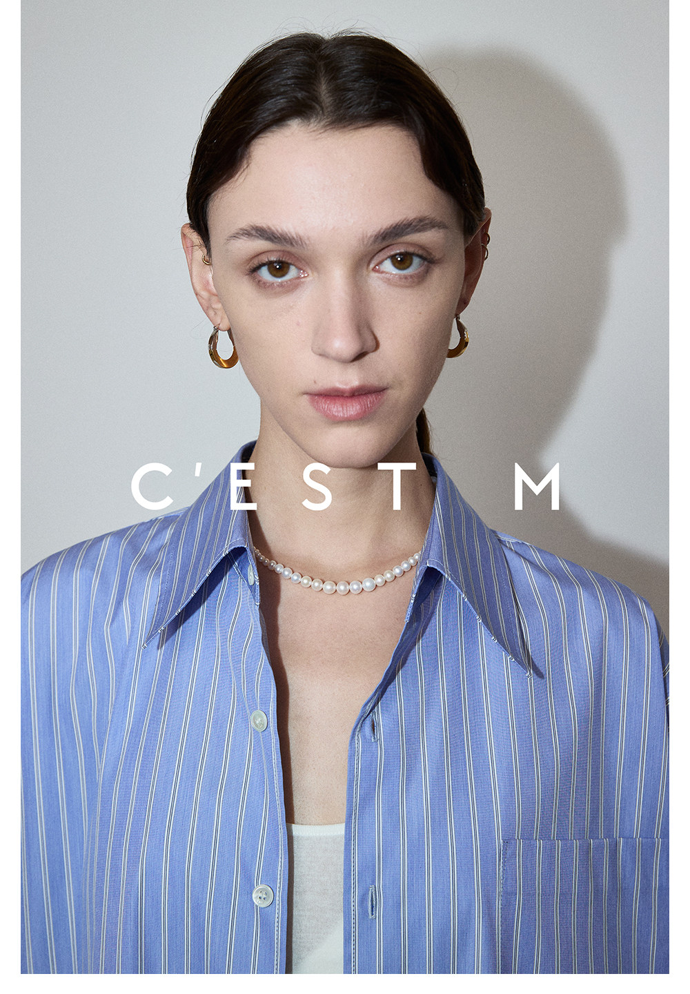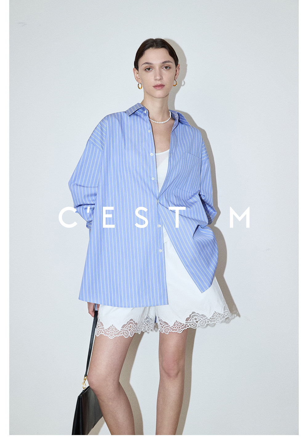 Cest m | Japanese Imported Long-Staple Cotton Vintage Color-Woven Striped Bf Boyfriend Style Oversize Silhouette Shirt