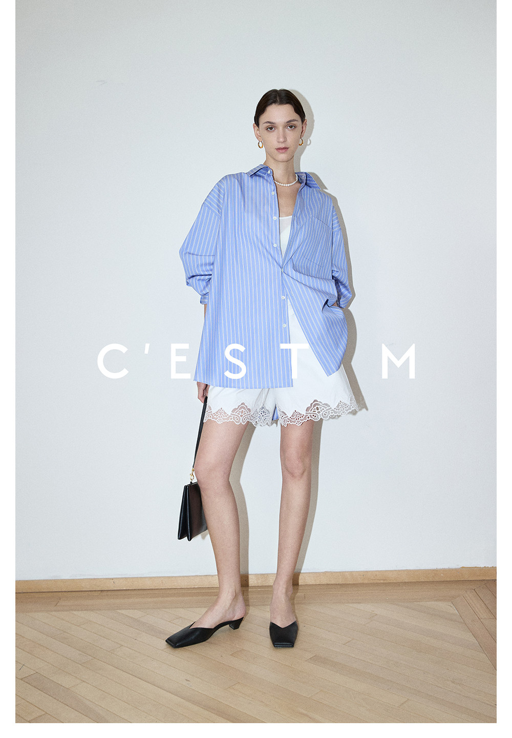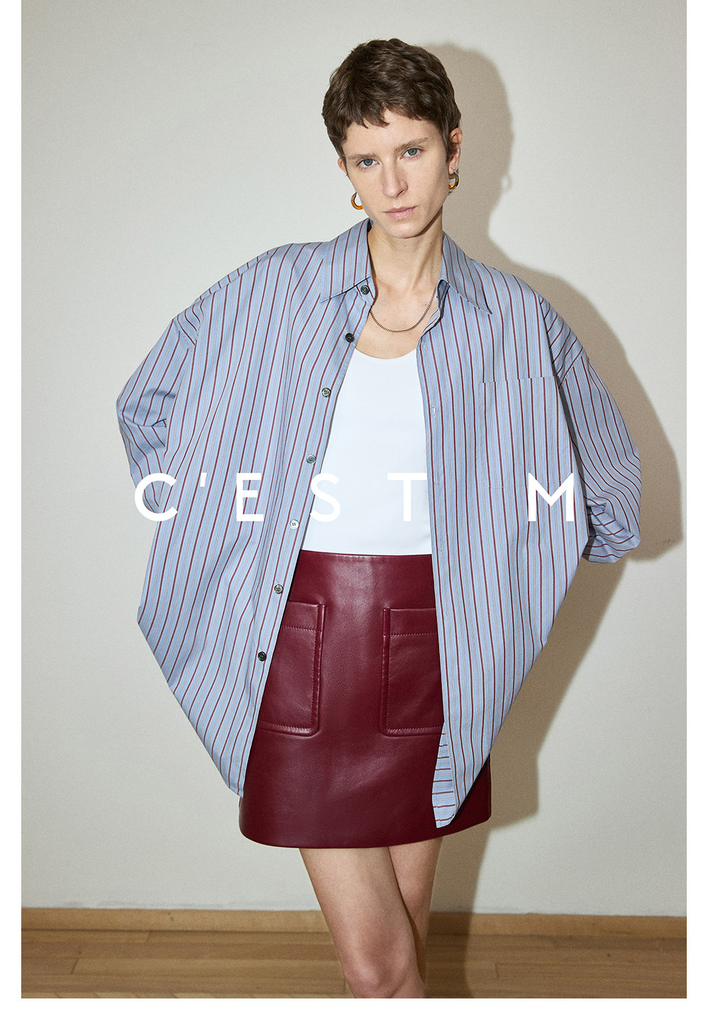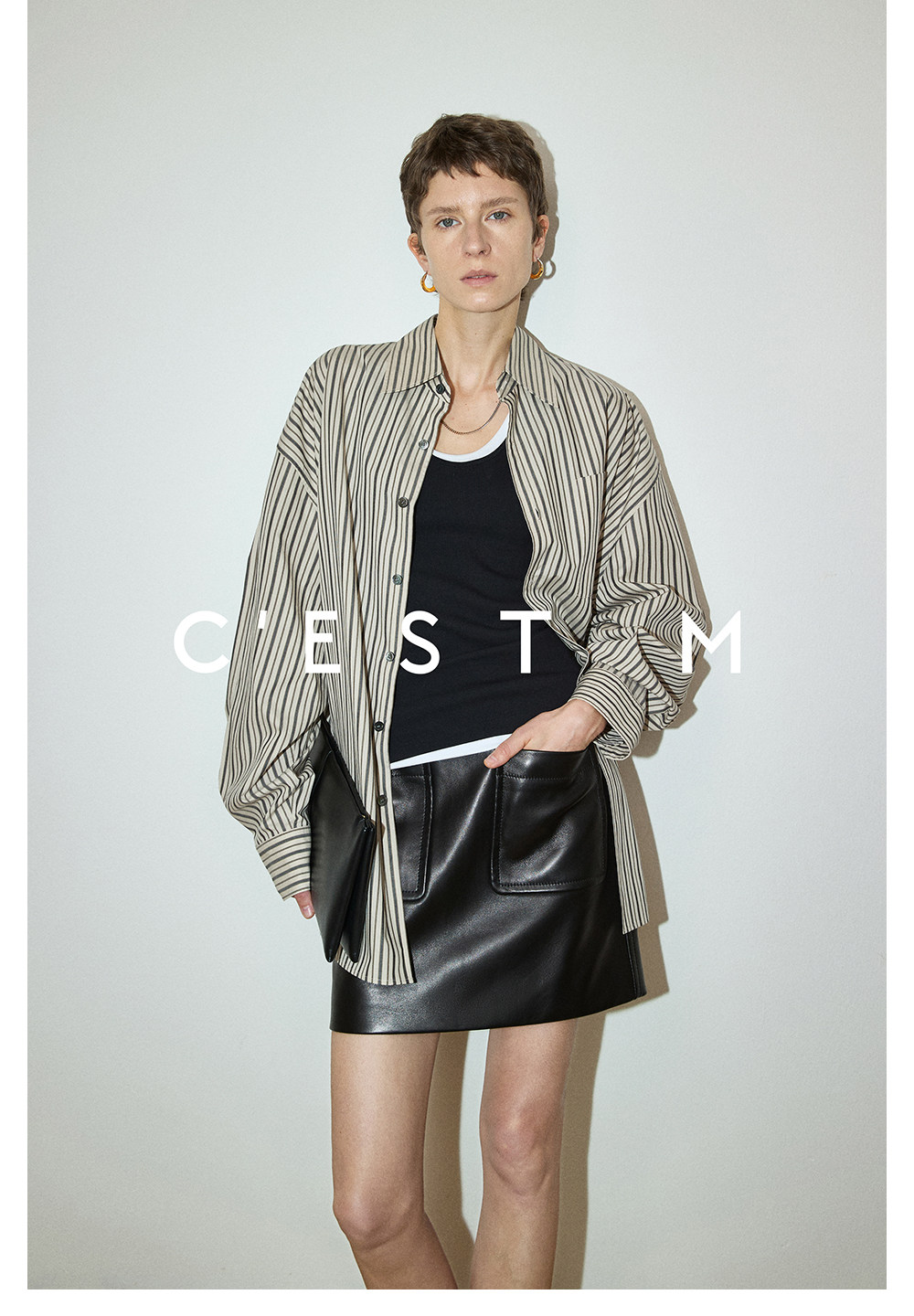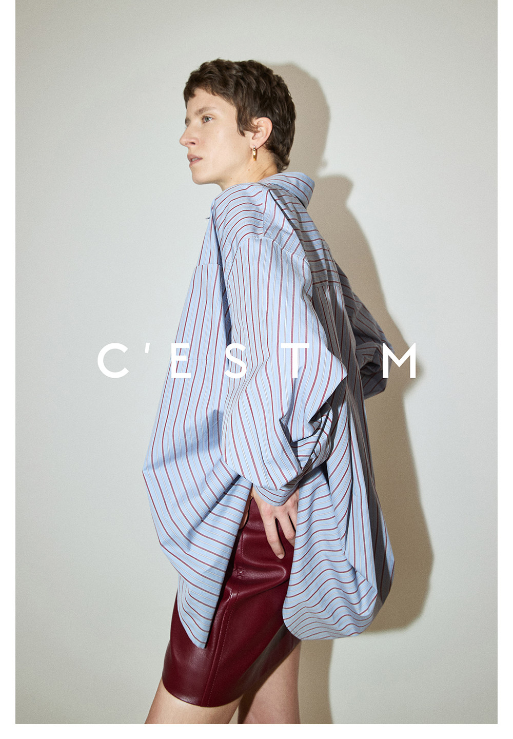 Cest m | Japanese Imported Long-Staple Cotton Vintage Color-Woven Striped Bf Boyfriend Style Oversize Silhouette Shirt