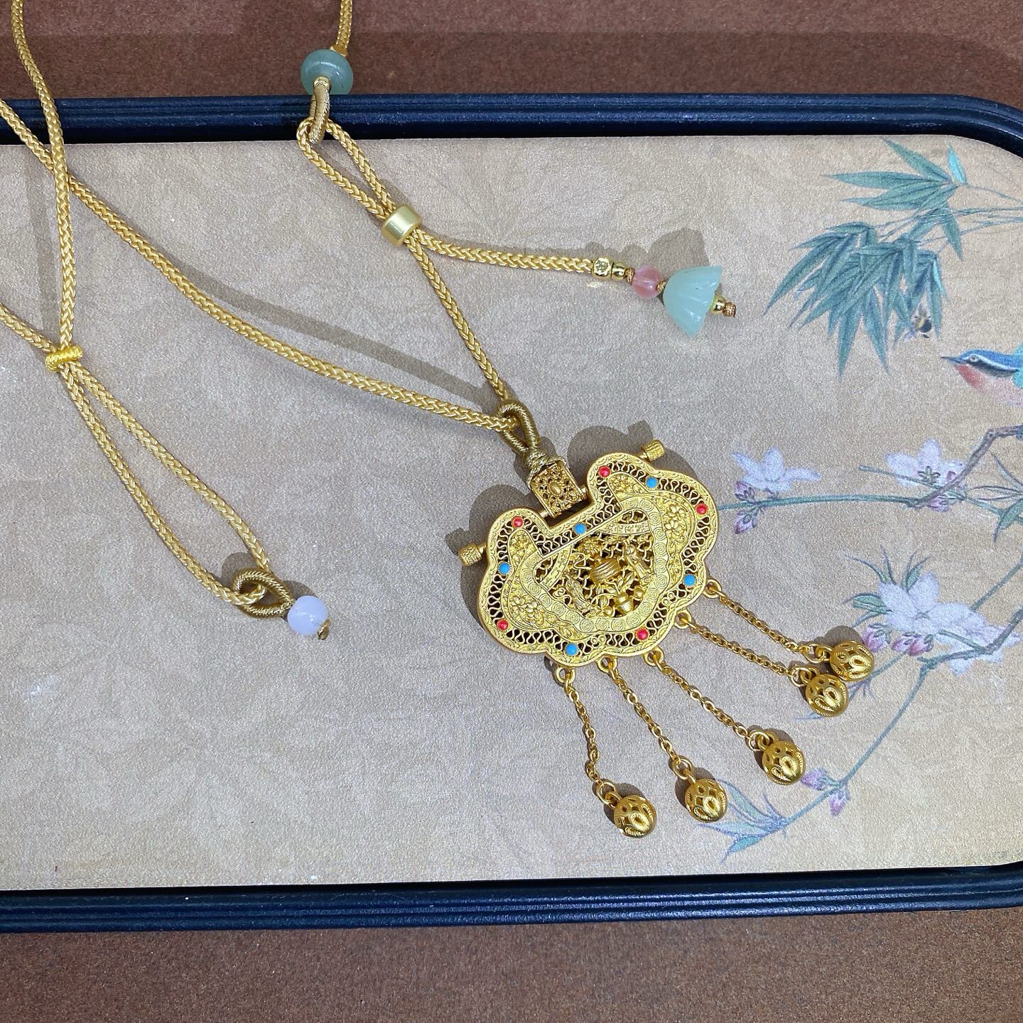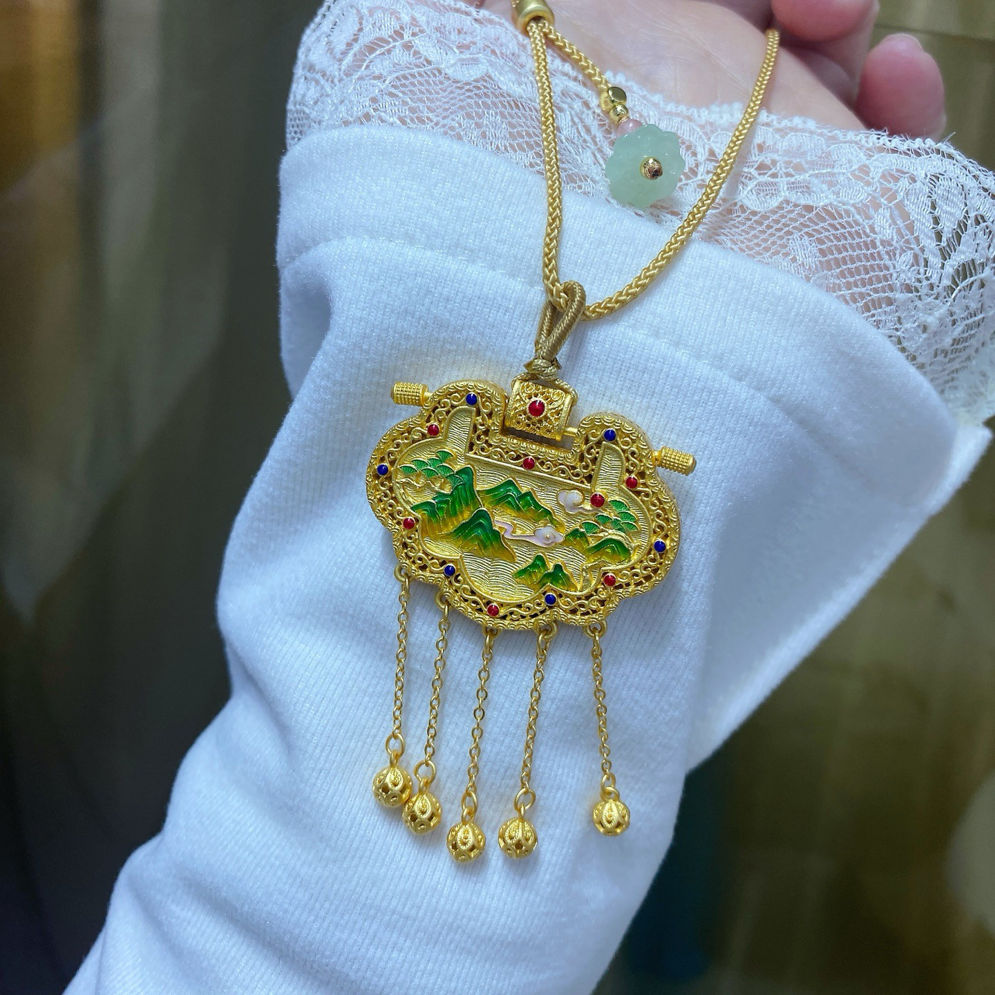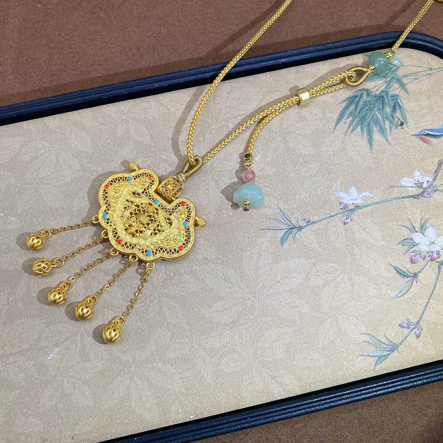 Tianzimen Sheng Silver Lock 9999 Pure Silver Ancient Method Lock Pendant for Women, Pure Silver Gold-Plated Hollow Filigree Inlaid Necklace