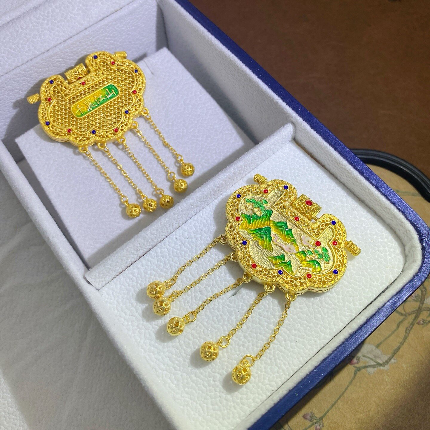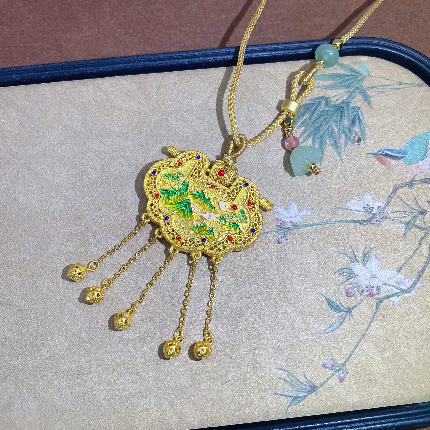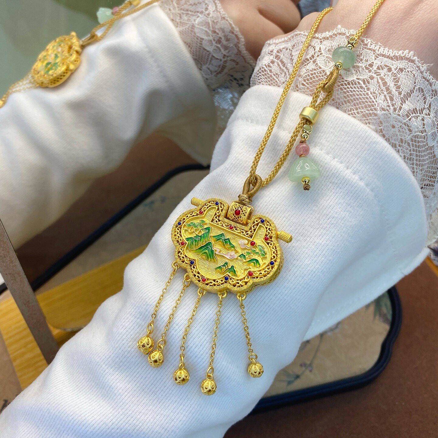 Tianzimen Sheng Silver Lock 9999 Pure Silver Ancient Method Lock Pendant for Women, Pure Silver Gold-Plated Hollow Filigree Inlaid Necklace