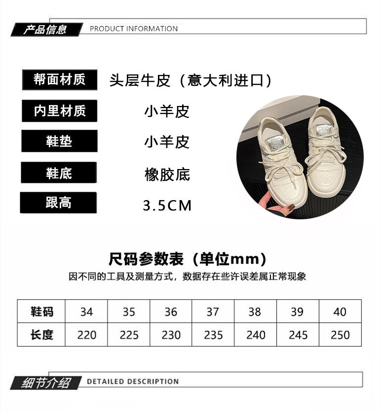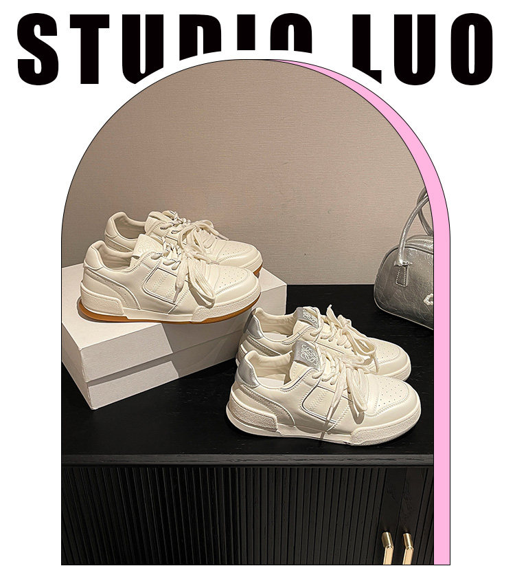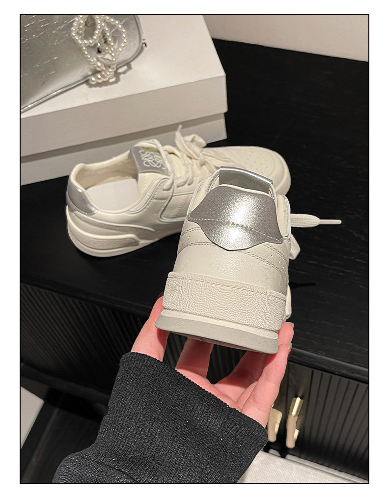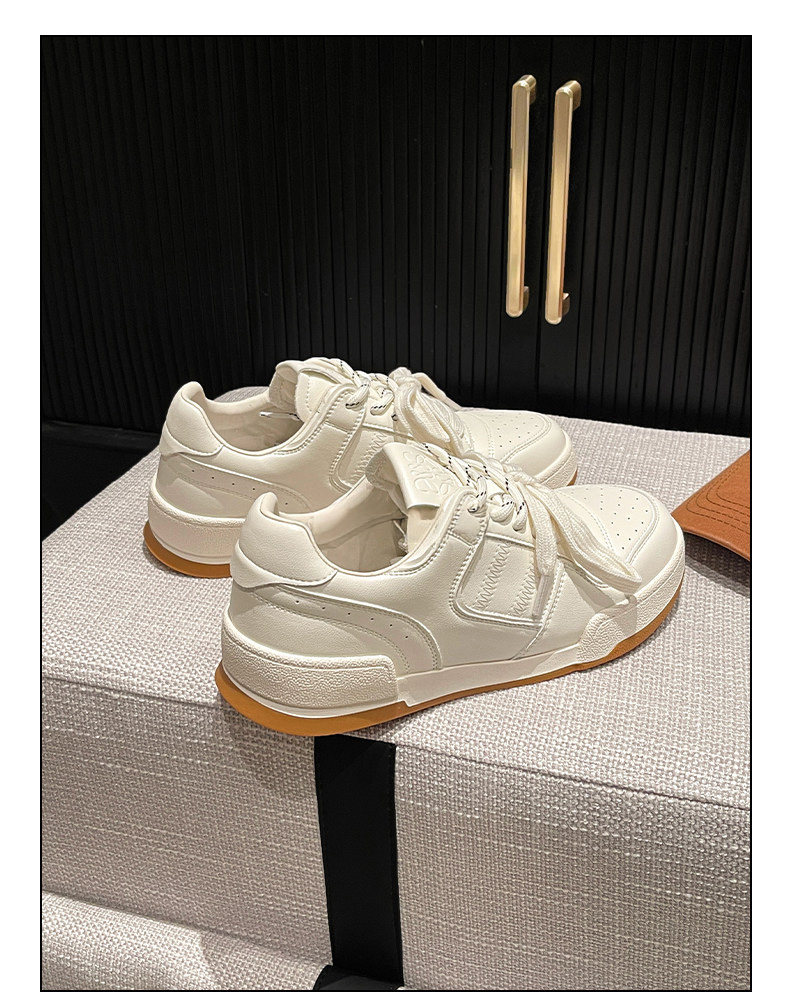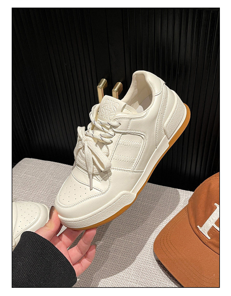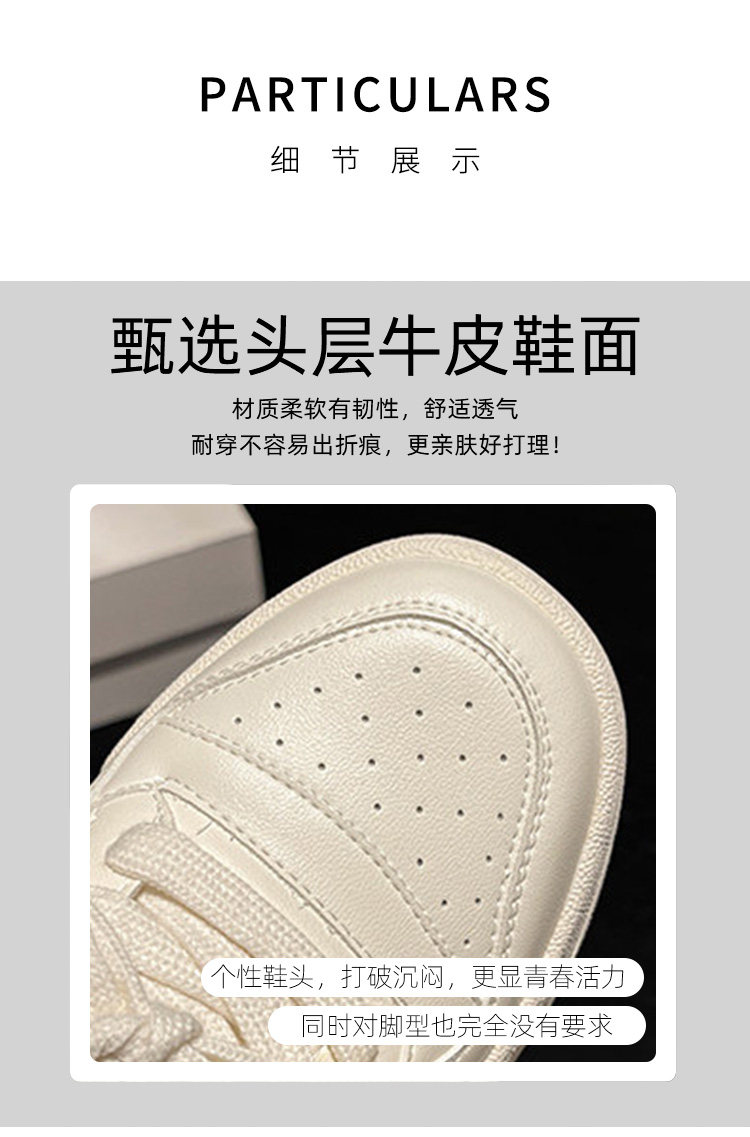 Hong Kong Genuine Leather Thick-Soled White Sneakers for Women 2026 Spring New Lace-Up Casual Sports Shoes Student Round-Toe Board Shoes