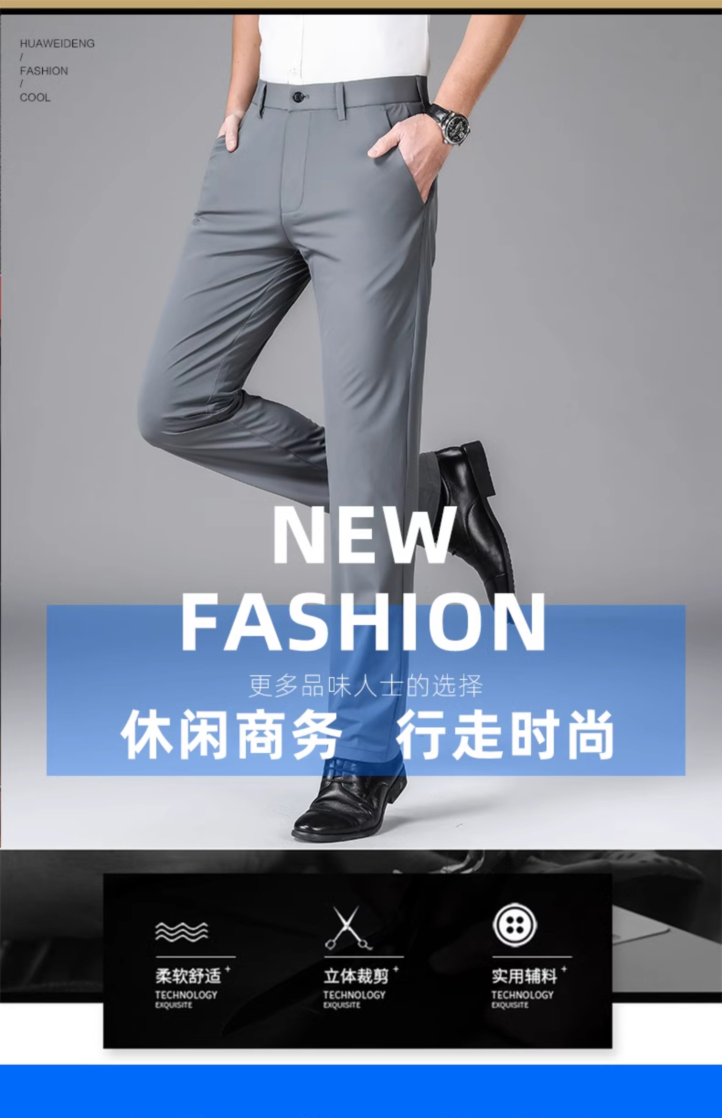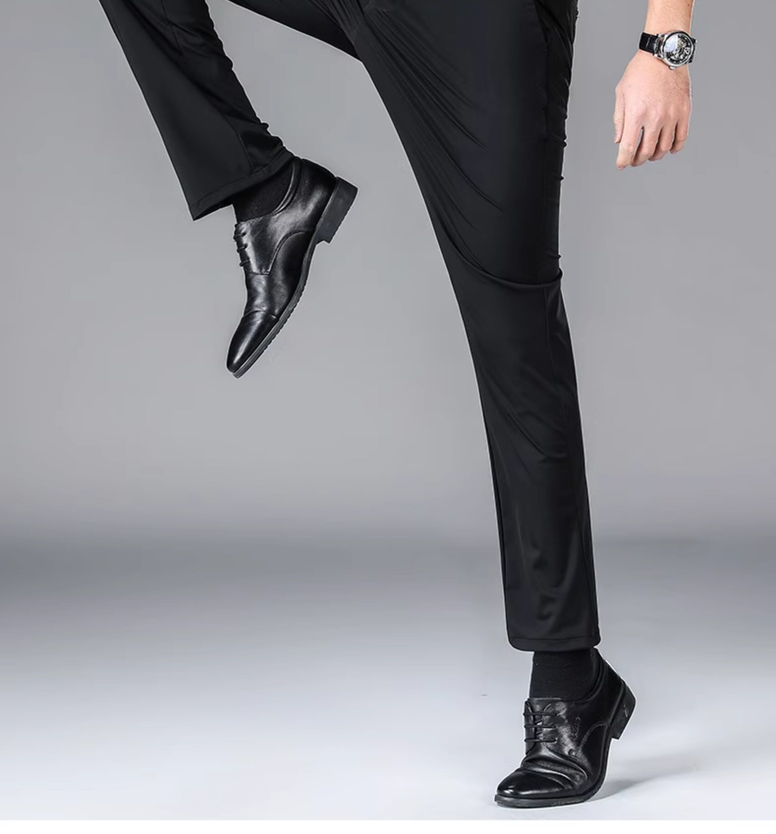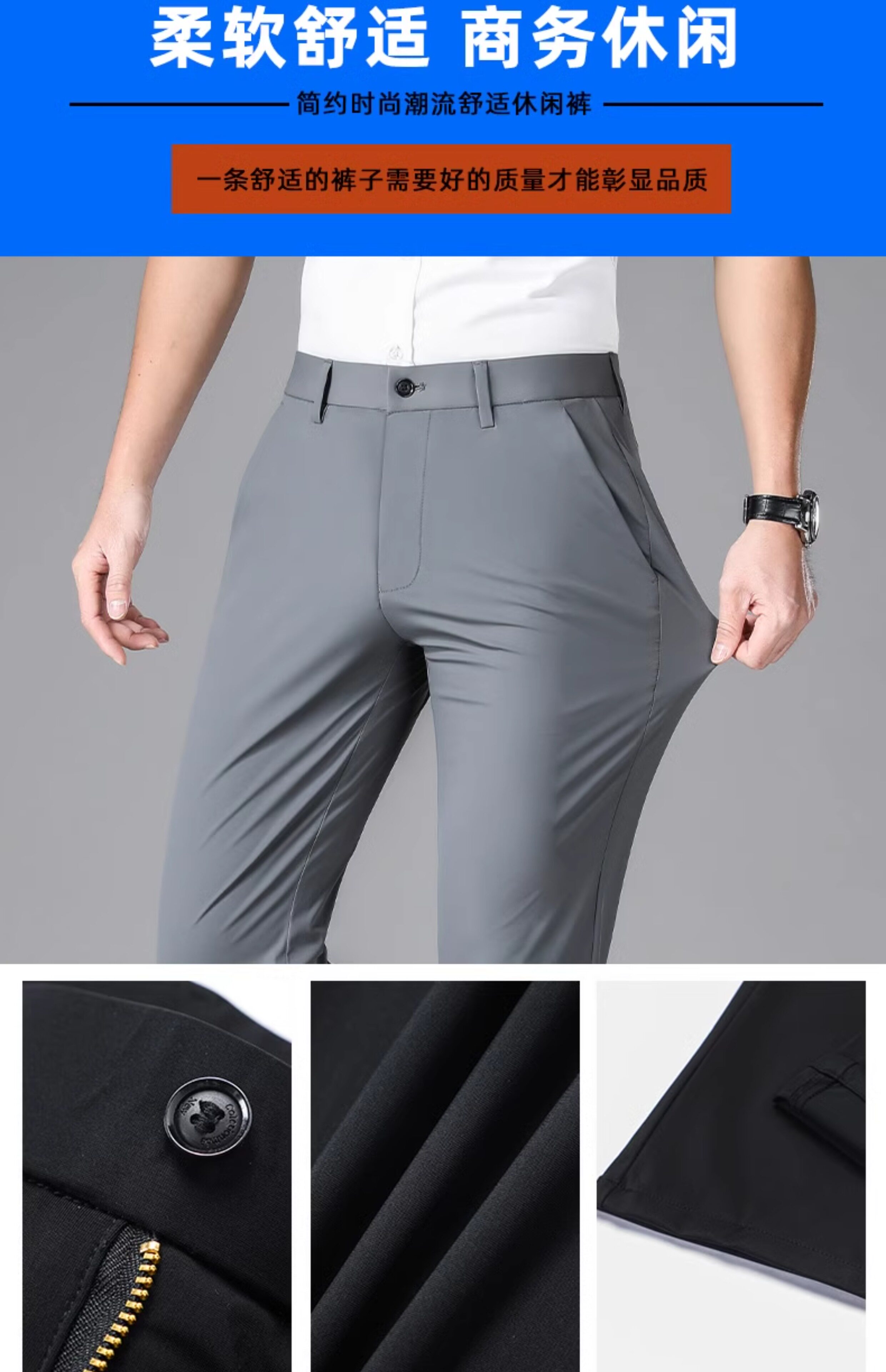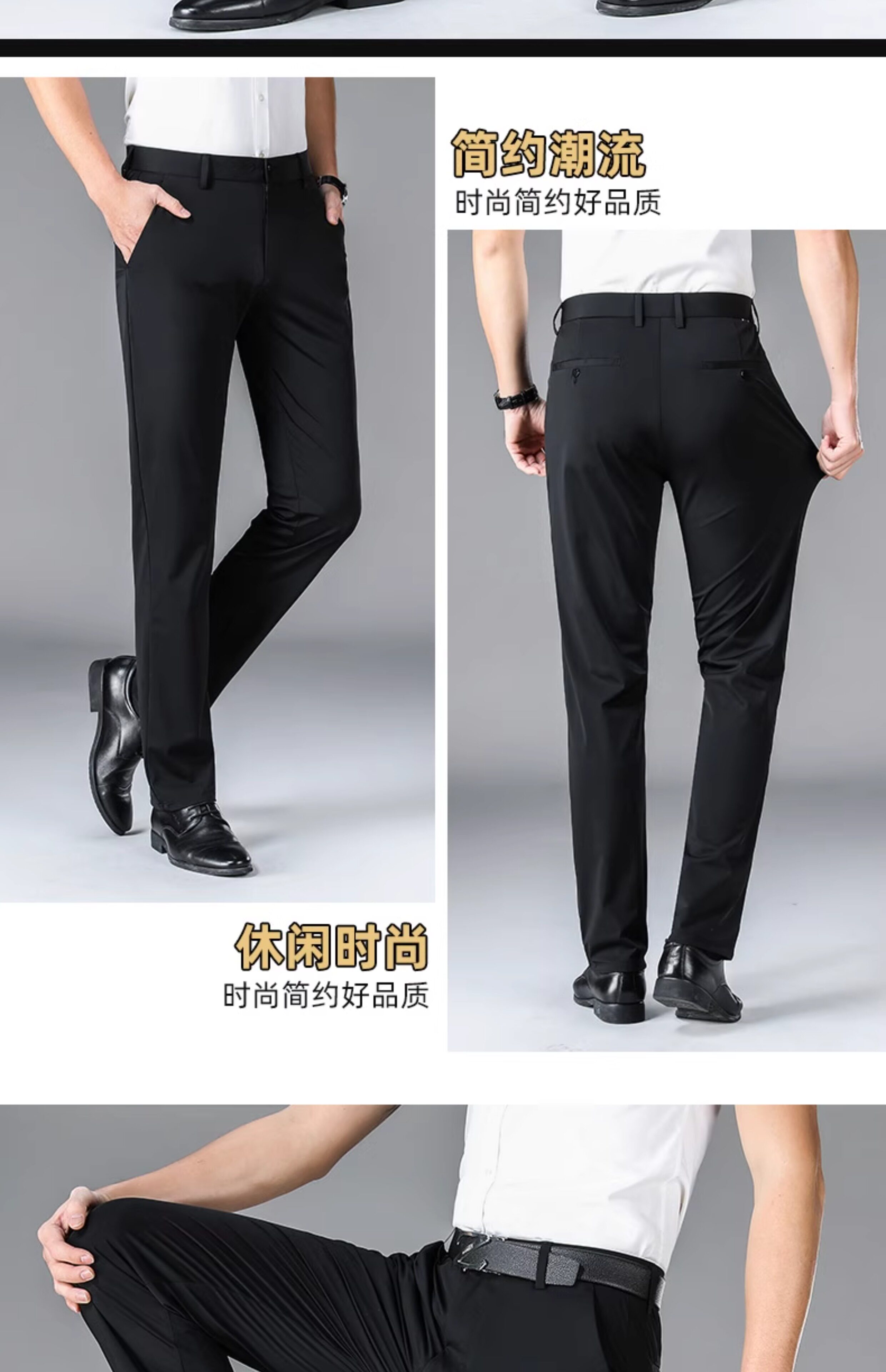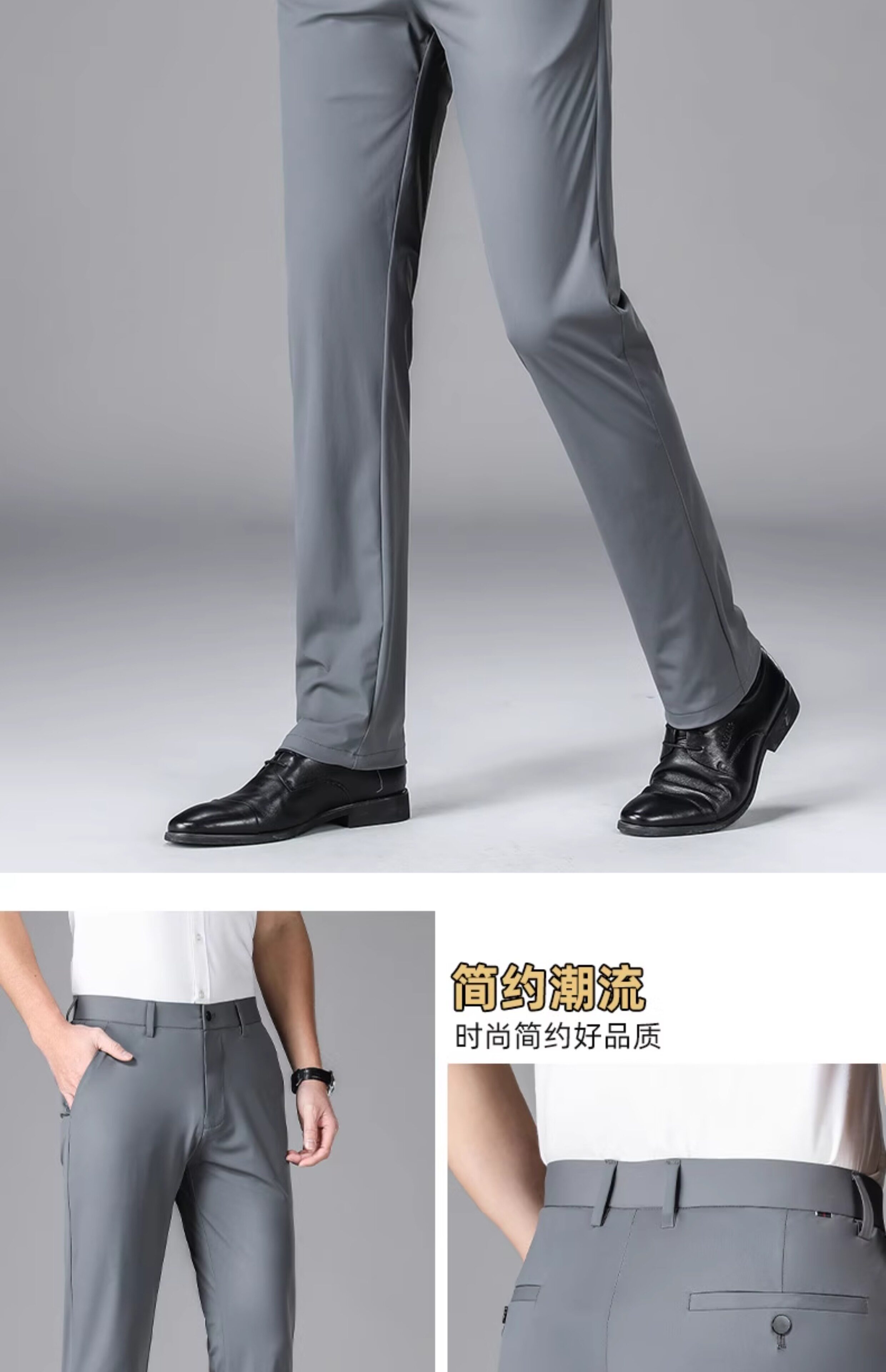 Romon Men's Dress Pants Summer Autumn Milk Silk Summer Solid Color Ice Silk Quick-Drying Thin Elastic Long Pants Casual Pants