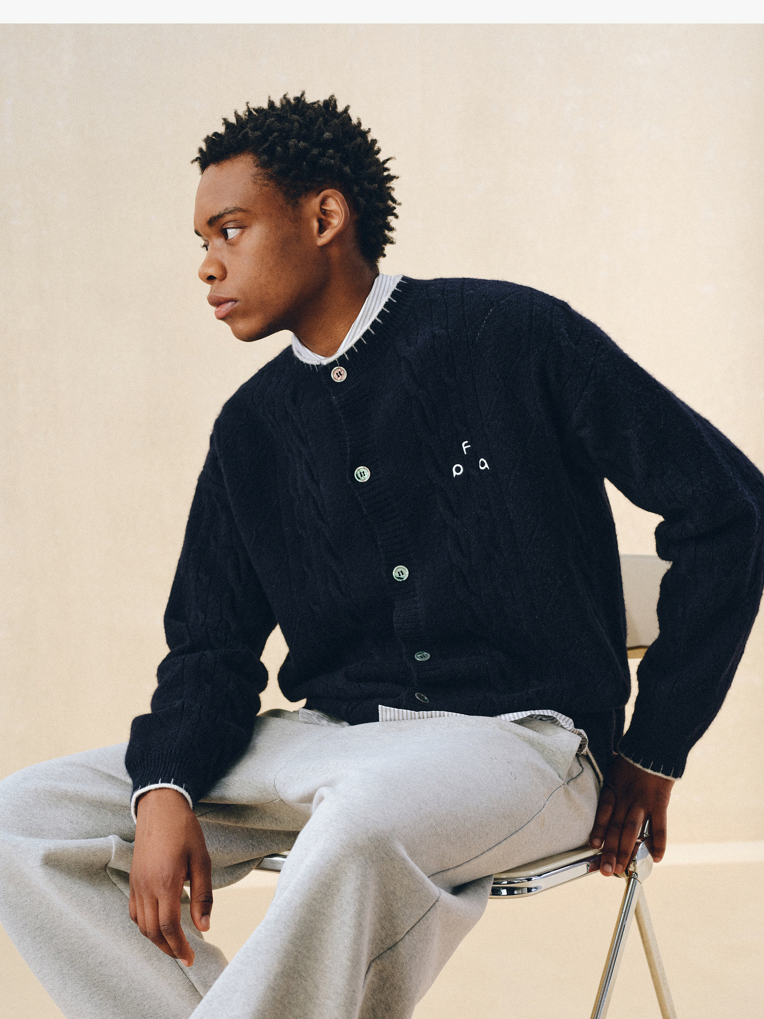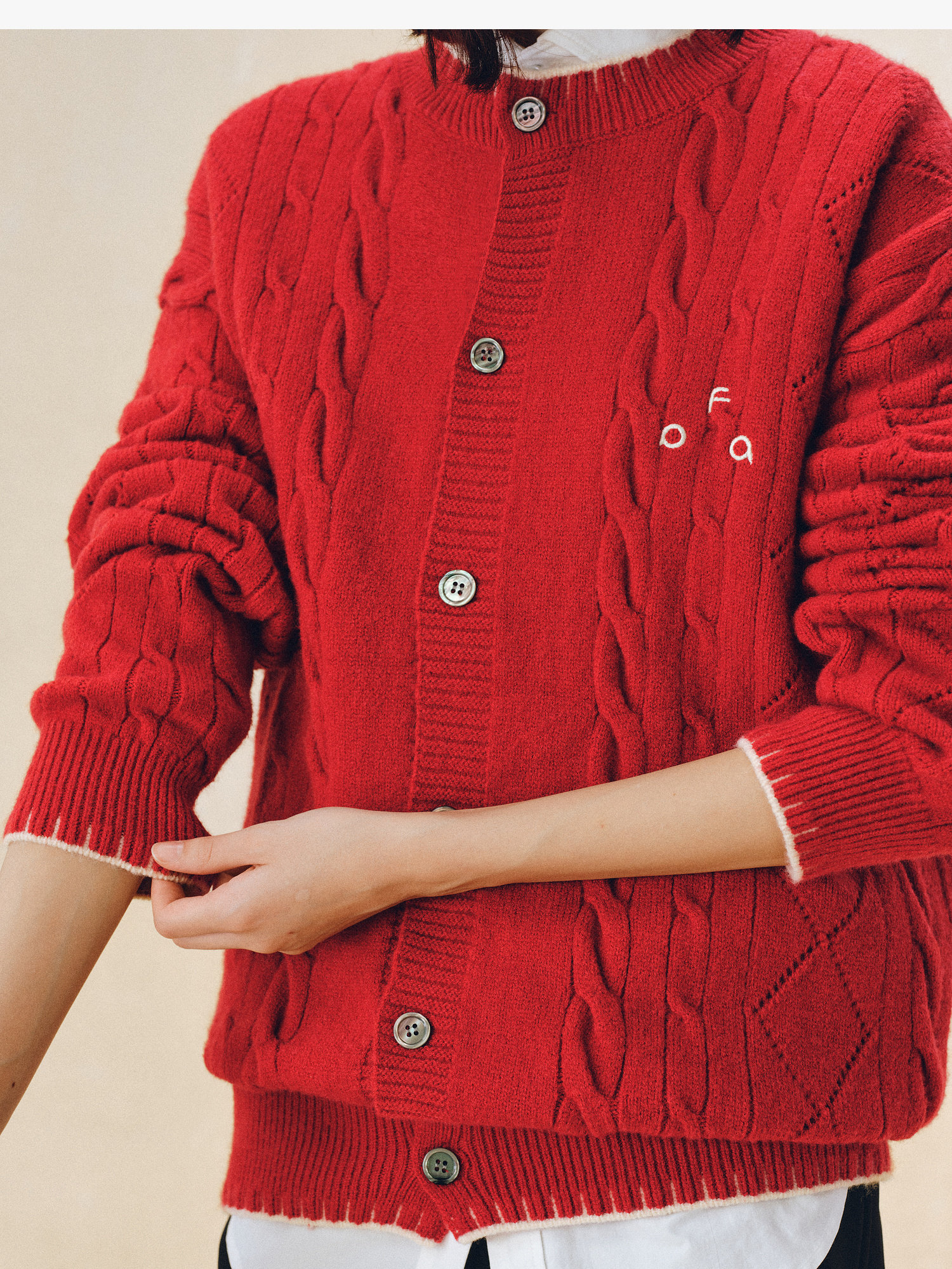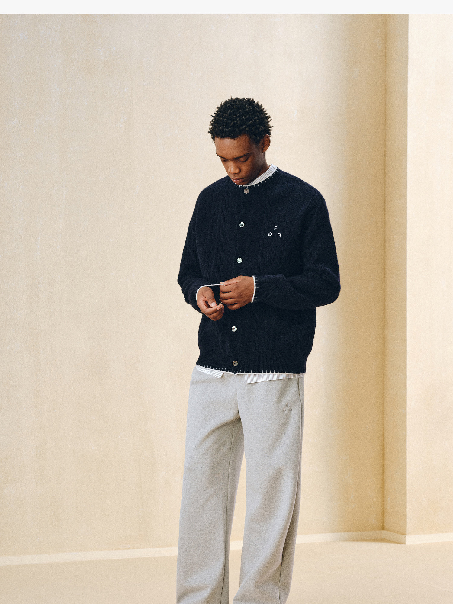 Fpa Cable Knit Color-Block Cardigan Sweater 2025 New Retro High-End Design Sports Couple Autumn Knitwear