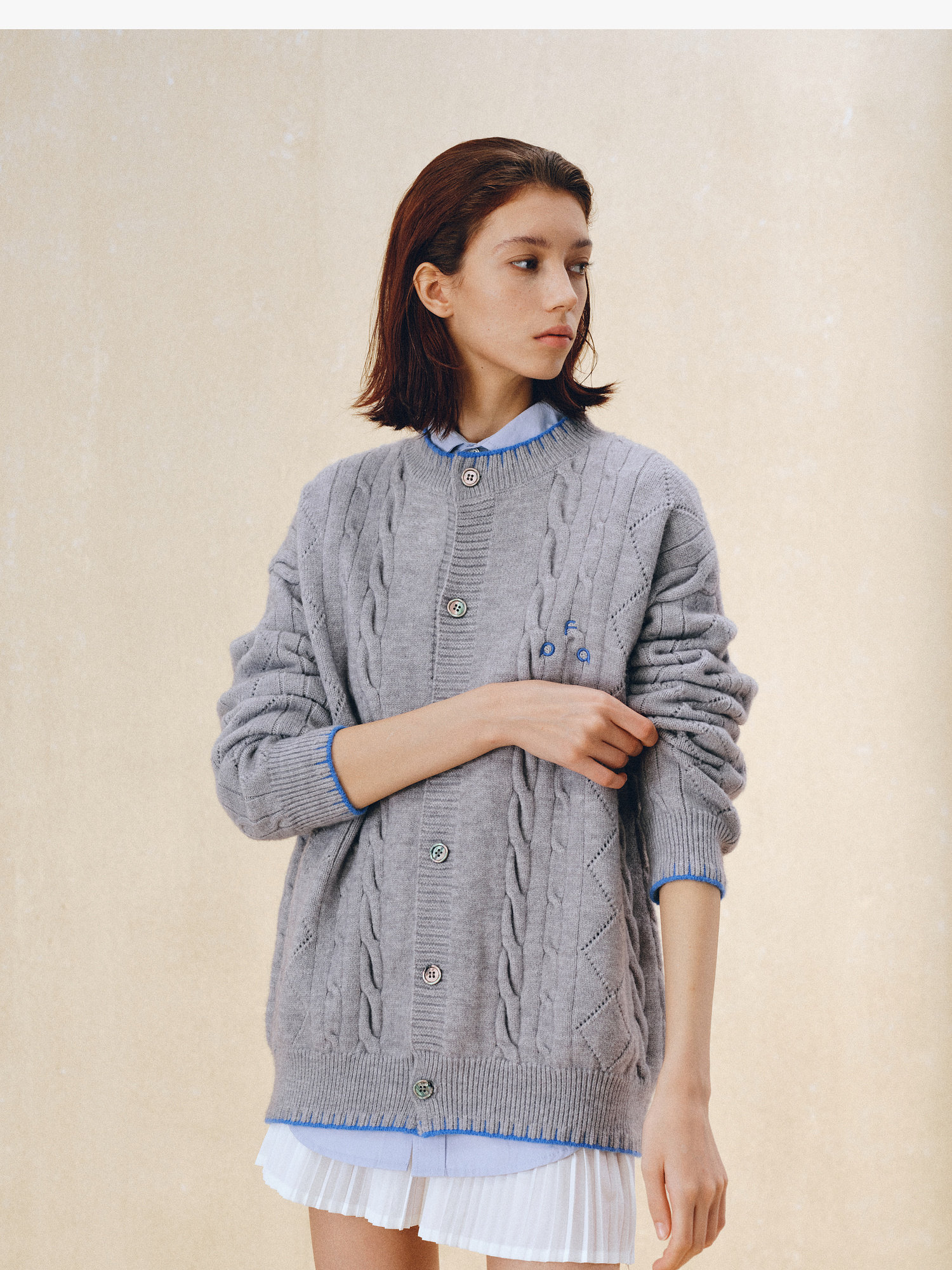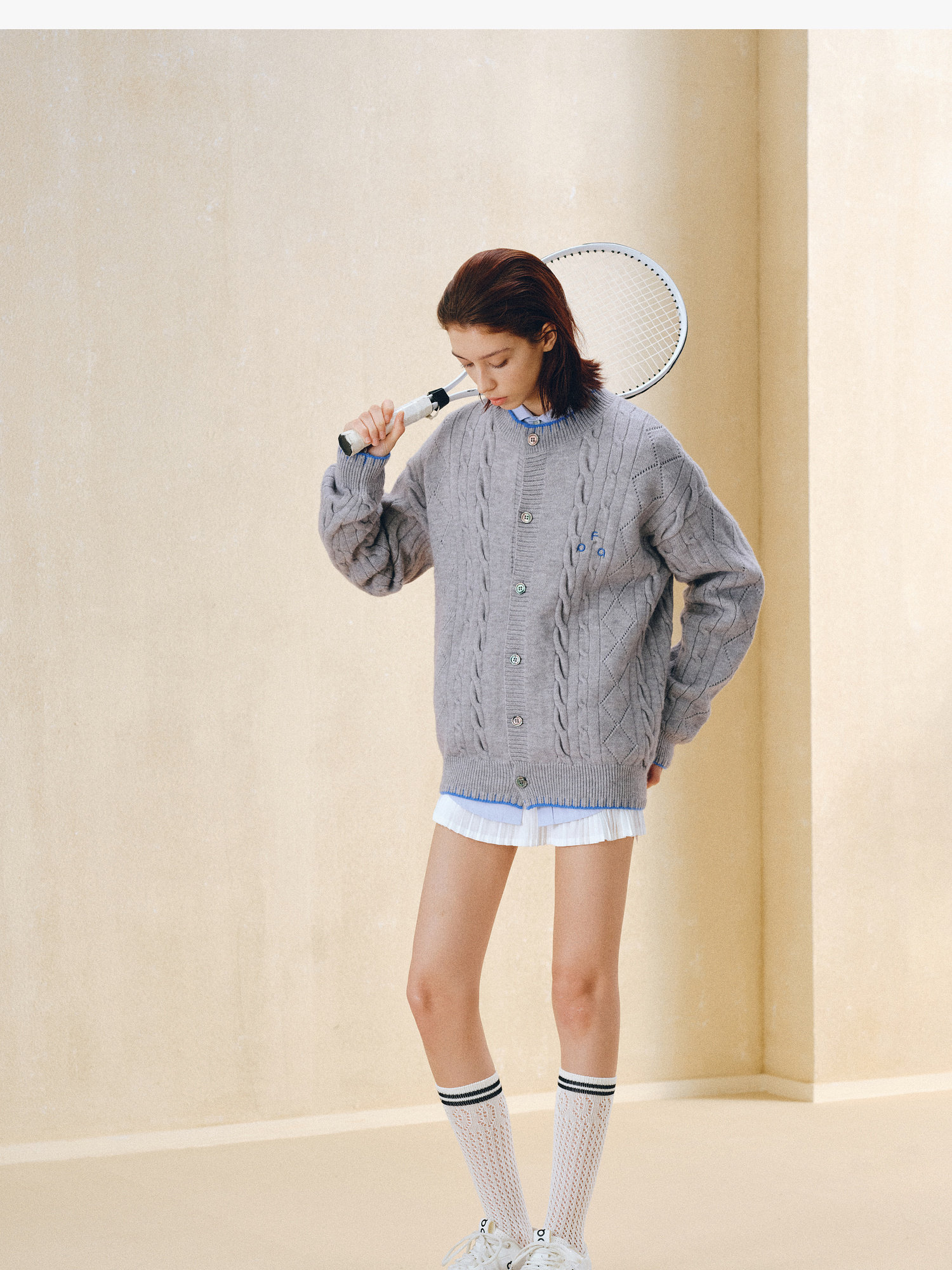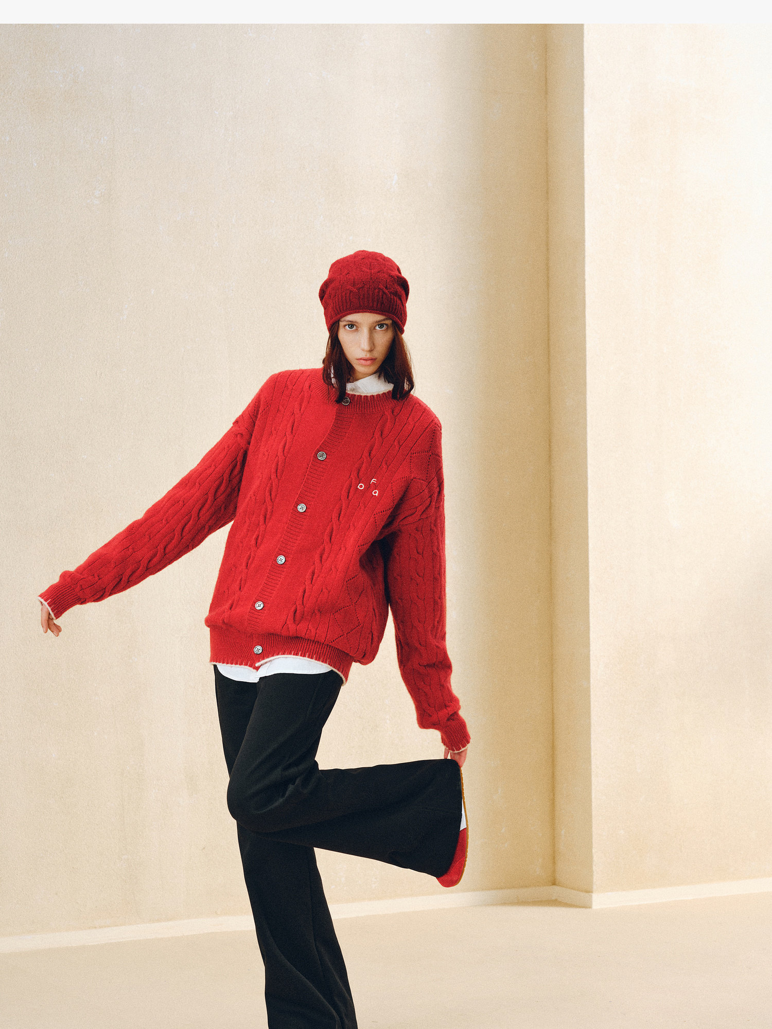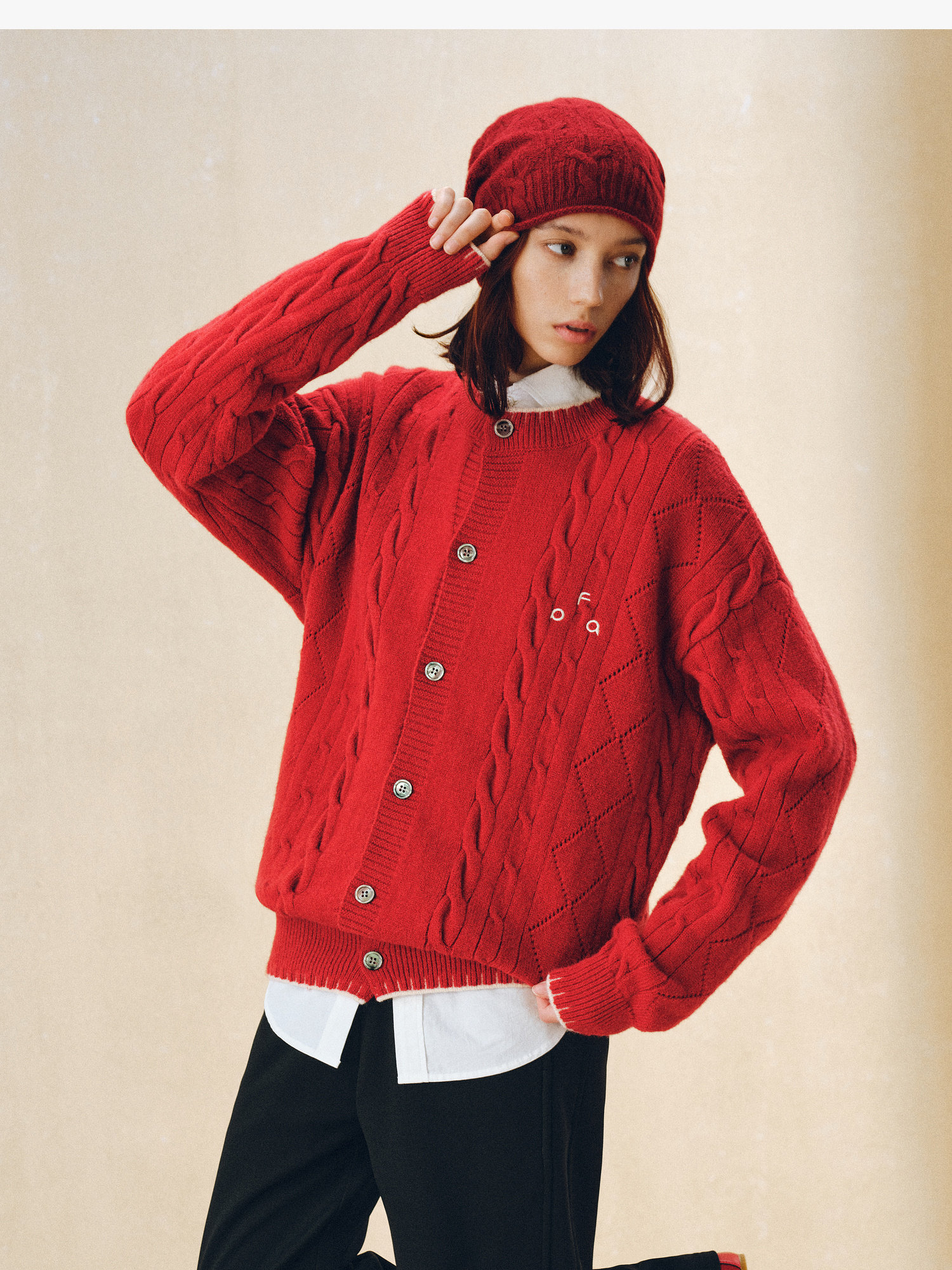 Fpa Cable Knit Color-Block Cardigan Sweater 2025 New Retro High-End Design Sports Couple Autumn Knitwear