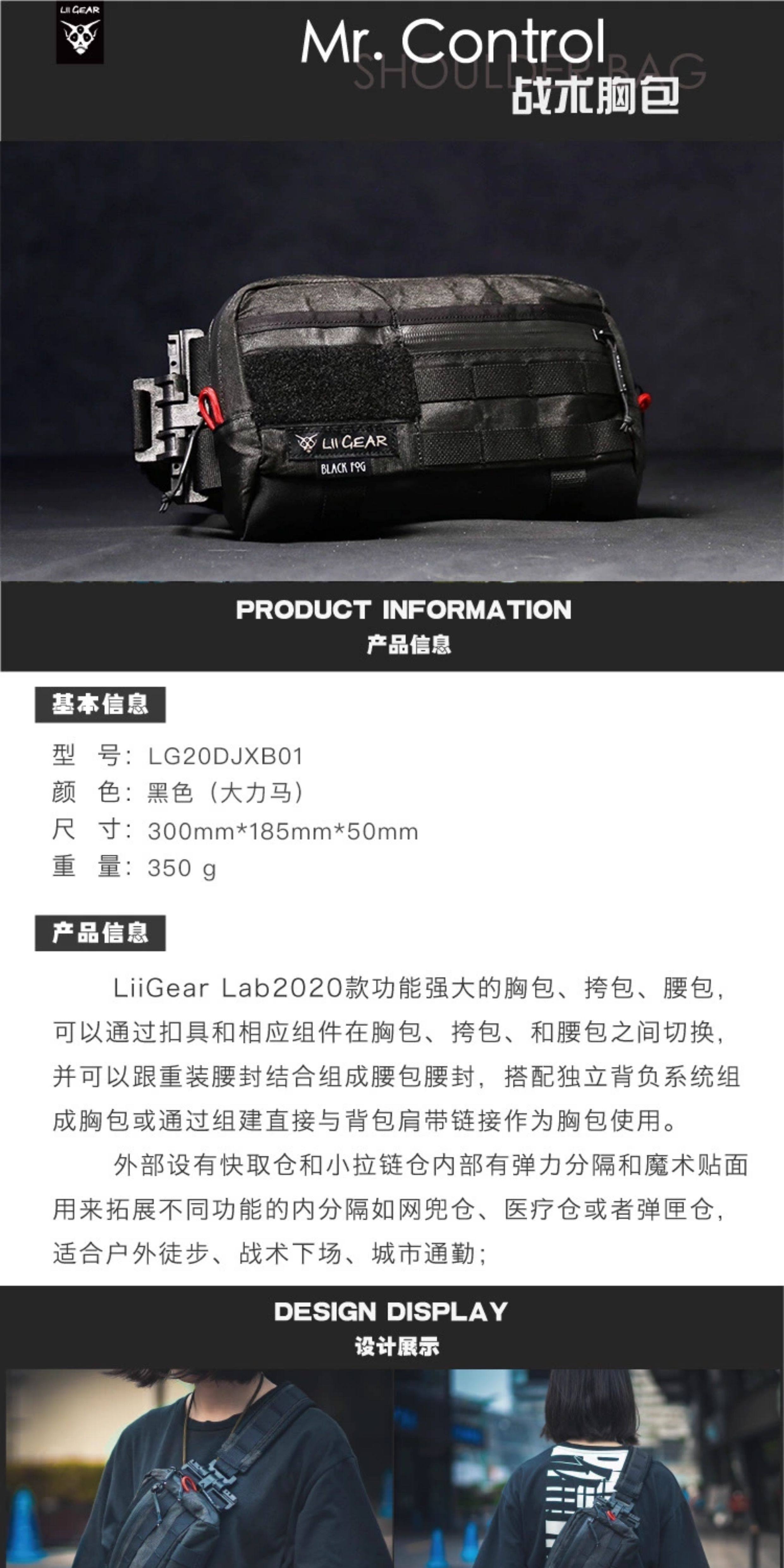 【Liigear Official】Black Dali Ma Mrcontrol Casual Single Shoulder Chest Bag Crossbody Lure Waist Bag Backpack