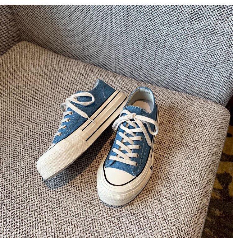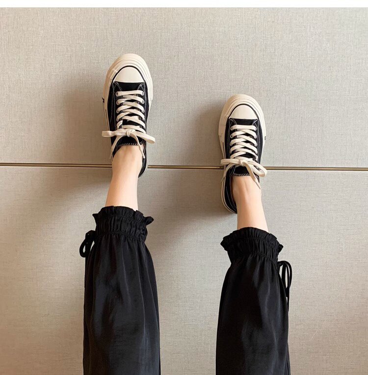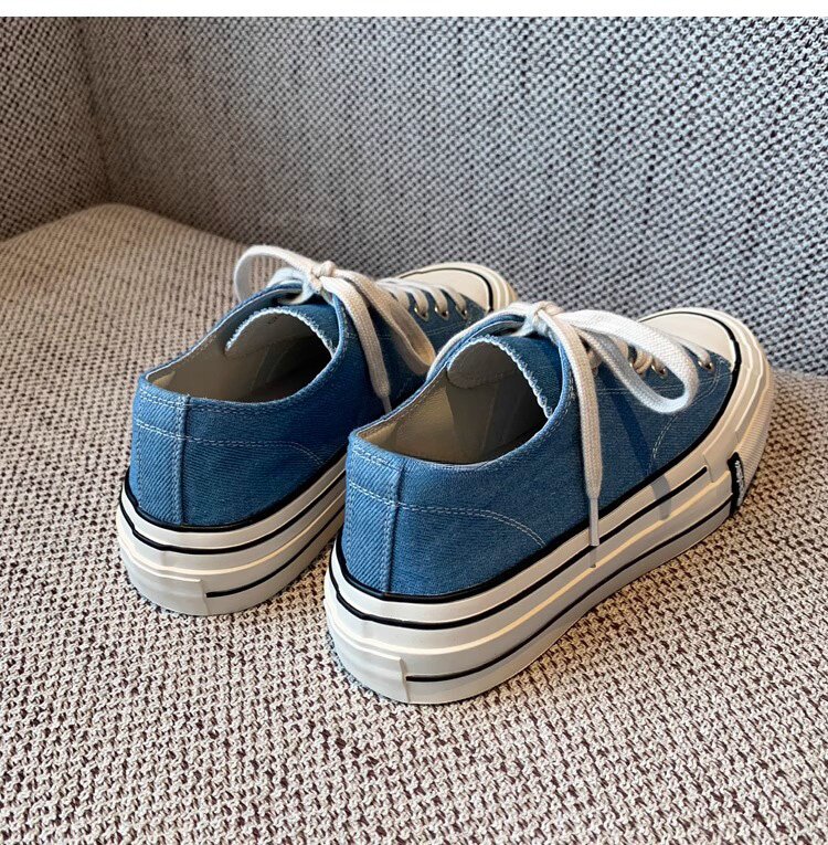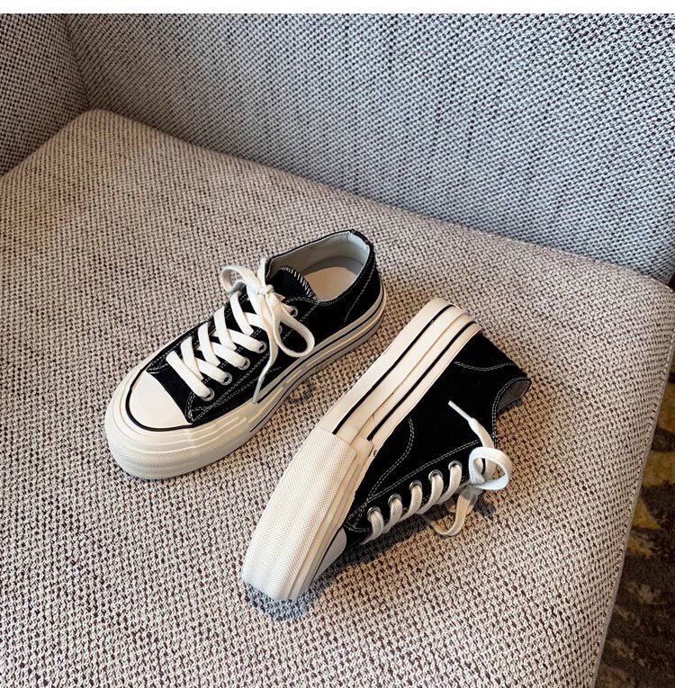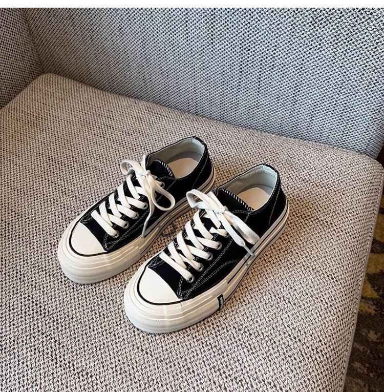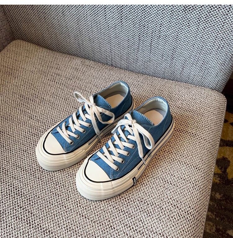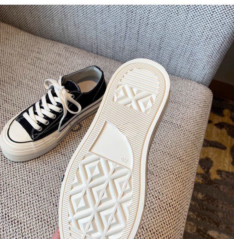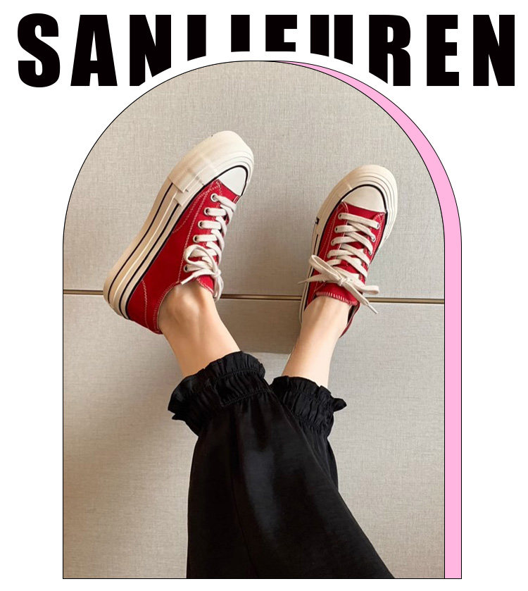 Sanli Round-Toe Thick-Soled Low-Top Canvas Shoes for Women 2026 Spring and Autumn New Retro Versatile Fashion Lace-Up Casual Sneakers