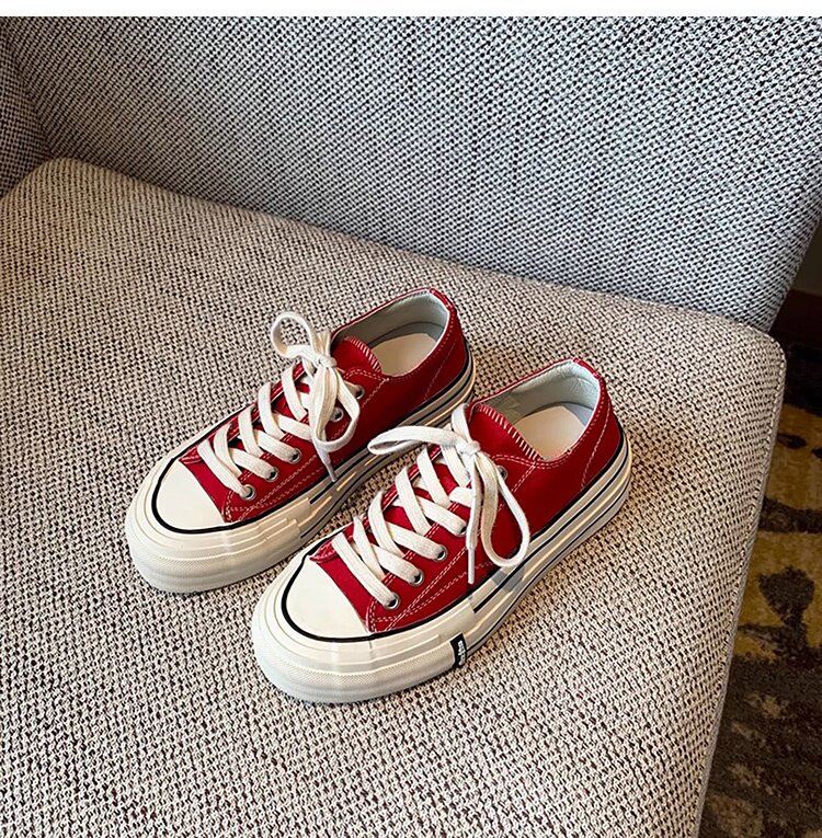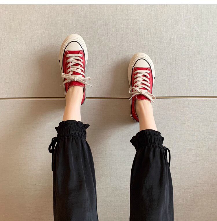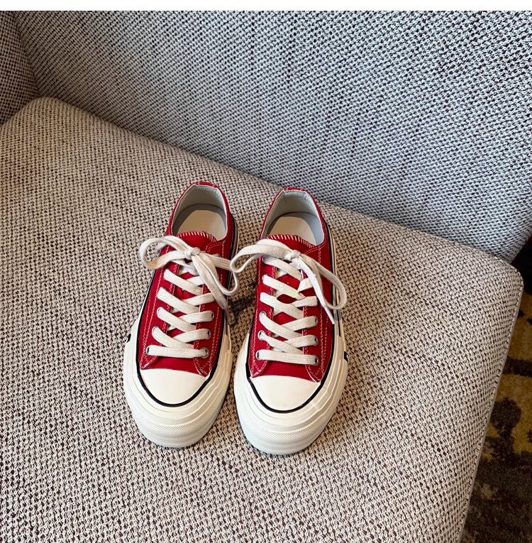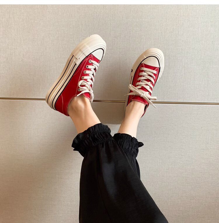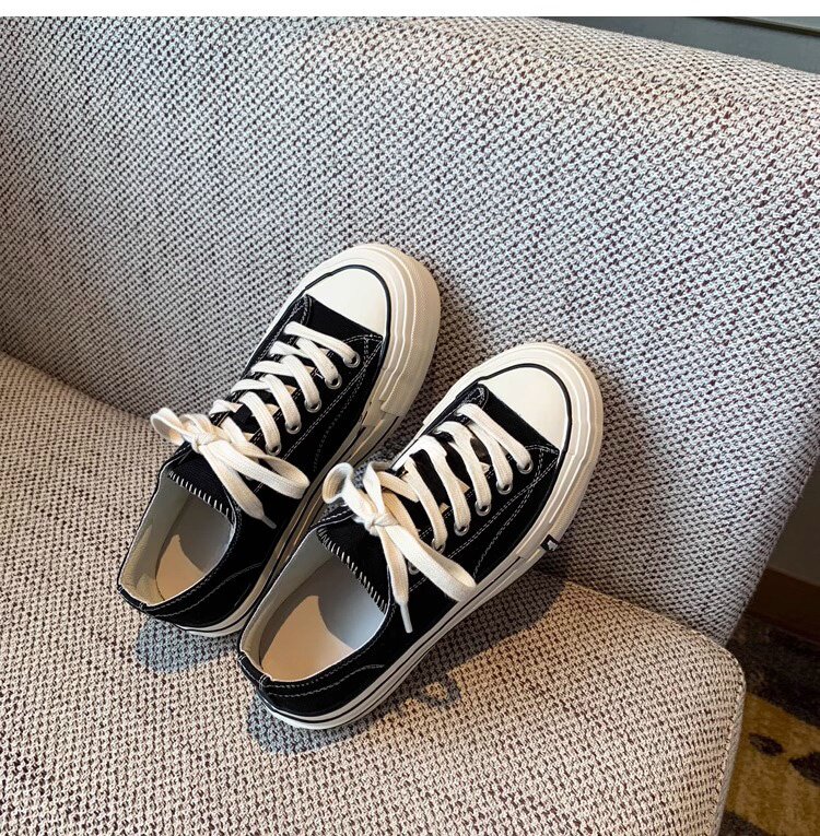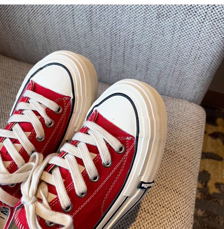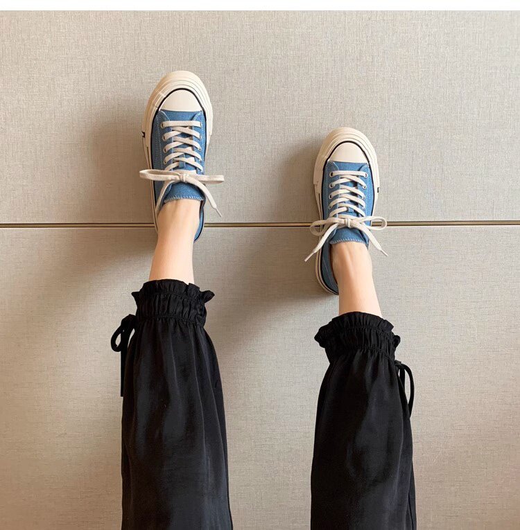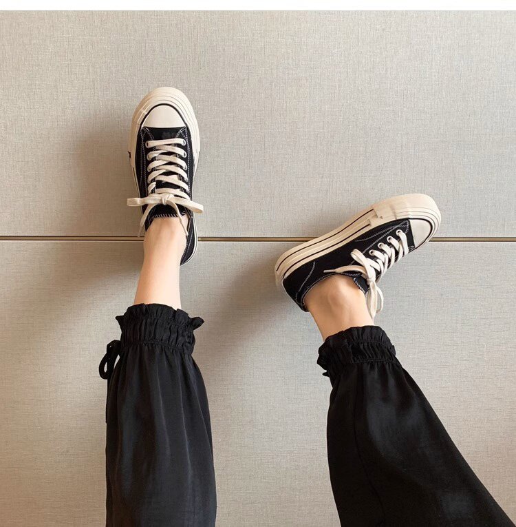 Sanli Round-Toe Thick-Soled Low-Top Canvas Shoes for Women 2026 Spring and Autumn New Retro Versatile Fashion Lace-Up Casual Sneakers