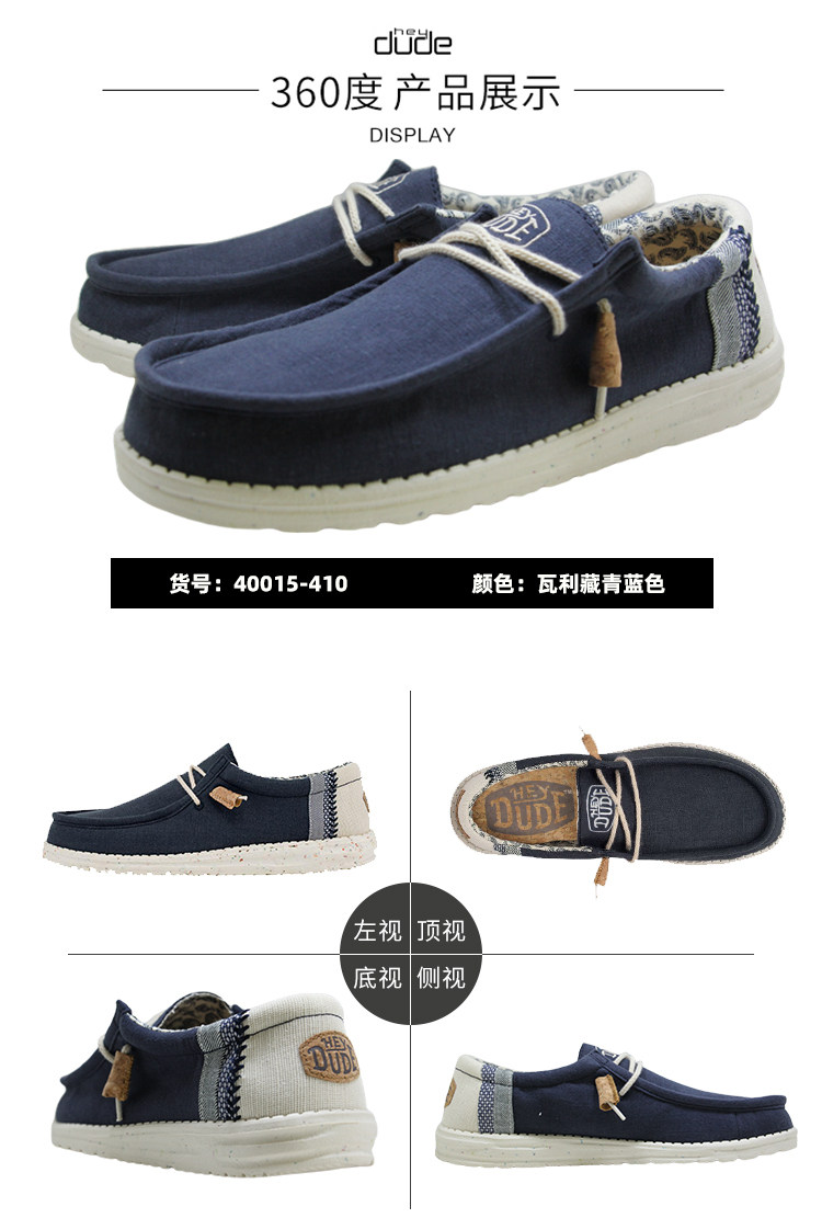 Hey Dude Men's Shoes, Washed Canvas, Low-Top, Versatile, Lace-Up, Breathable, Ultra-Light, Soft-Soled, Solid Color Casual Shoes