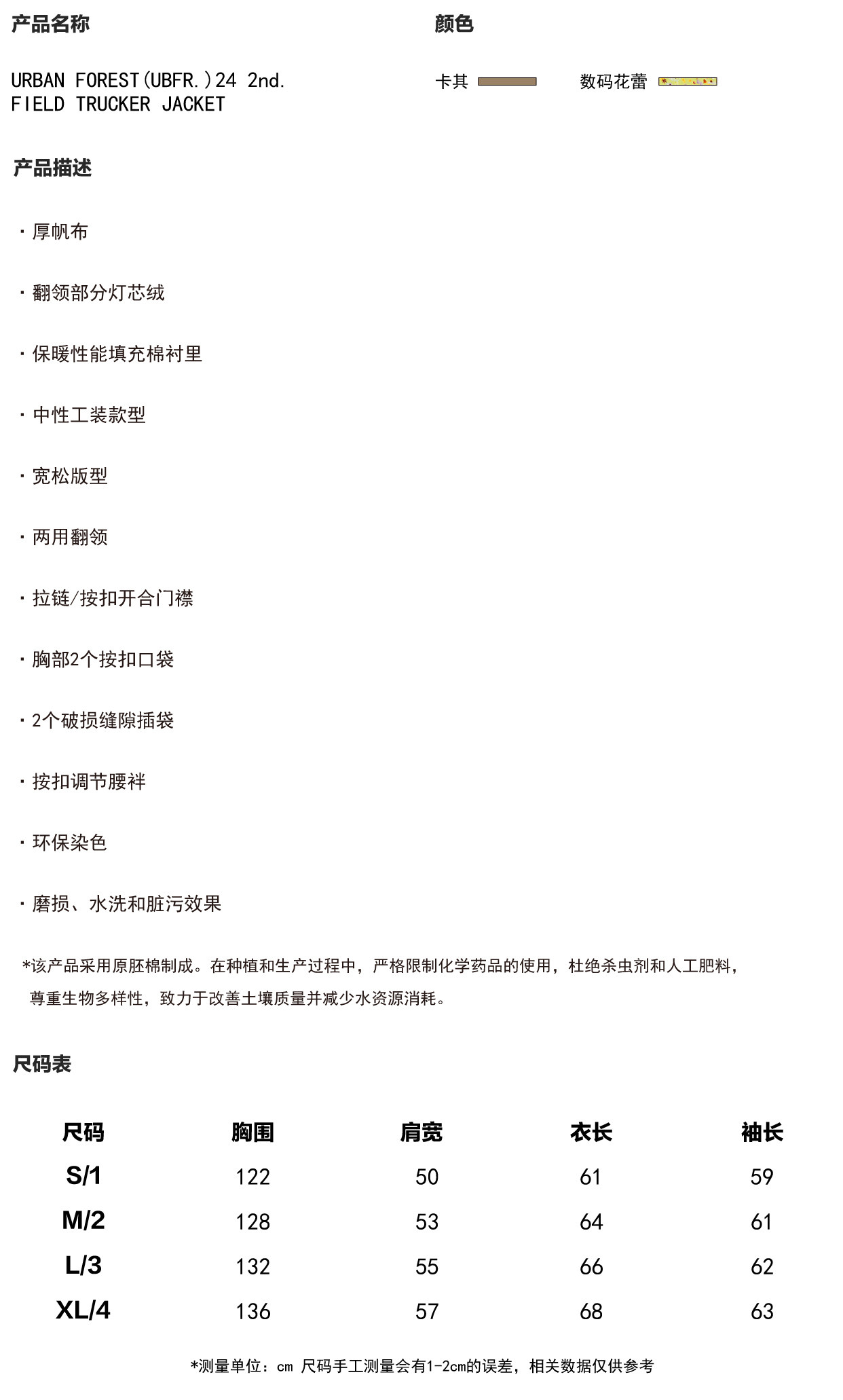 Urban Forest Warm Cotton Farm Truck Jacket Field Trucker Jacket