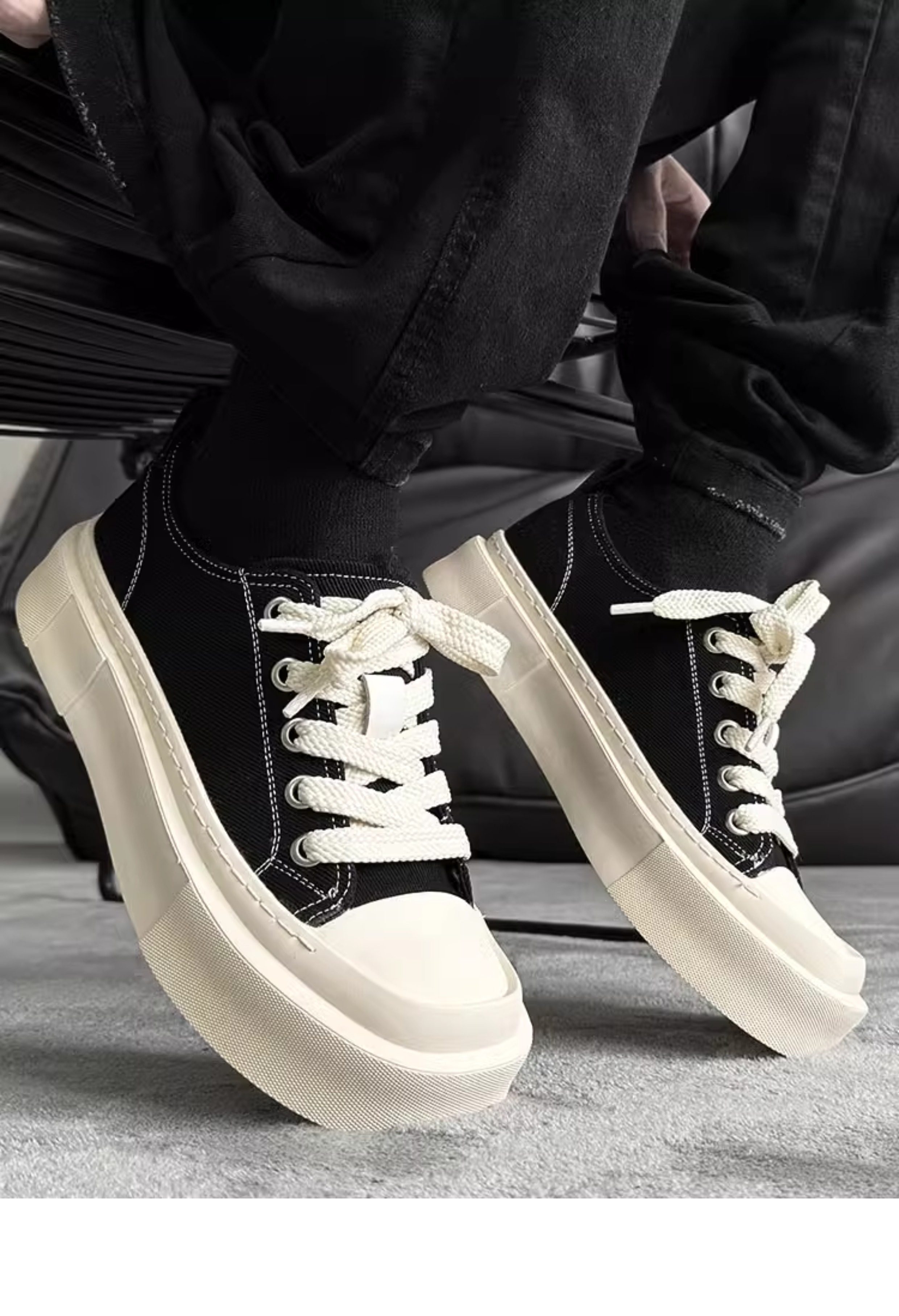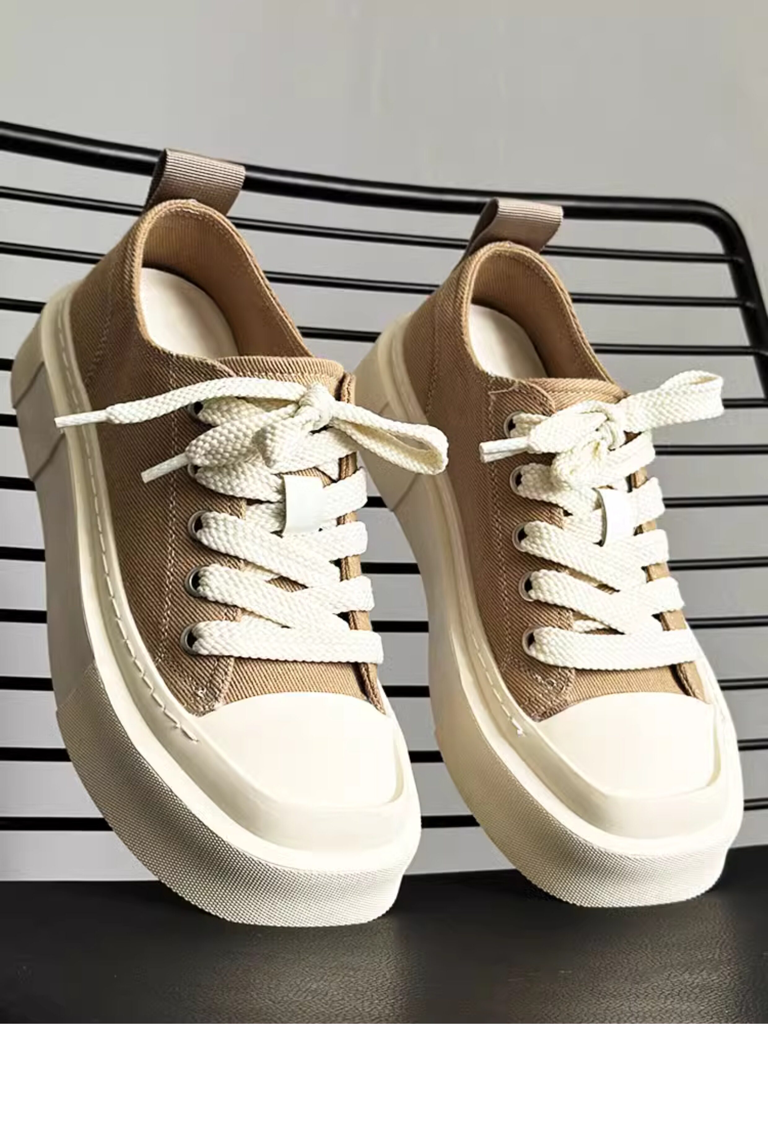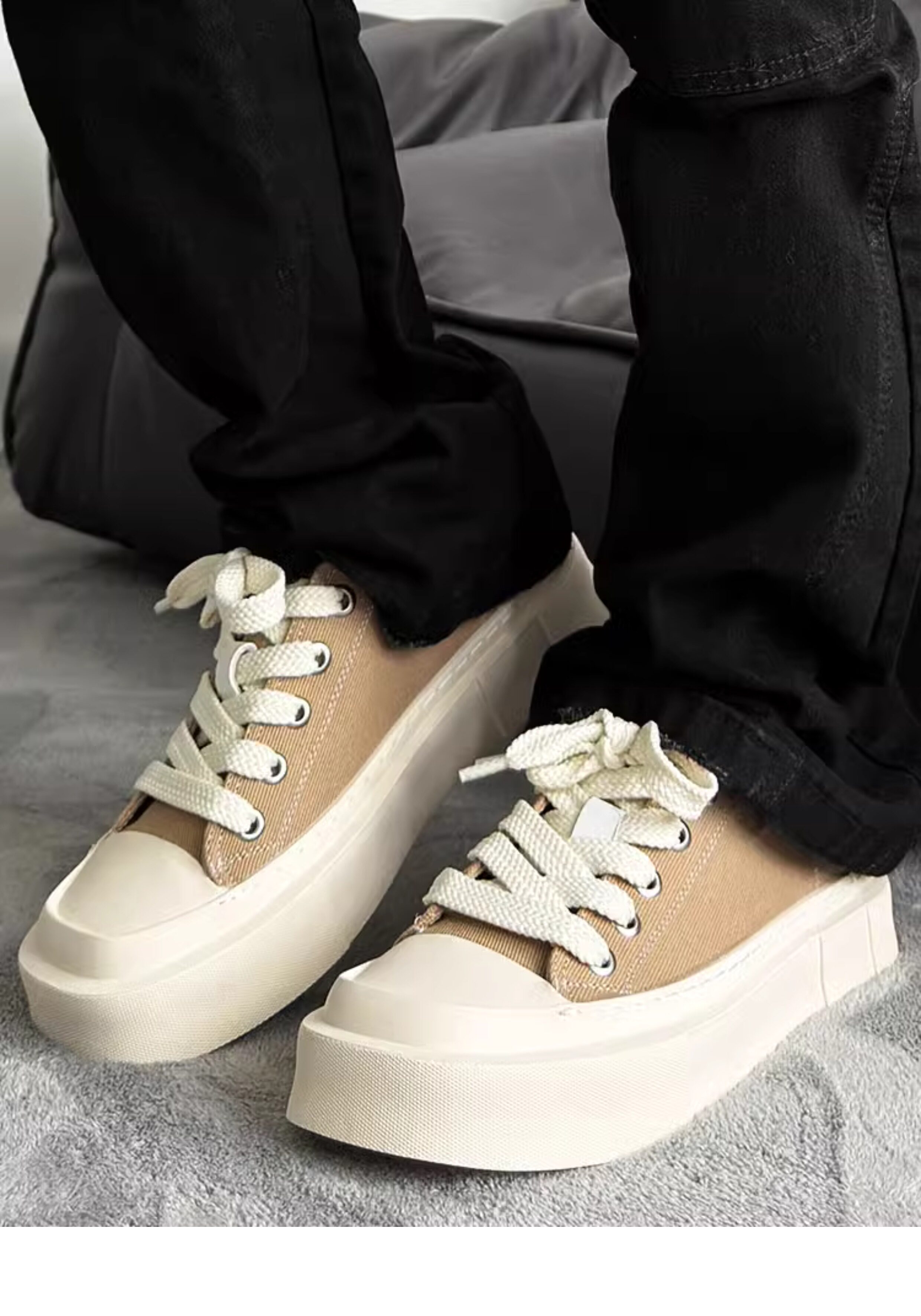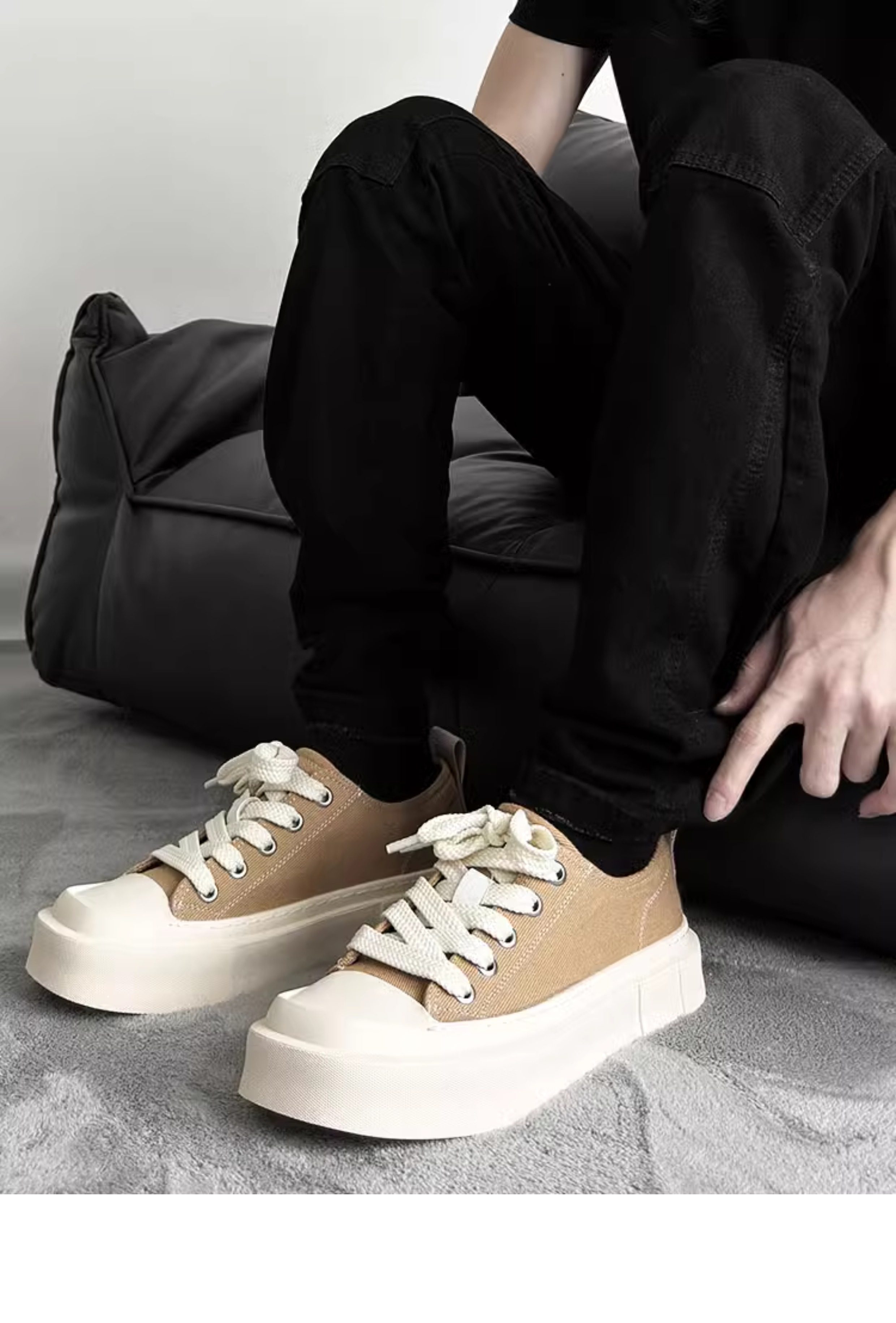 Trendy Niche Square-Toe Canvas Shoes for Men, Retro Thick-Soled Versatile Height-Increasing Sneakers, Japanese and Hong Kong Style Sports Casual Shoes