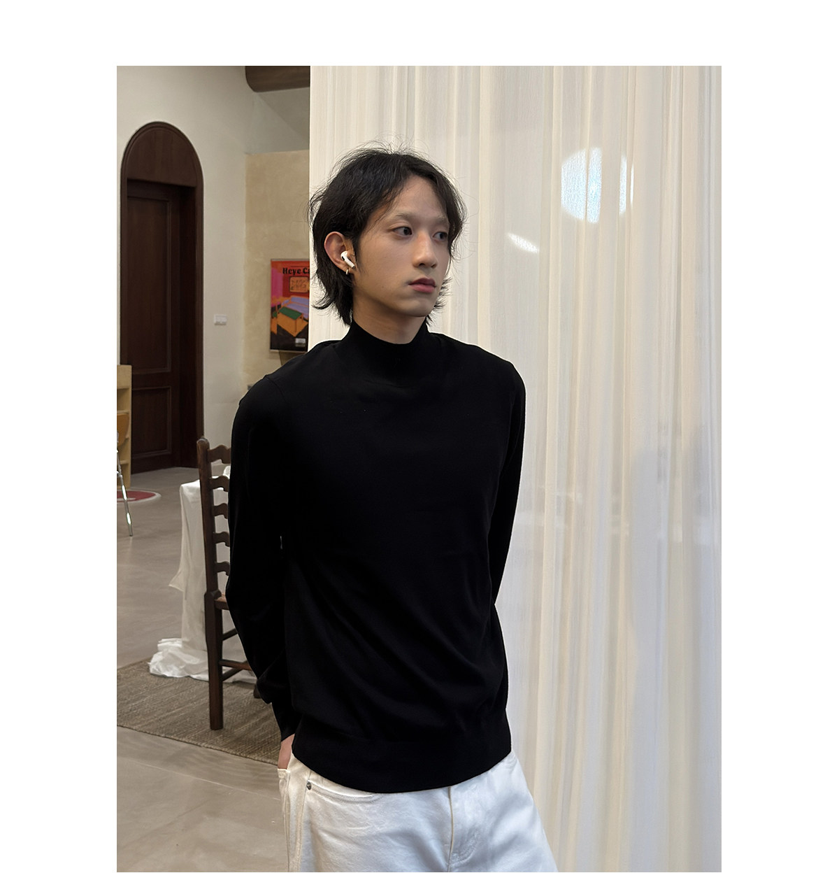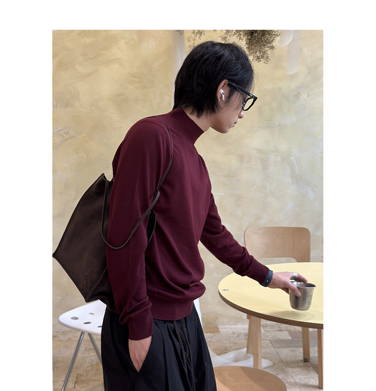 Jersey Zhenqi 100% Merino Wool 18-Gauge Half-Turtleneck Base Layer Comfortable Skin-Friendly Chimney Collar Knitwear
