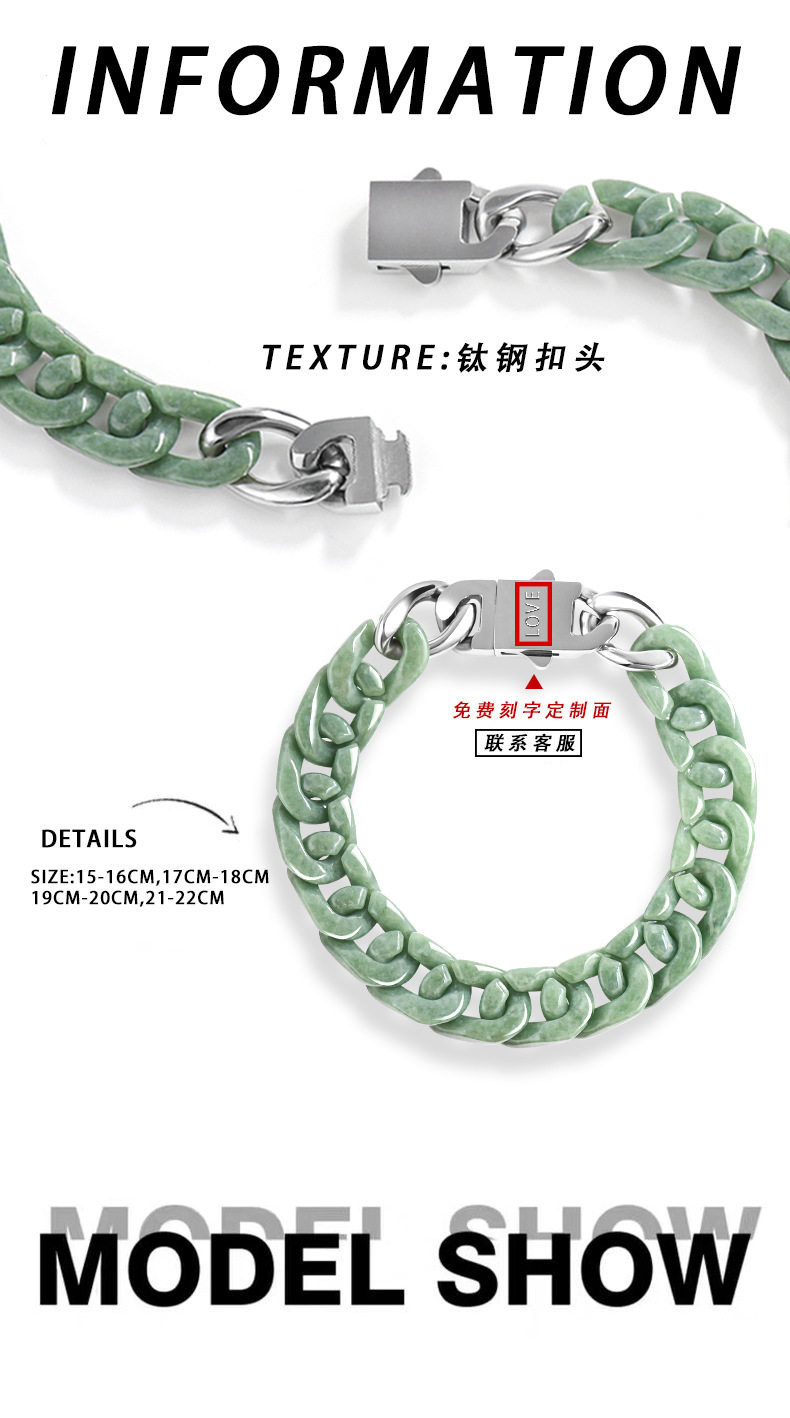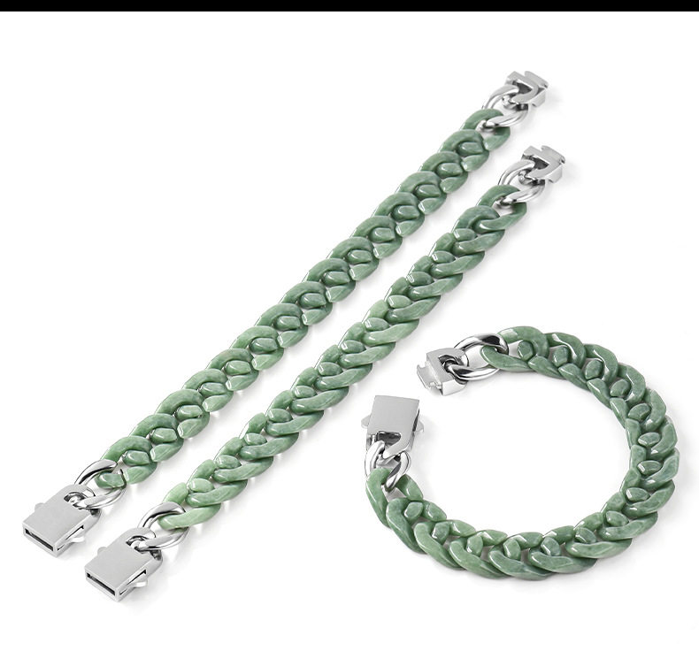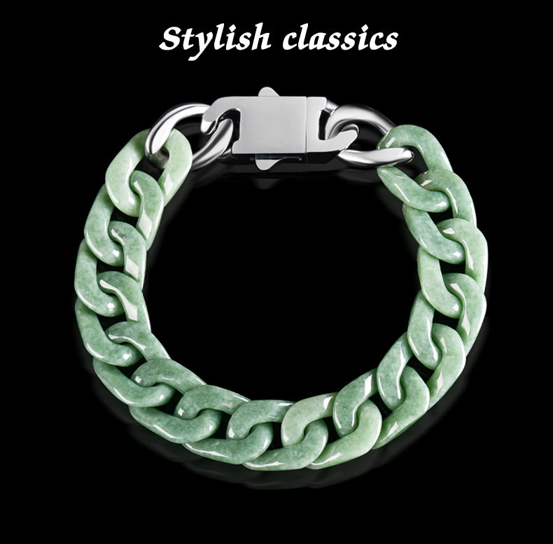Cuiyingfu Natural Grade a Jadeite Bean Green Cuban Chain Bracelet Titanium Steel Hip-Hop Necklace Style Personality Trend Gb01