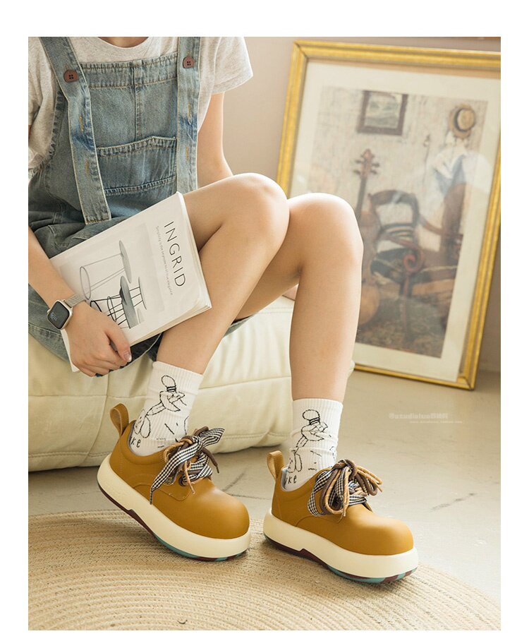Hong Kong Thick-Soled Lace-Up Quirky Big-Toe Shoes for Women 2026 Spring and Autumn New Casual Versatile Loafers Doll-Head Sneakers
