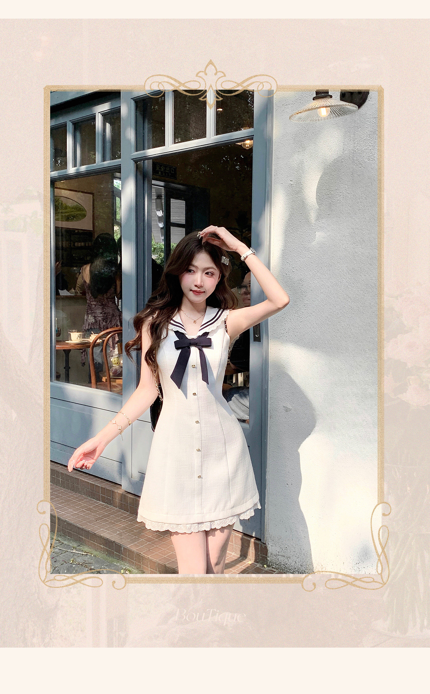 Q Women's Fashion Art Student/French Navy Collar Dress Summer Sweet College Style Age-Reducing Sleeveless Dress