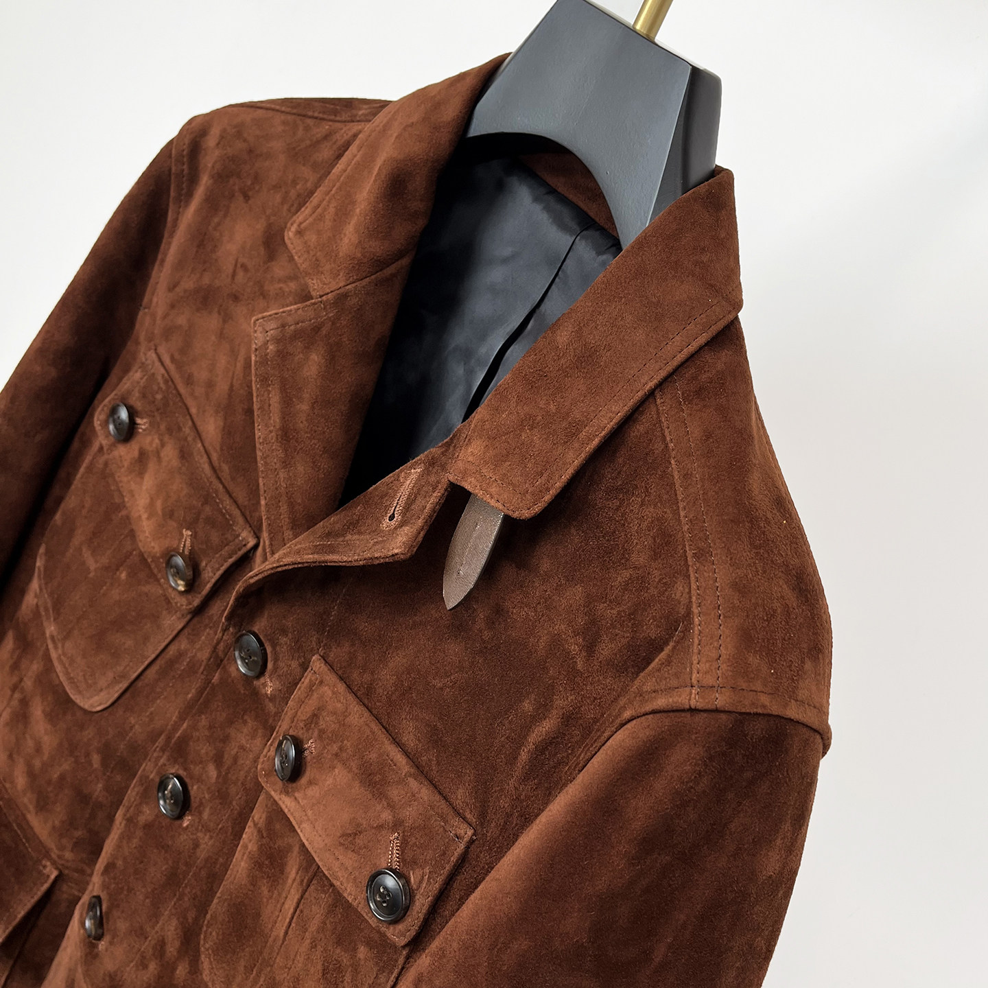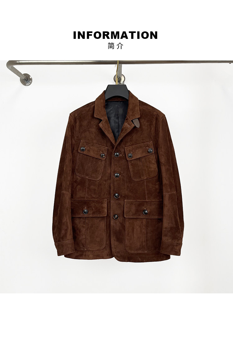 Tf Old Money Style South African Mixed Breed Suede Sheepskin Genuine Leather Jacket Men's Mid-Length Hunting Vintage Jacket