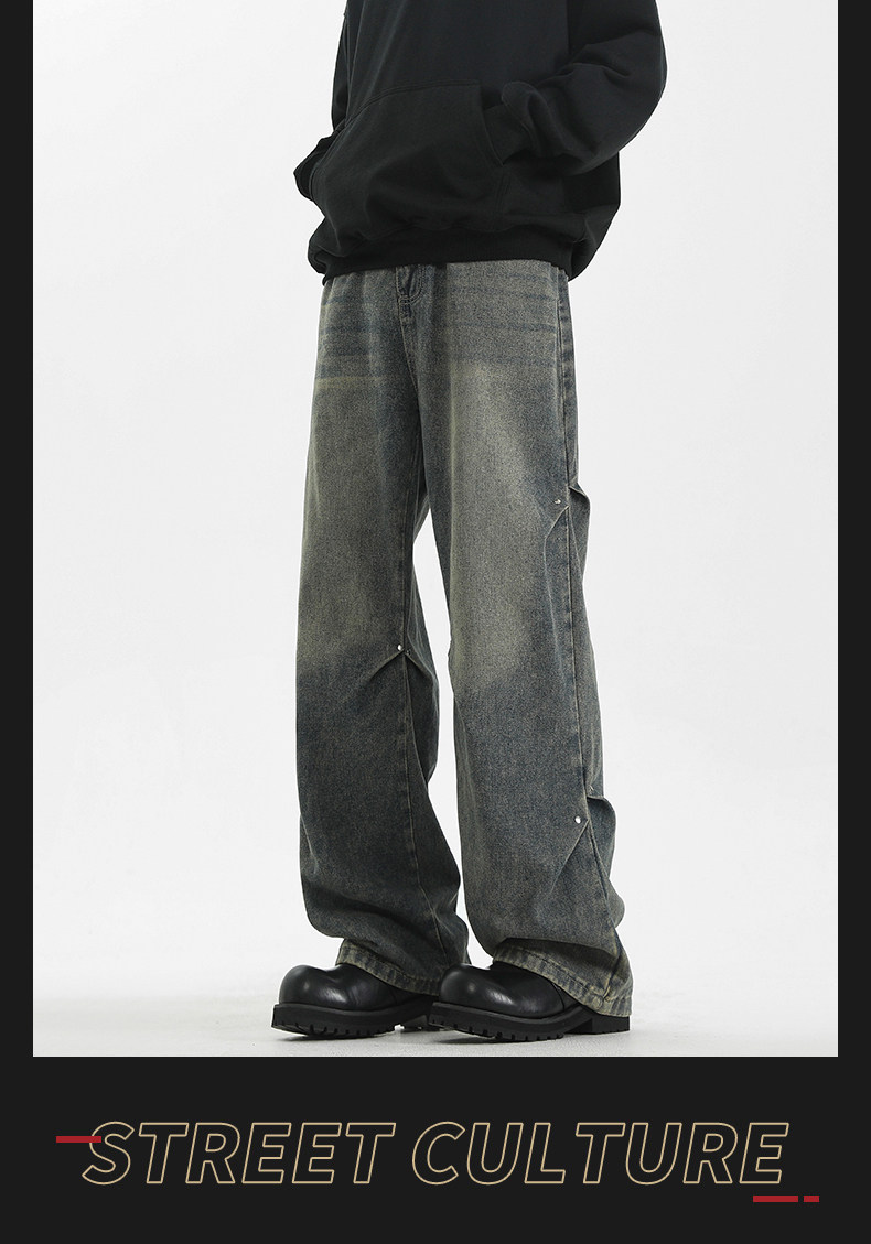 Retro American-Style Men's Jeans, New Spring and Autumn Trendy Brand, Loose Fit, Versatile, Casual Straight-Leg Drapey Long Pants