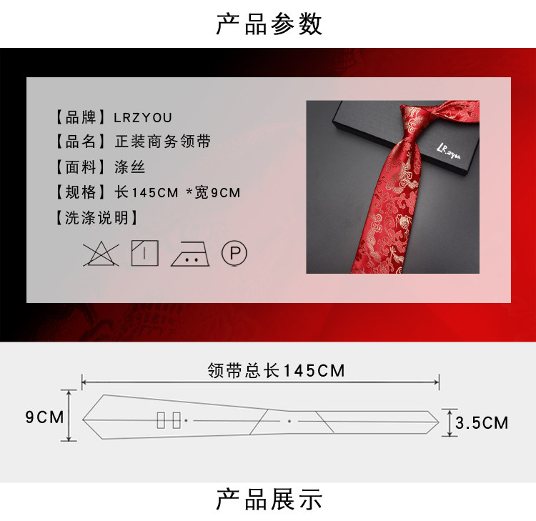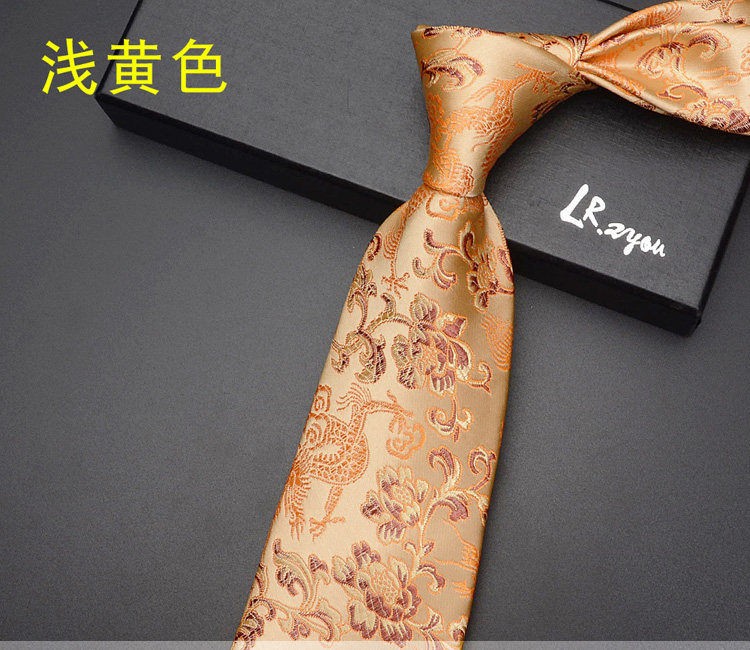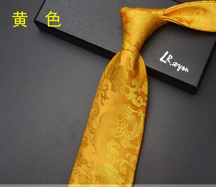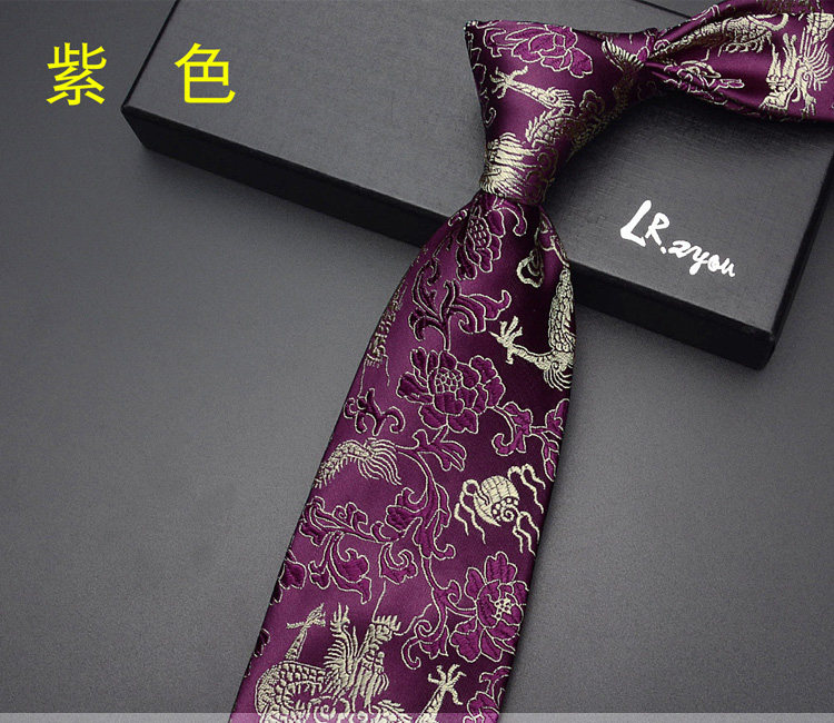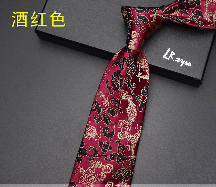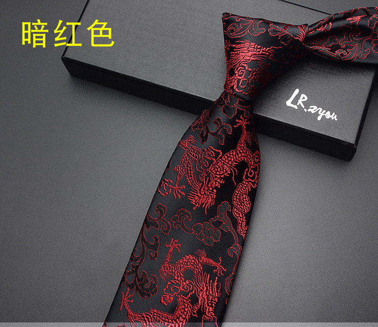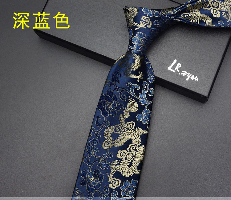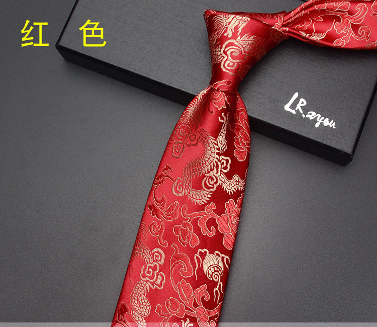 Lrzyou Men's Formal Traditional Retro Chinese Style Embroidered Dragon Tie 9cm Wide Version Wedding Celebration Necktie Tie