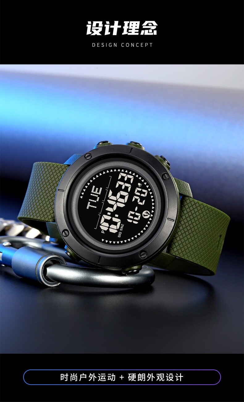Chinese Military Training Outdoor Multi-Functional Sports Timing Waterproof Watch for Male Students in Middle and High Schools, Trendy Luminous Digital Watch