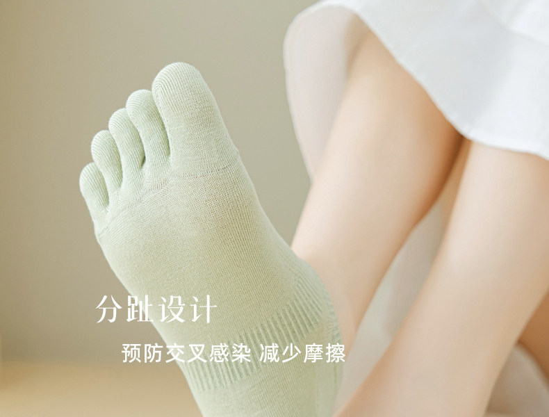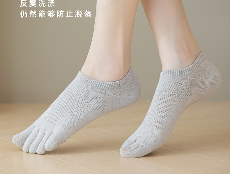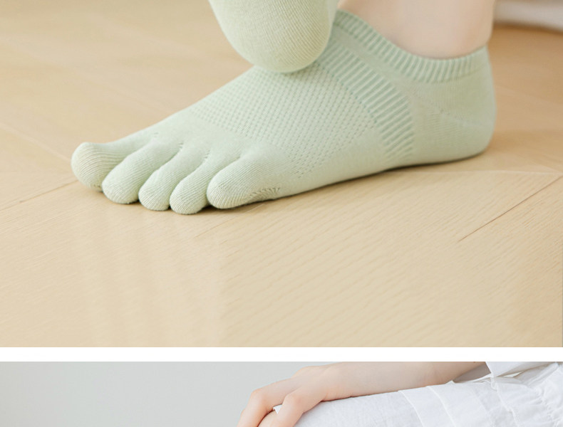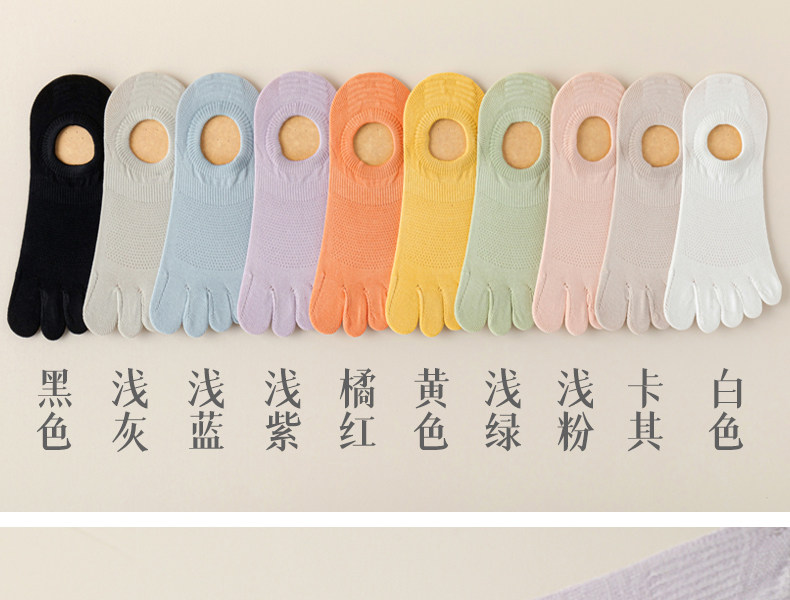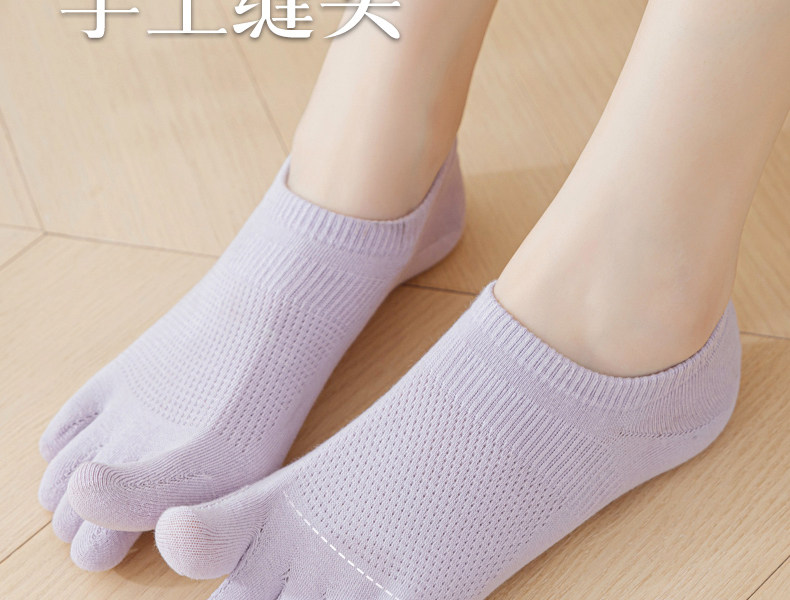 Five-Toe Socks for Women, Spring and Summer Thin Cotton Anti-Odor Non-Slip No-Show Socks, Split-Toe Short Socks Without Seams